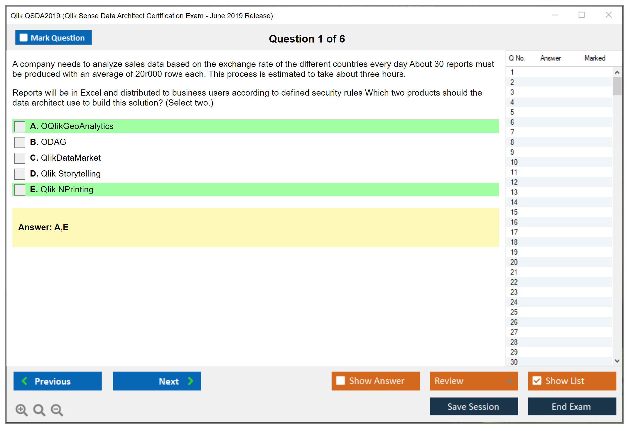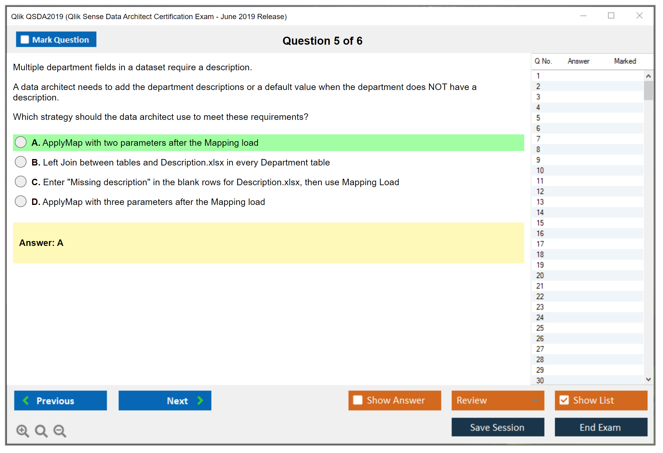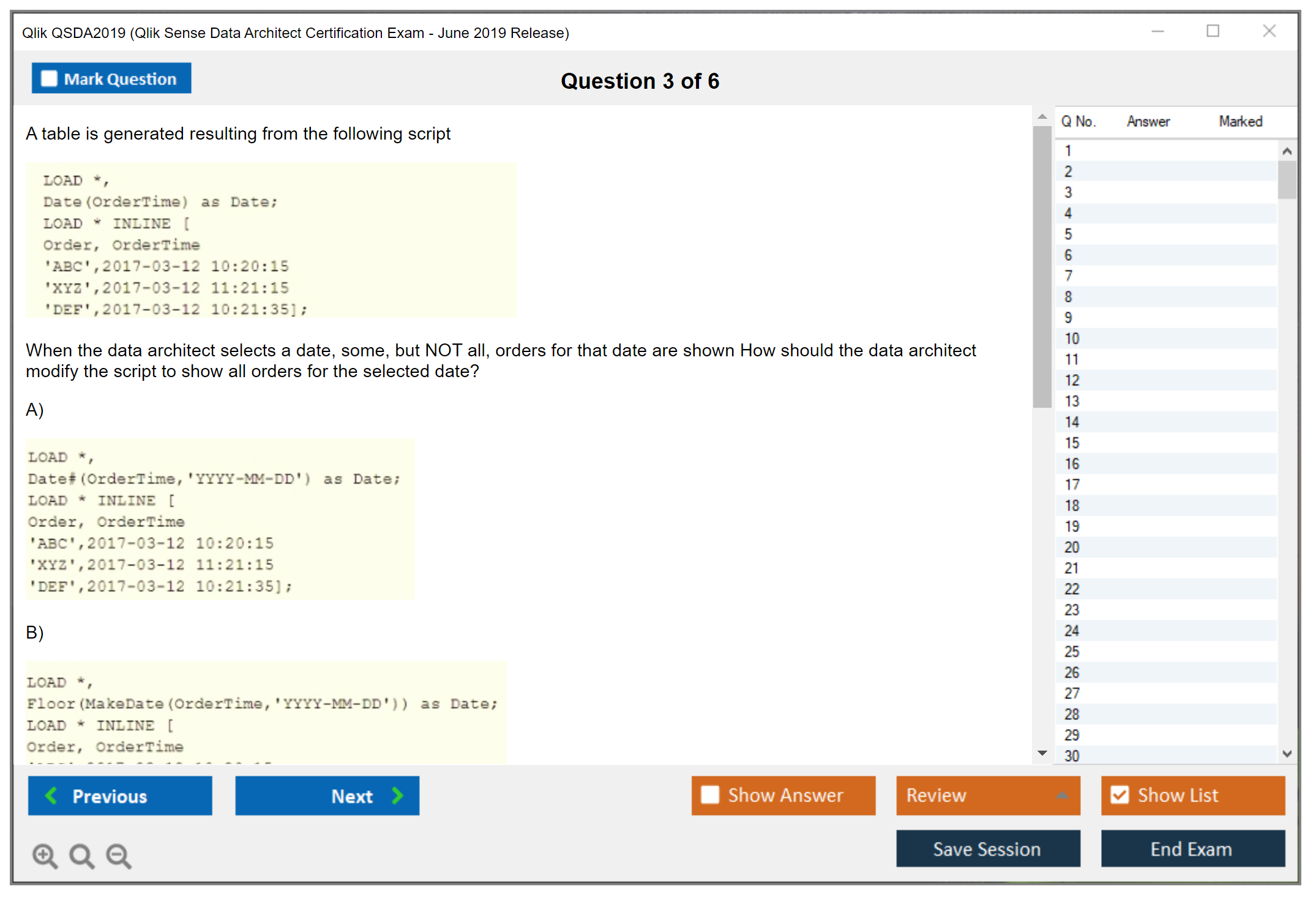 Note: Qlik QSDA2019 (Qlik Sense Data Architect Certification Exam - June 2019 Release) will not receive any new updates.
