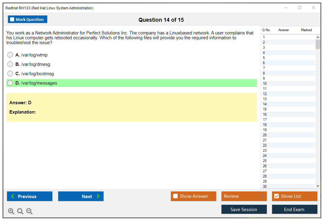 The RedHat RH133 (Red Hat Linux System Administration) Exam is designed for system administrators who want to demonstrate their skills in managing and administering Red Hat Enterprise Linux environments. The exam tests the candidate's ability to perform essential tasks in Red Hat Enterprise Linux, including installation, configuration, and troubleshooting.