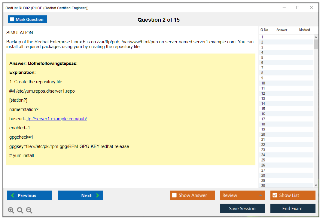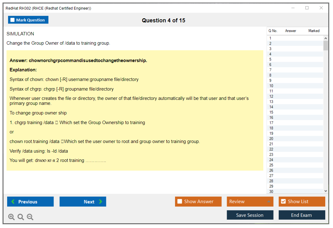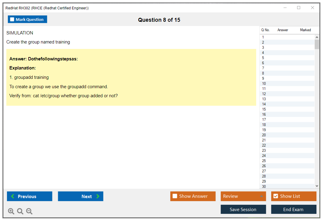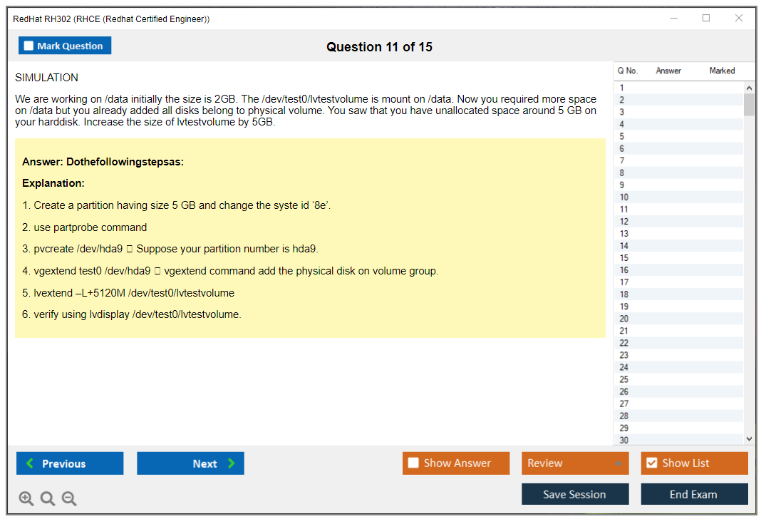 Sample questions for the Red Hat RH302 exam are not typically provided, as it is a performance-based exam. However, Red Hat offers training courses and practice exams to help candidates prepare.