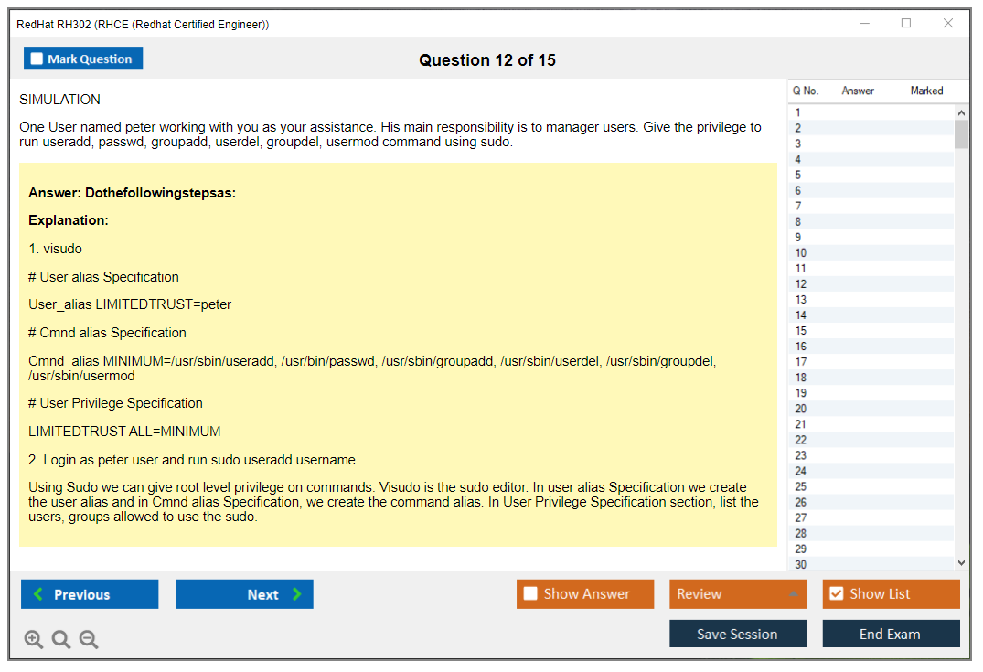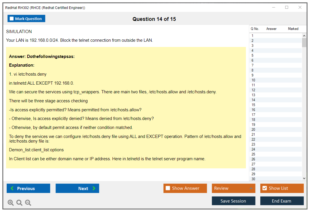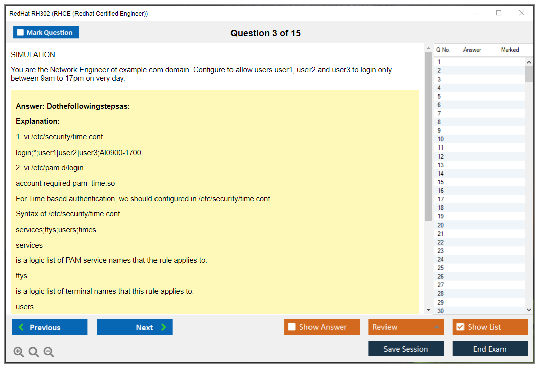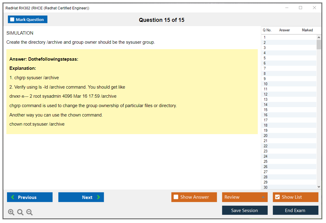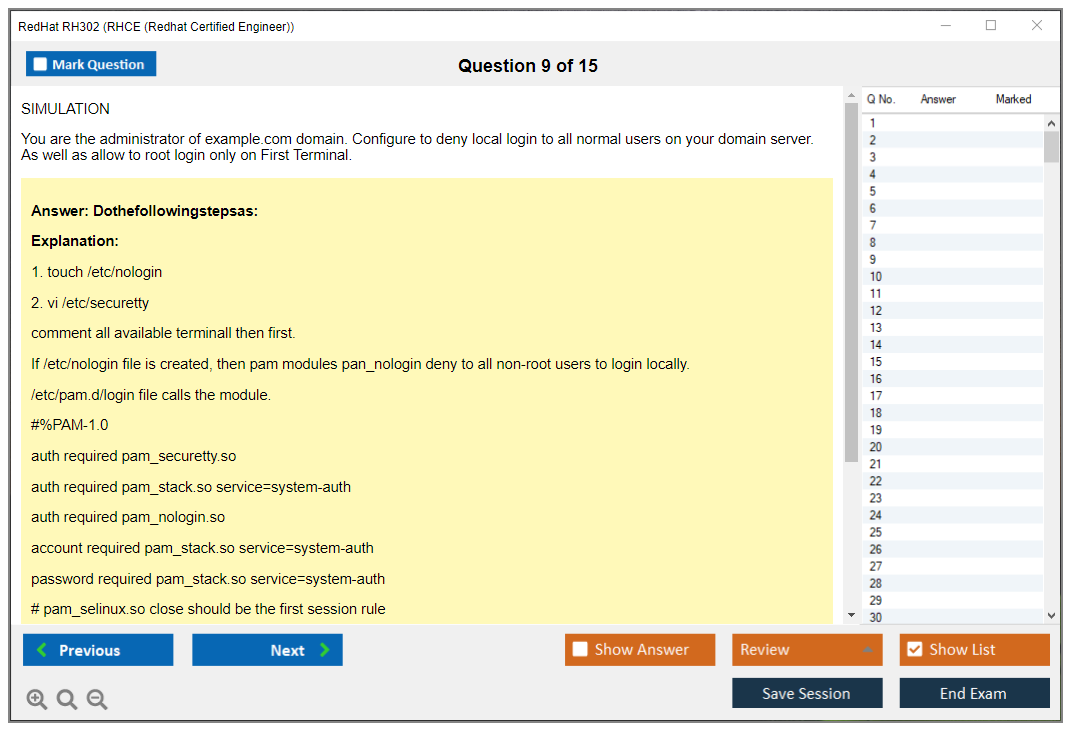 Sample questions for the Red Hat RH302 exam are not typically provided, as it is a performance-based exam. However, Red Hat offers training courses and practice exams to help candidates prepare.