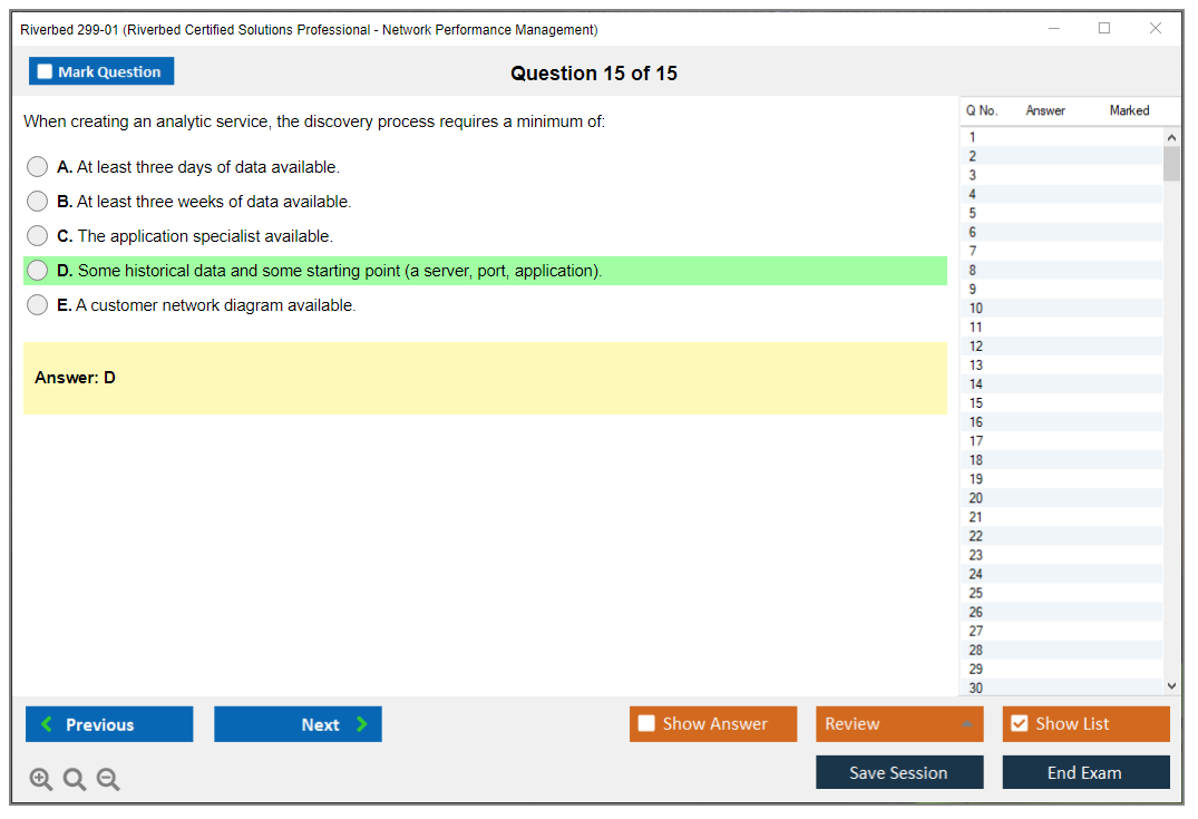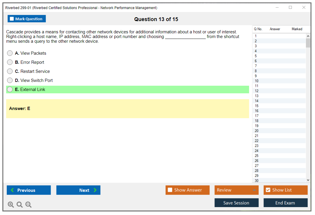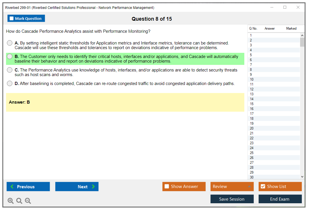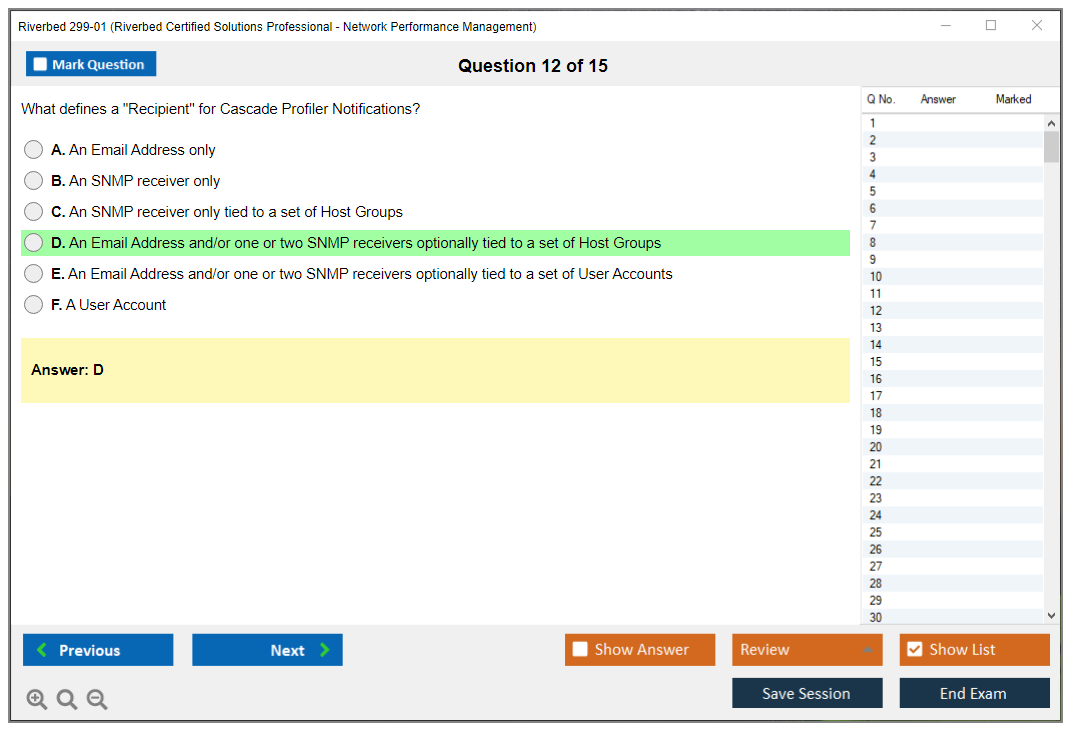 The Riverbed 299-01 exam is part of the Riverbed Certified Solutions Professional (RCSP) certification track, specifically focusing on Network Performance Management.