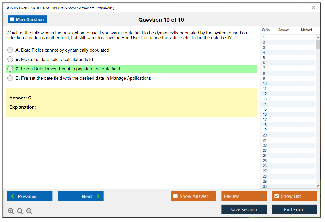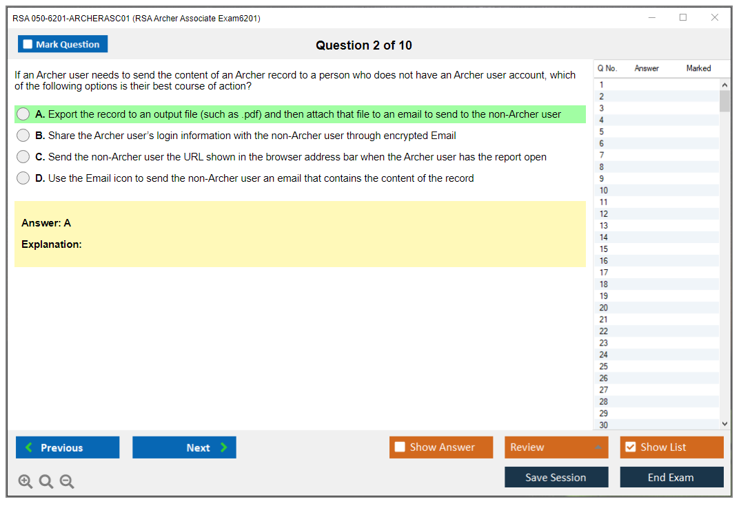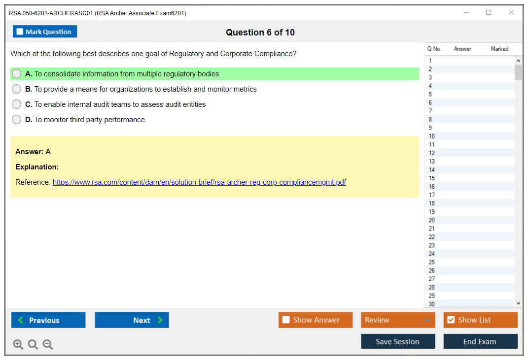 The RSA 050-6201-ARCHERASC01 Exam assesses the fundamental abilities of professionals in using RSA Archer, a leading governance, risk, and compliance (GRC) platform. This exam validates the candidate's proficiency in navigating and utilizing the RSA Archer suite.