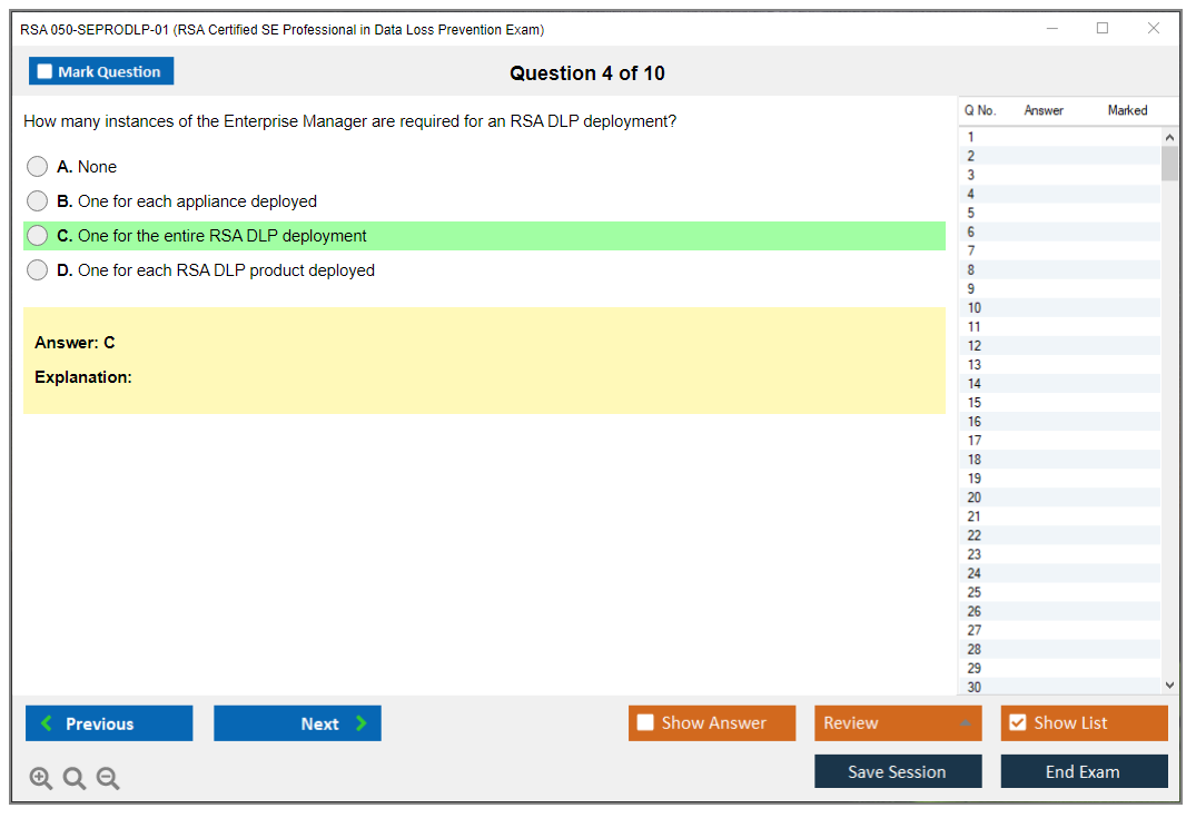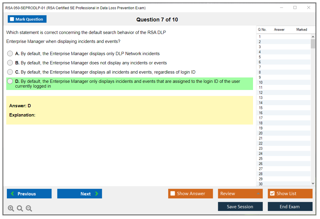 The RSA 050-SEPRODLP-01 (RSA Certified SE Professional in Data Loss Prevention Exam) is a certification exam designed to validate the knowledge and skills of professionals in the field of data loss prevention using RSA technologies.