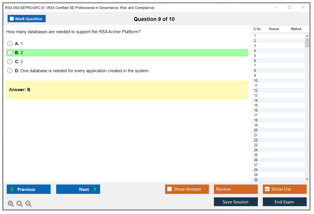 Sample questions for the RSA 050-SEPROGRC-01 Exam can be found on the official RSA website or through authorized RSA training providers.
