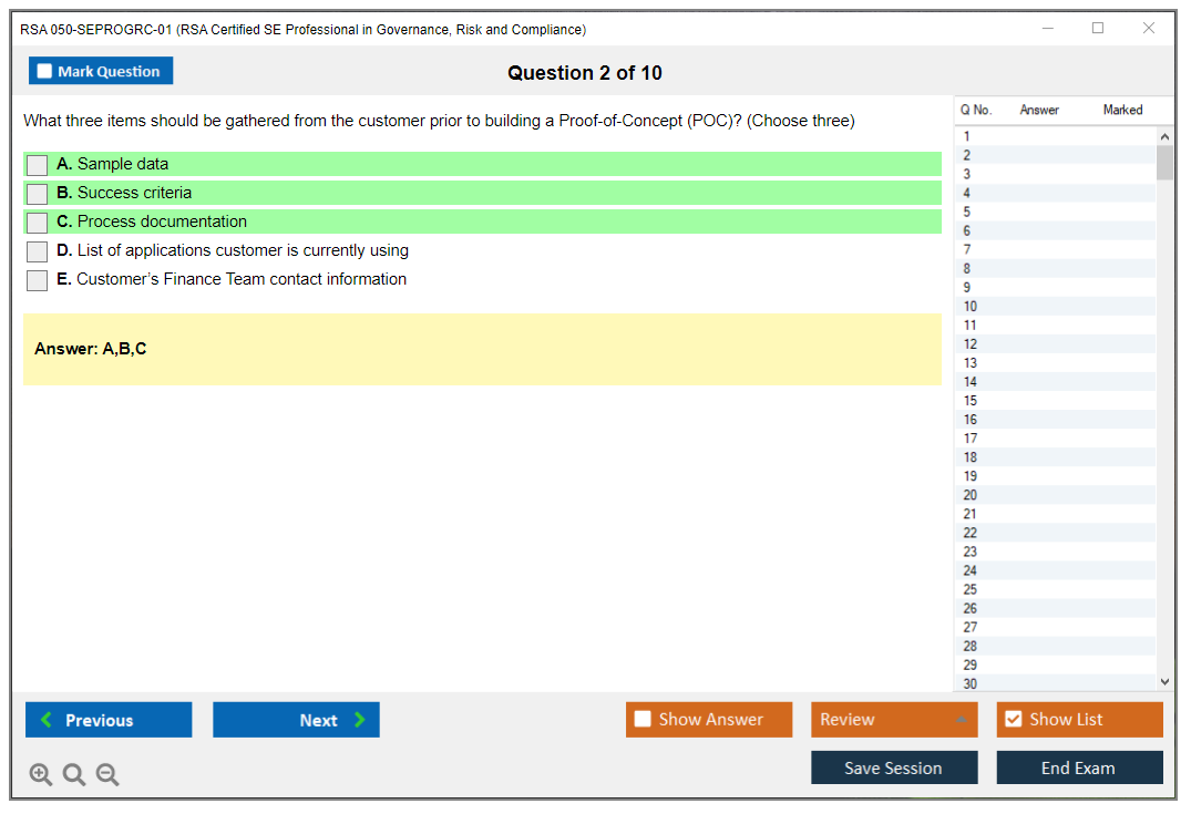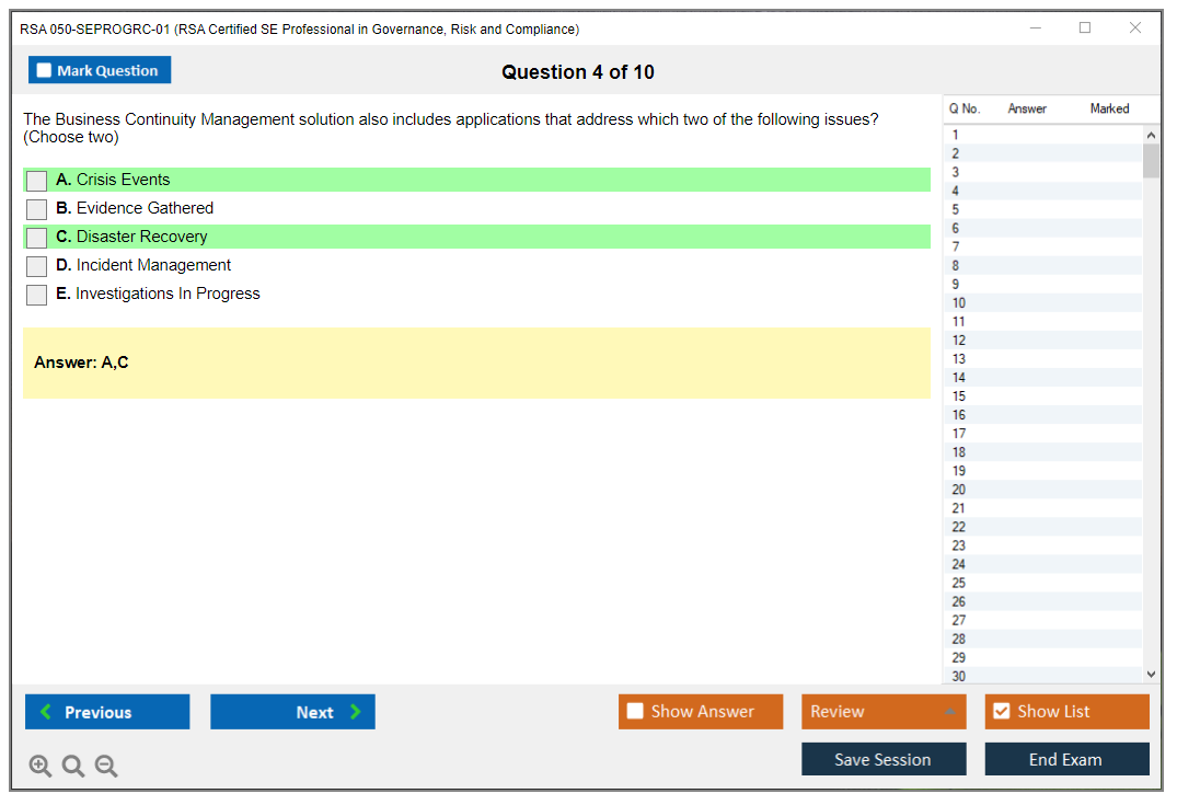 050-SEPROGRC-01 (RSA Certified SE Professional in Governance, Risk and Compliance) PDF + Test Engine