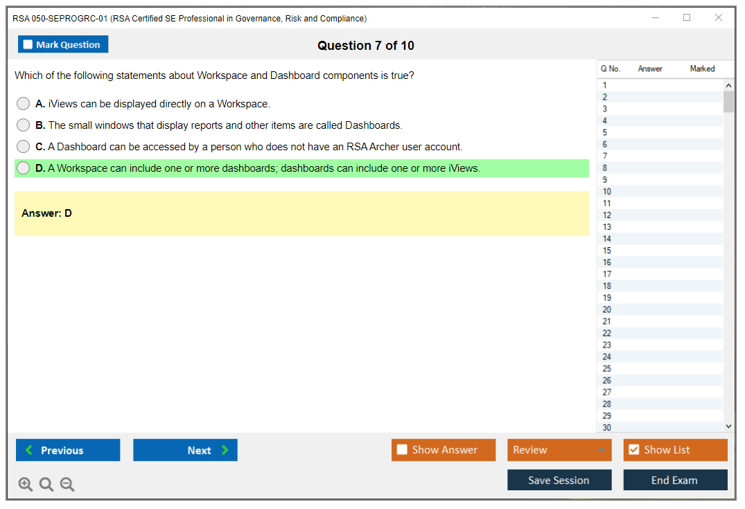The RSA 050-SEPROGRC-01 exam dumps from DumpsBoss were exactly what I needed! The questions mirrored the real exam, and the explanations helped me grasp the concepts easily. Highly recommend DumpsBoss for reliable exam prep!
