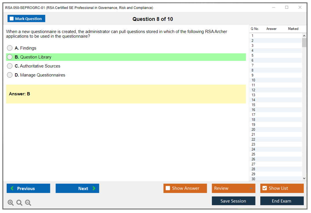 What are the Sample Questions of RSA 050-SEPROGRC-01 Exam?