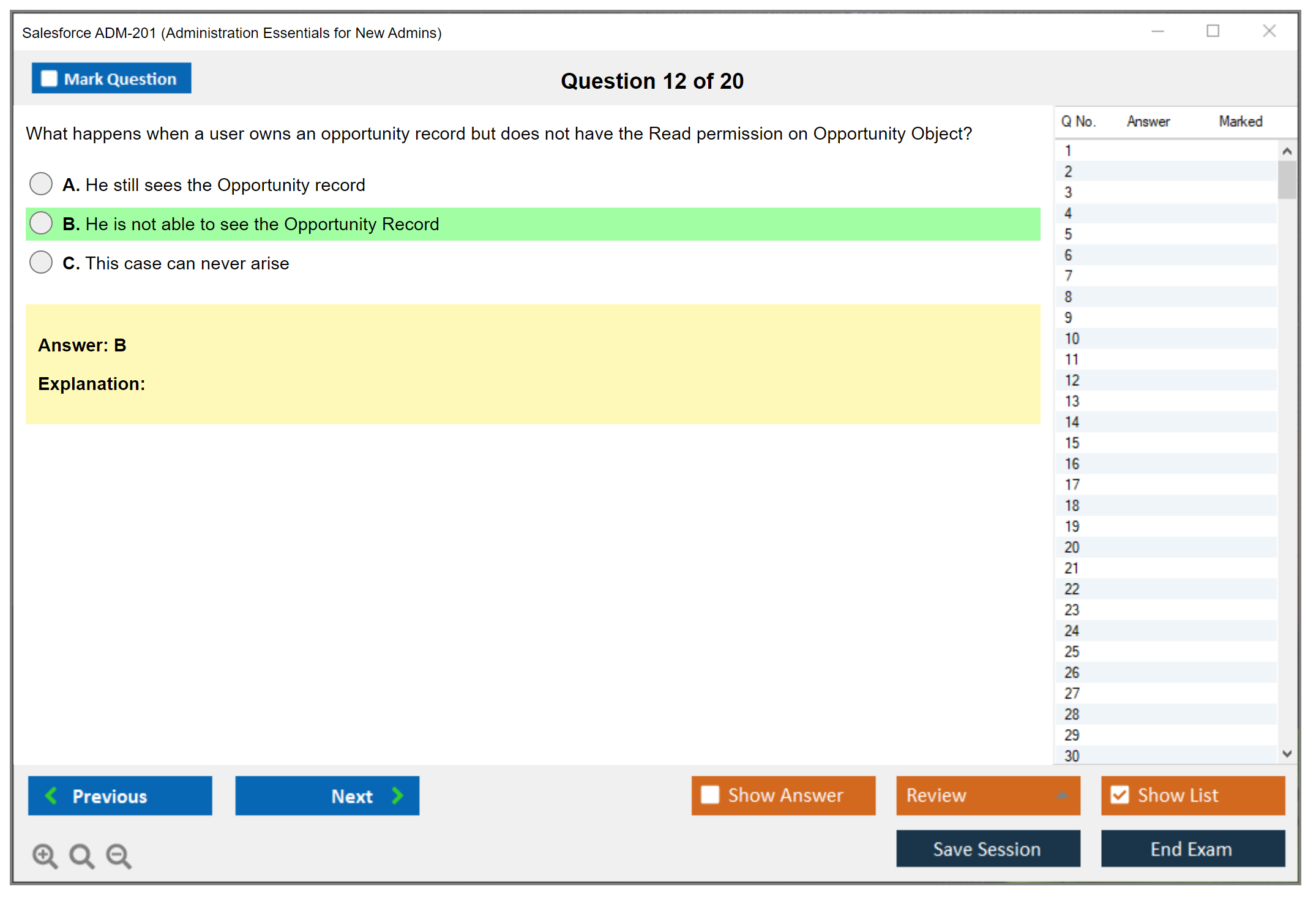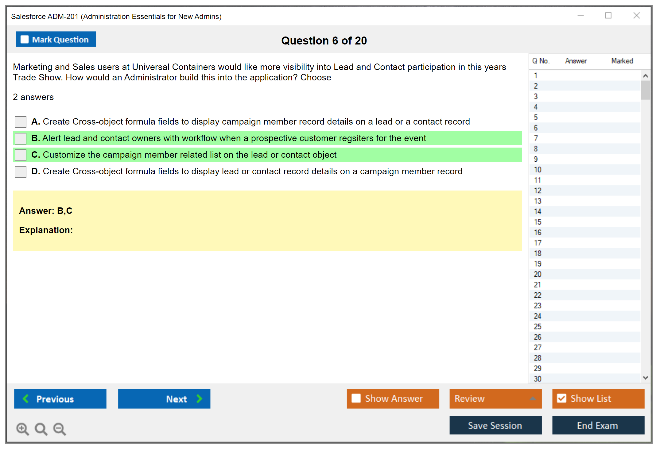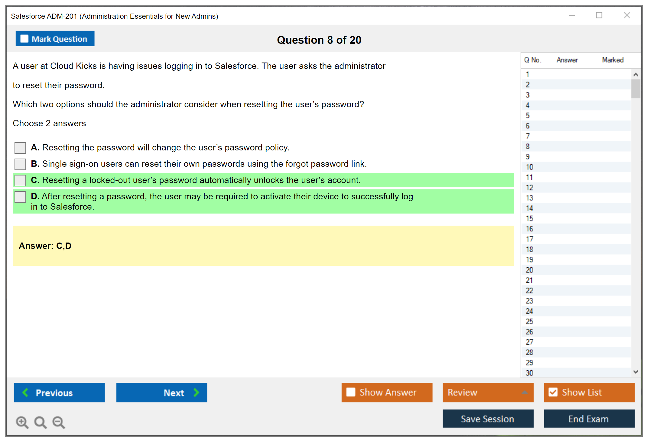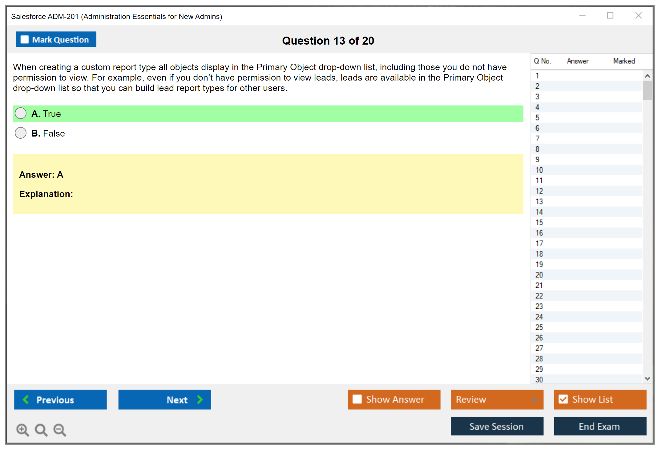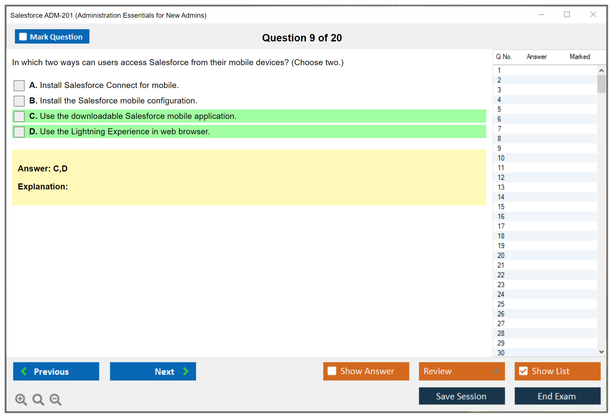 Salesforce ADM-201 Exam Dumps The test exam is comprehensive and covers all of the topics covered in the actual exam. It is also well-structured, with clear explanations and answers, so you can easily understand the material.