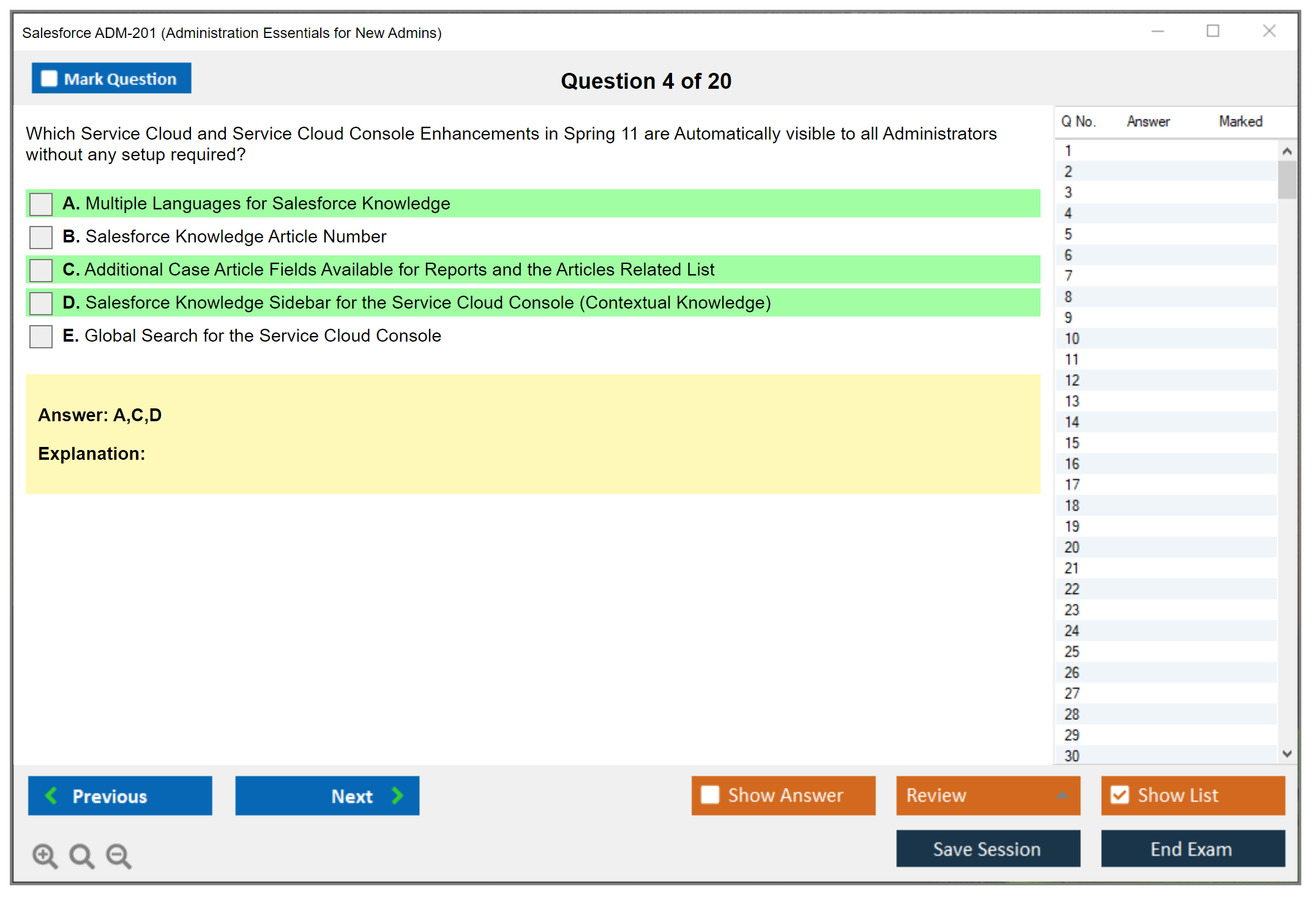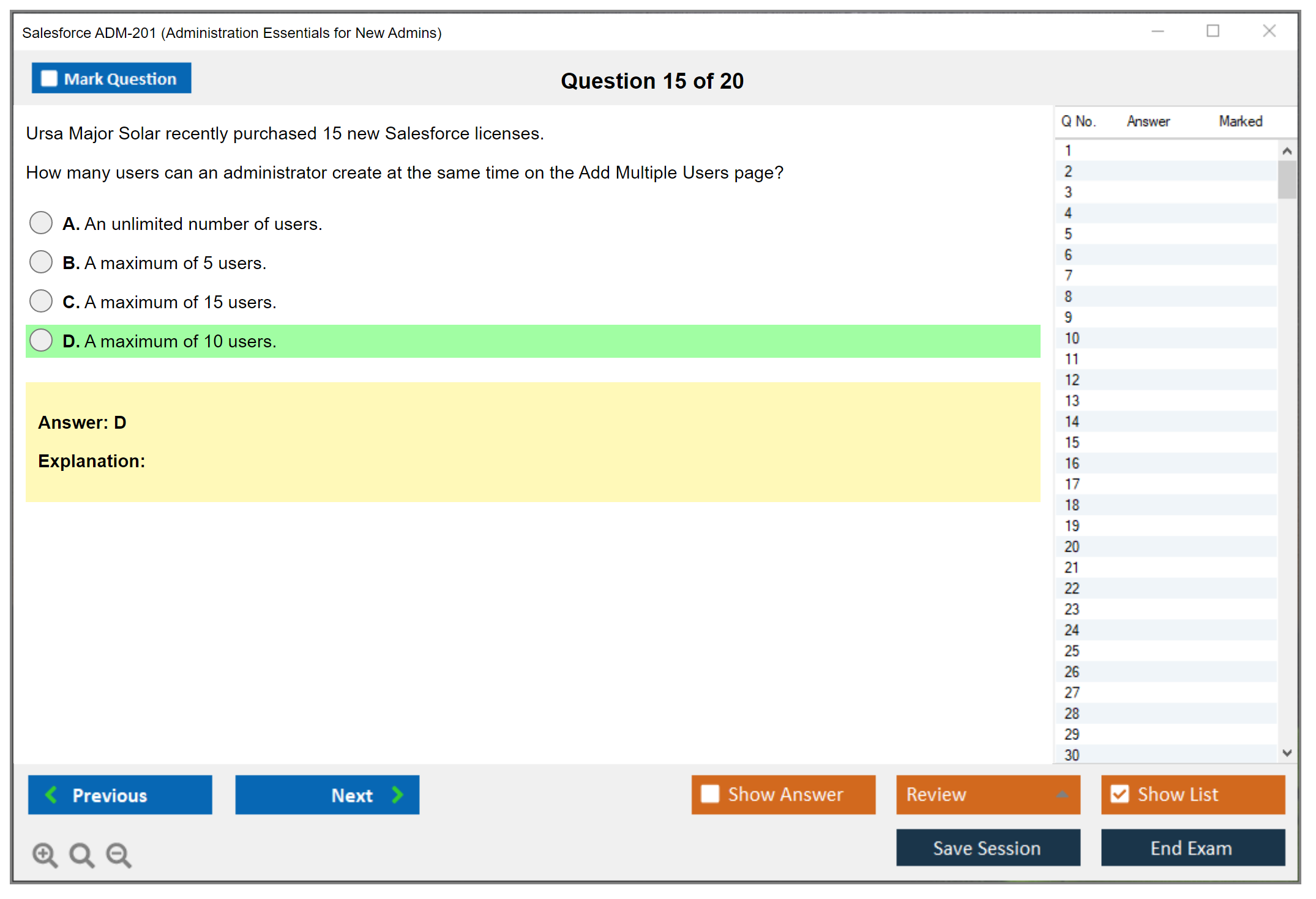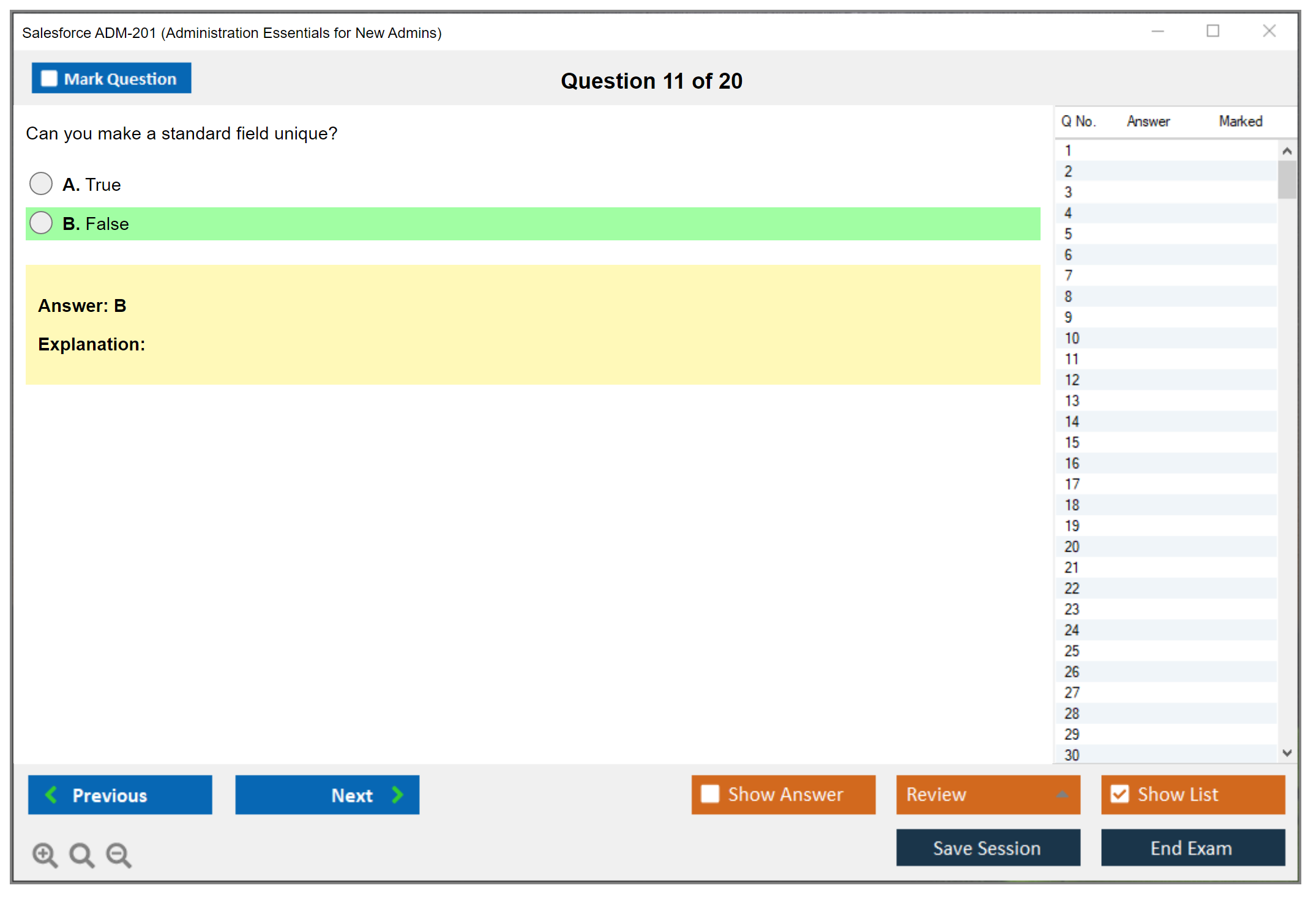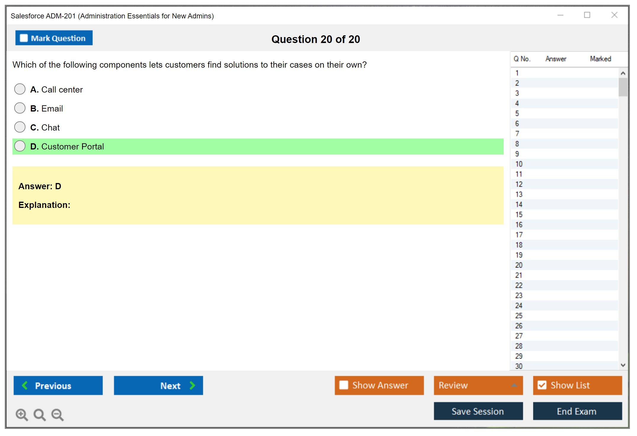 Salesforce ADM-201 Exam Dumps The test exam is comprehensive and covers all of the topics covered in the actual exam. It is also well-structured, with clear explanations and answers, so you can easily understand the material.