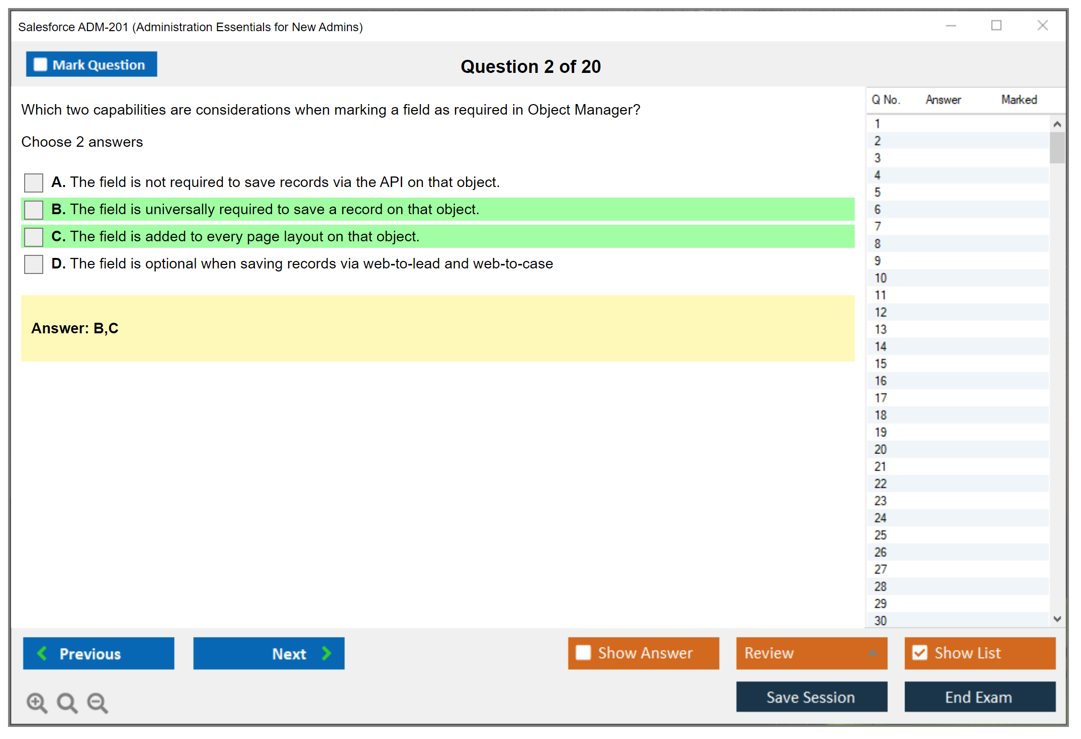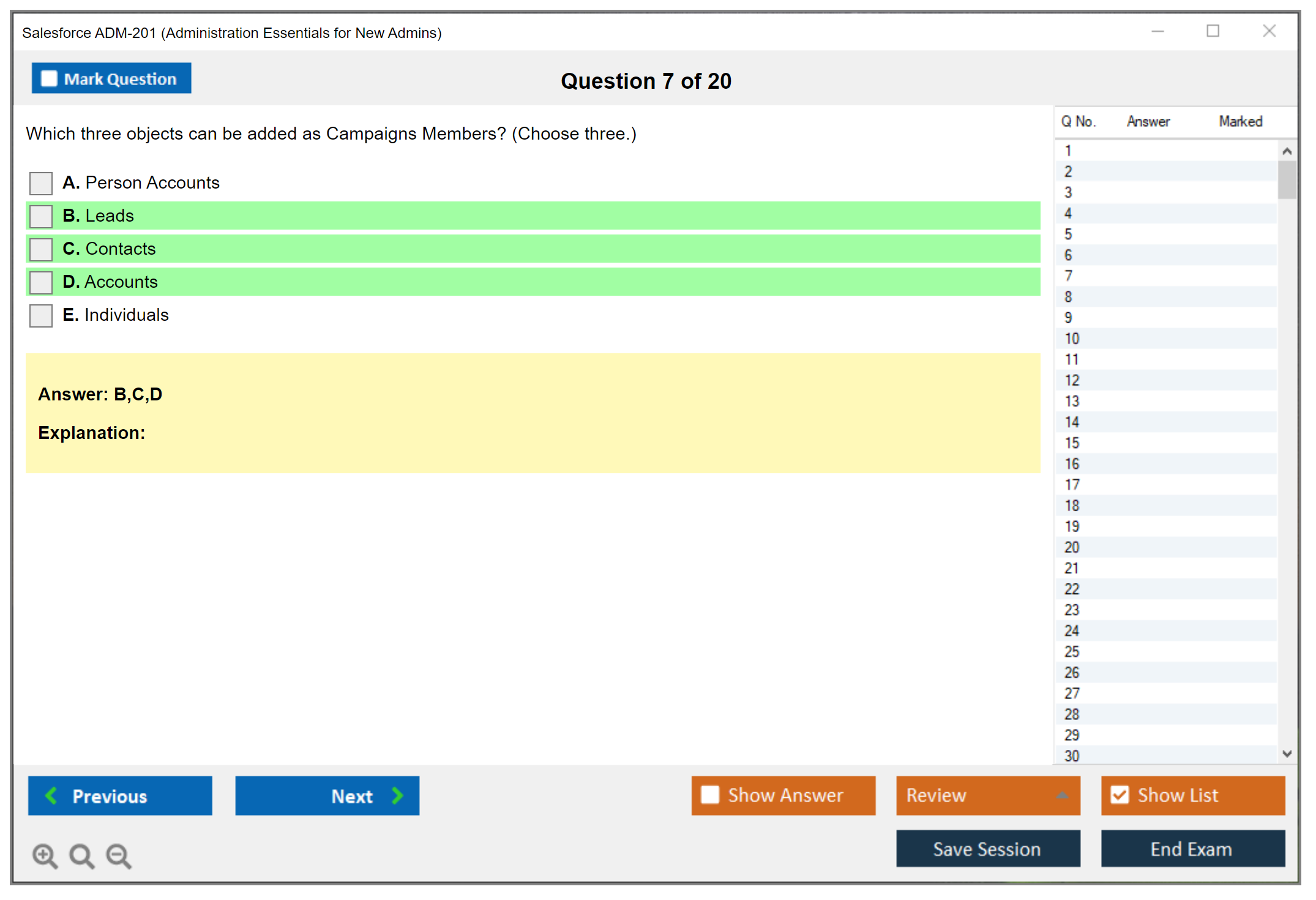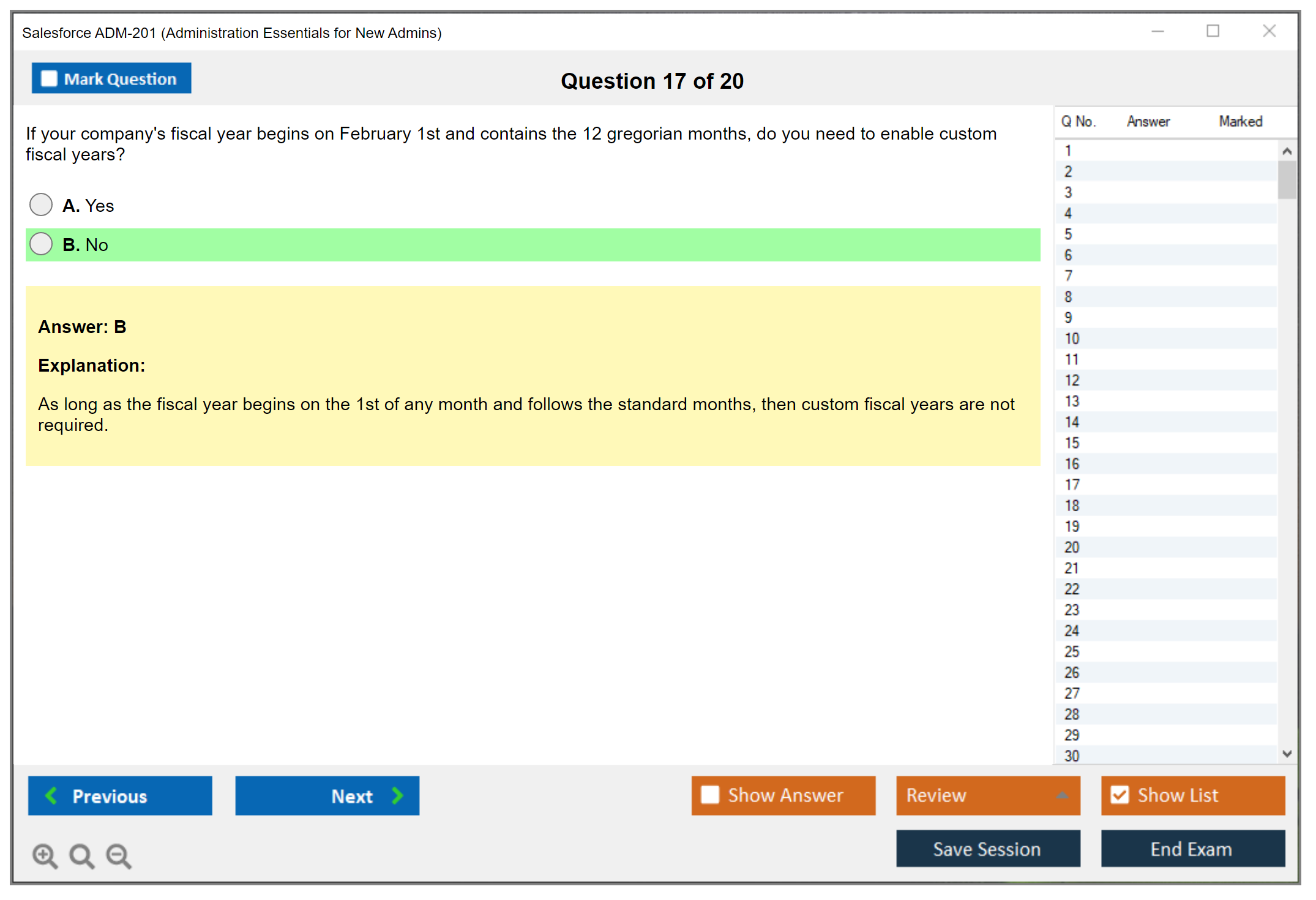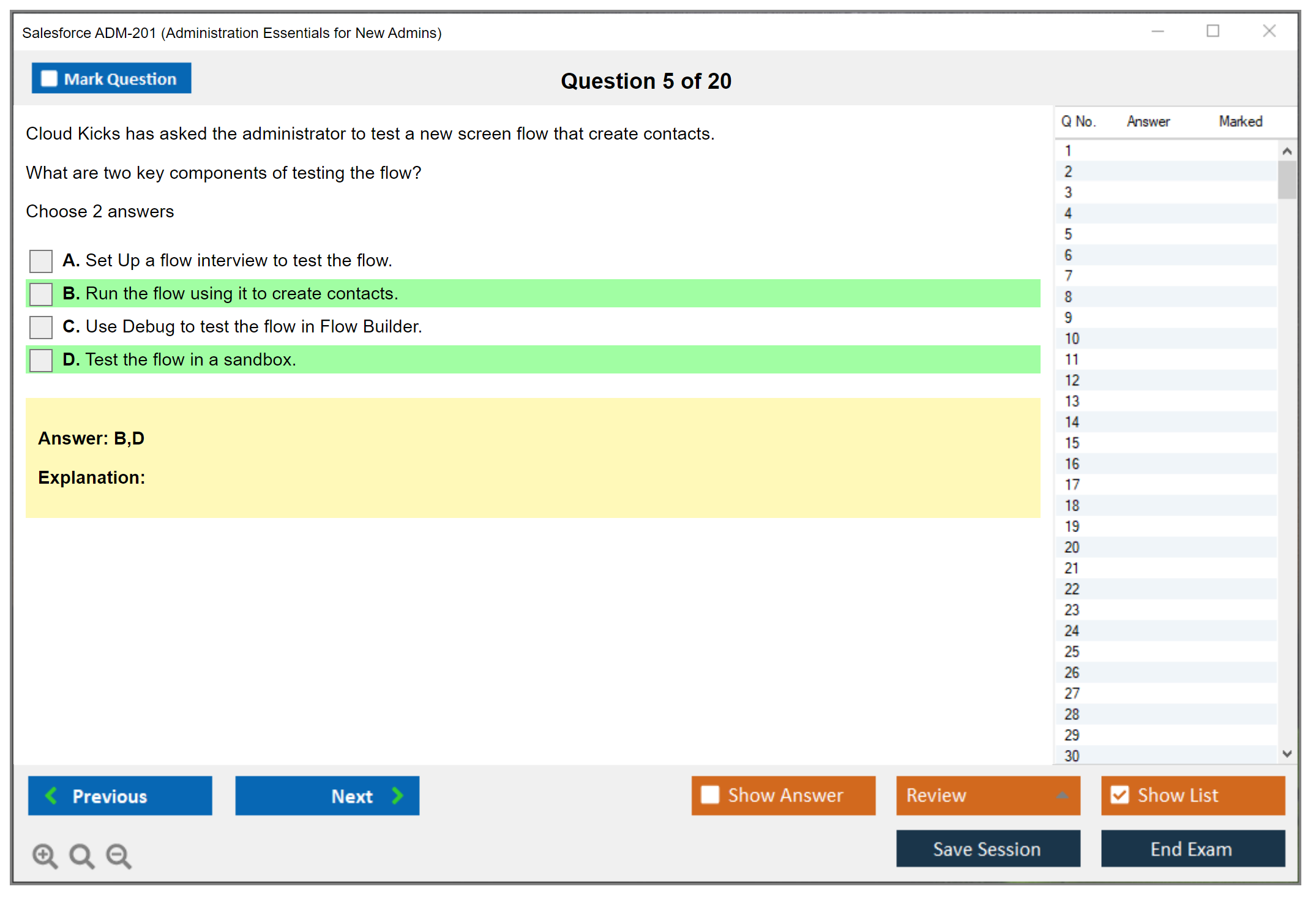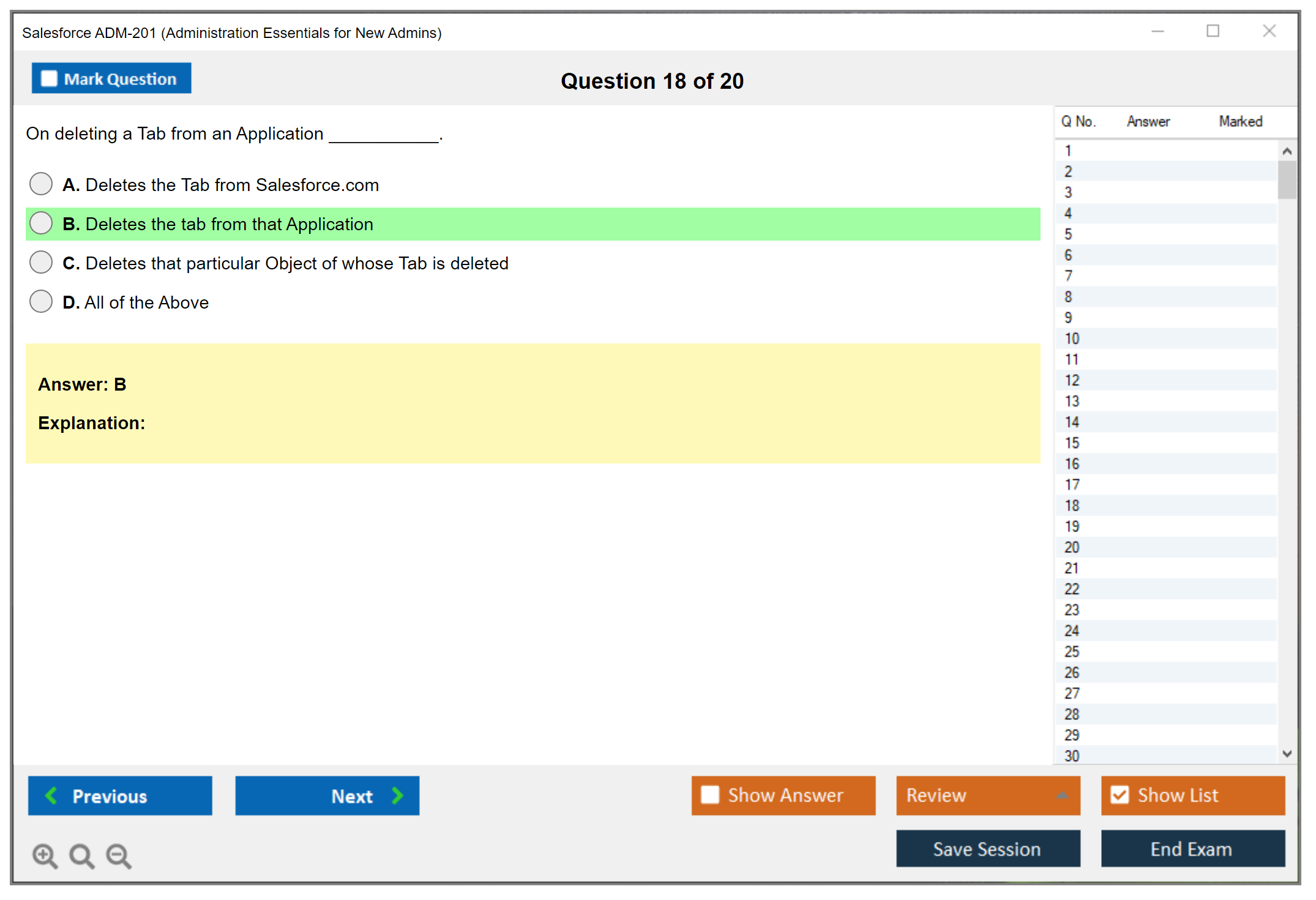 Salesforce ADM-201 Exam Dumps The test exam is comprehensive and covers all of the topics covered in the actual exam. It is also well-structured, with clear explanations and answers, so you can easily understand the material.