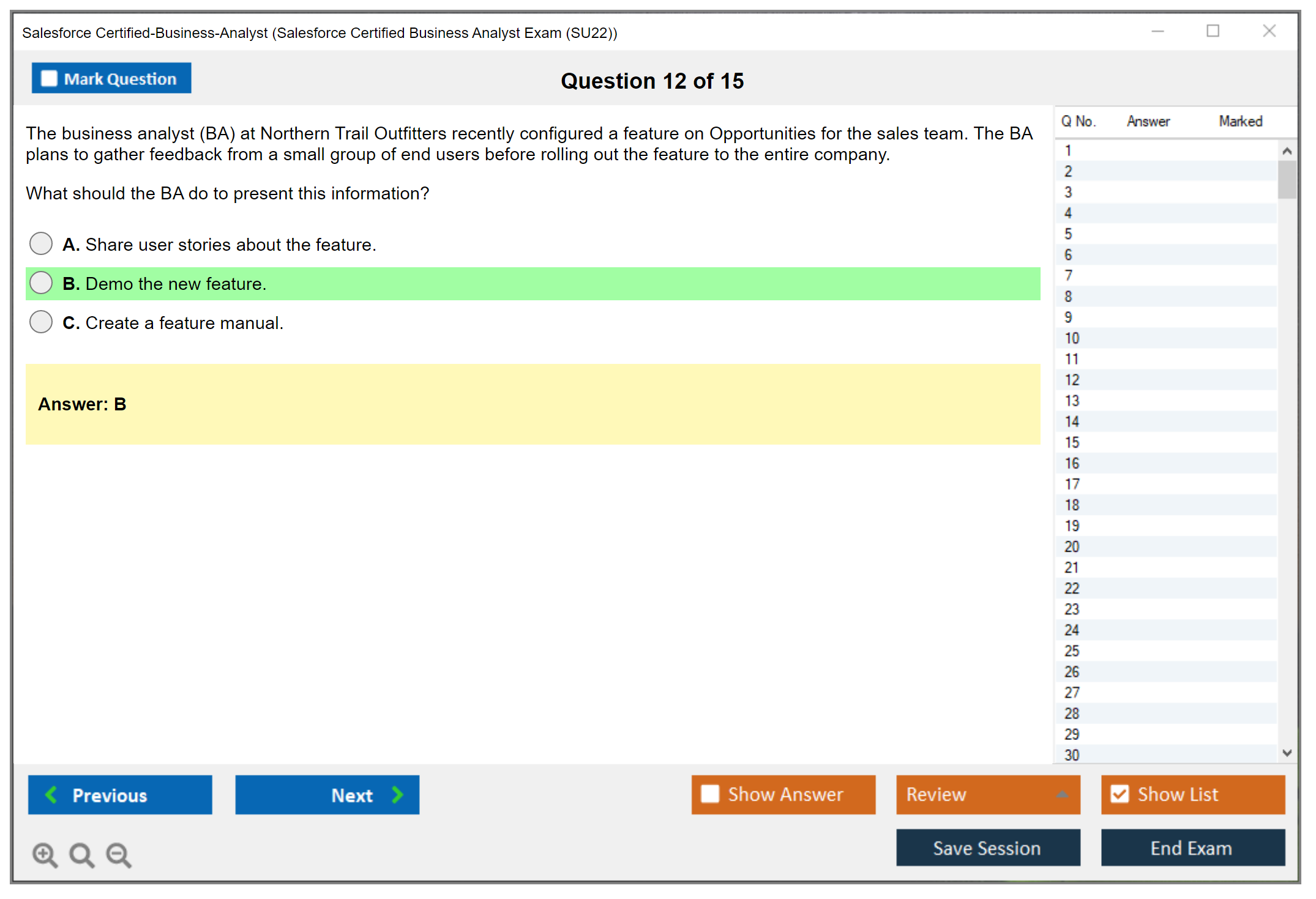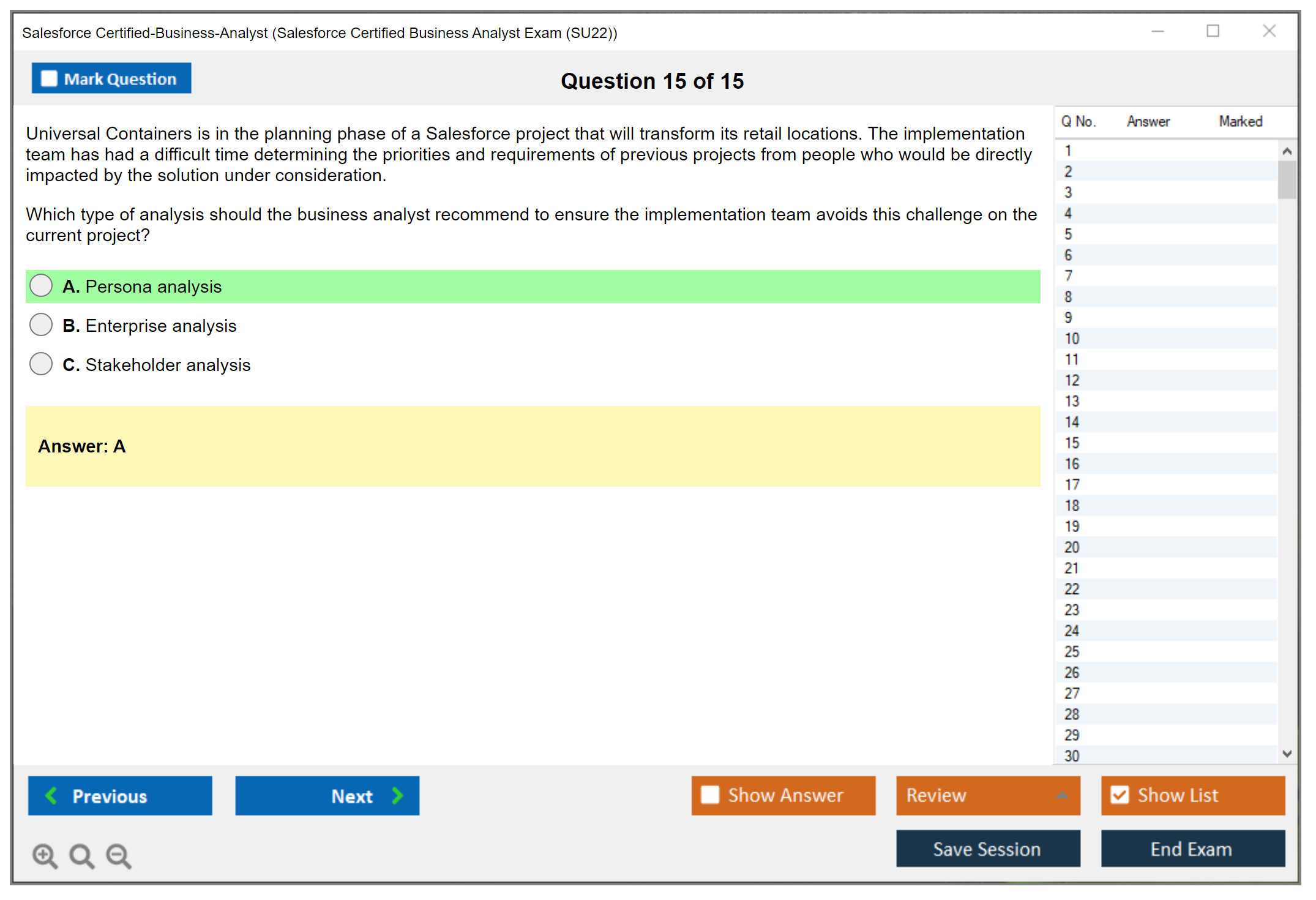 What are the Sample Questions of Salesforce Certified-Business-Analyst Exam?