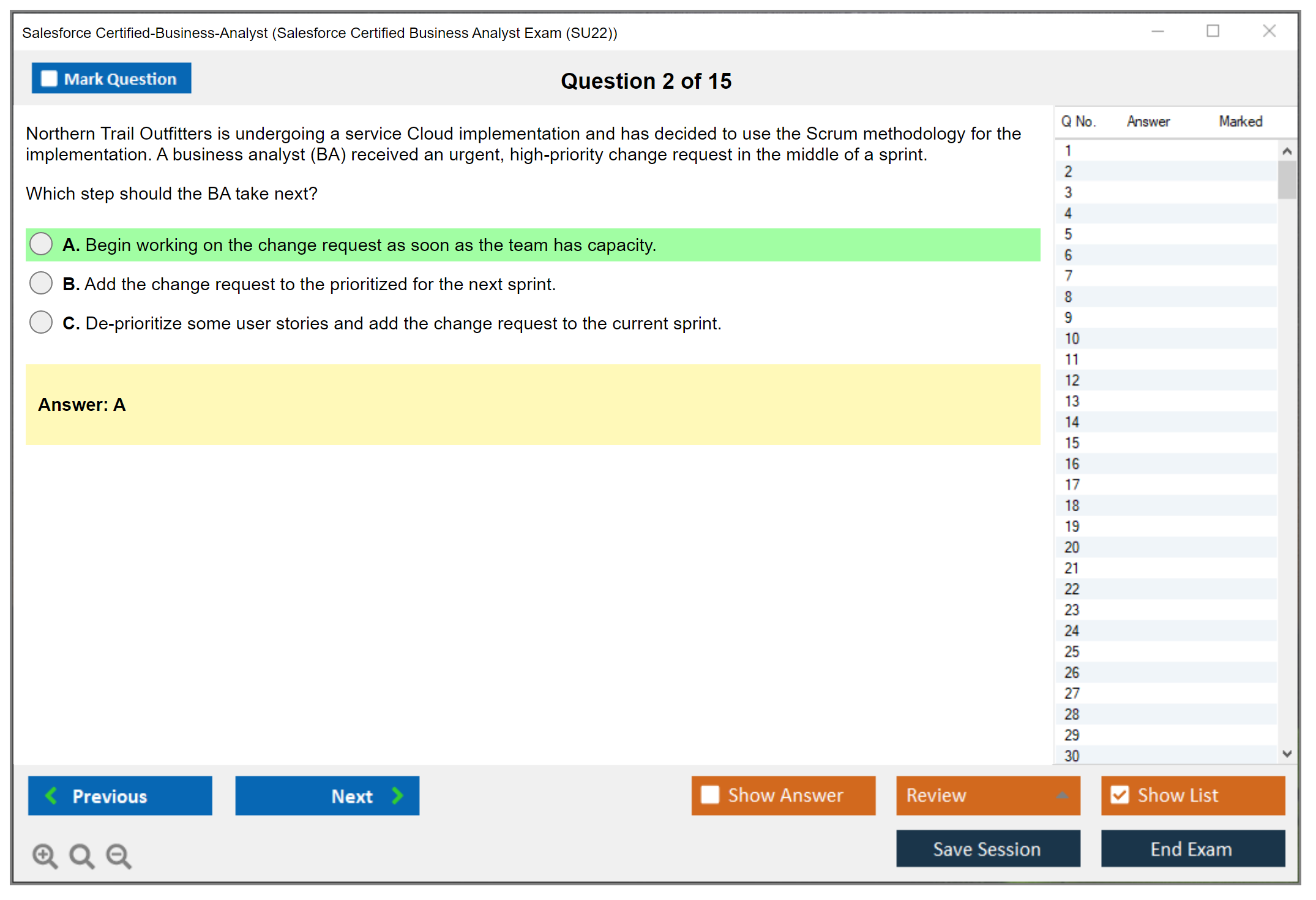 You can take the Salesforce Certified-Business-Analyst Exam online through a proctored environment or at a designated testing center.