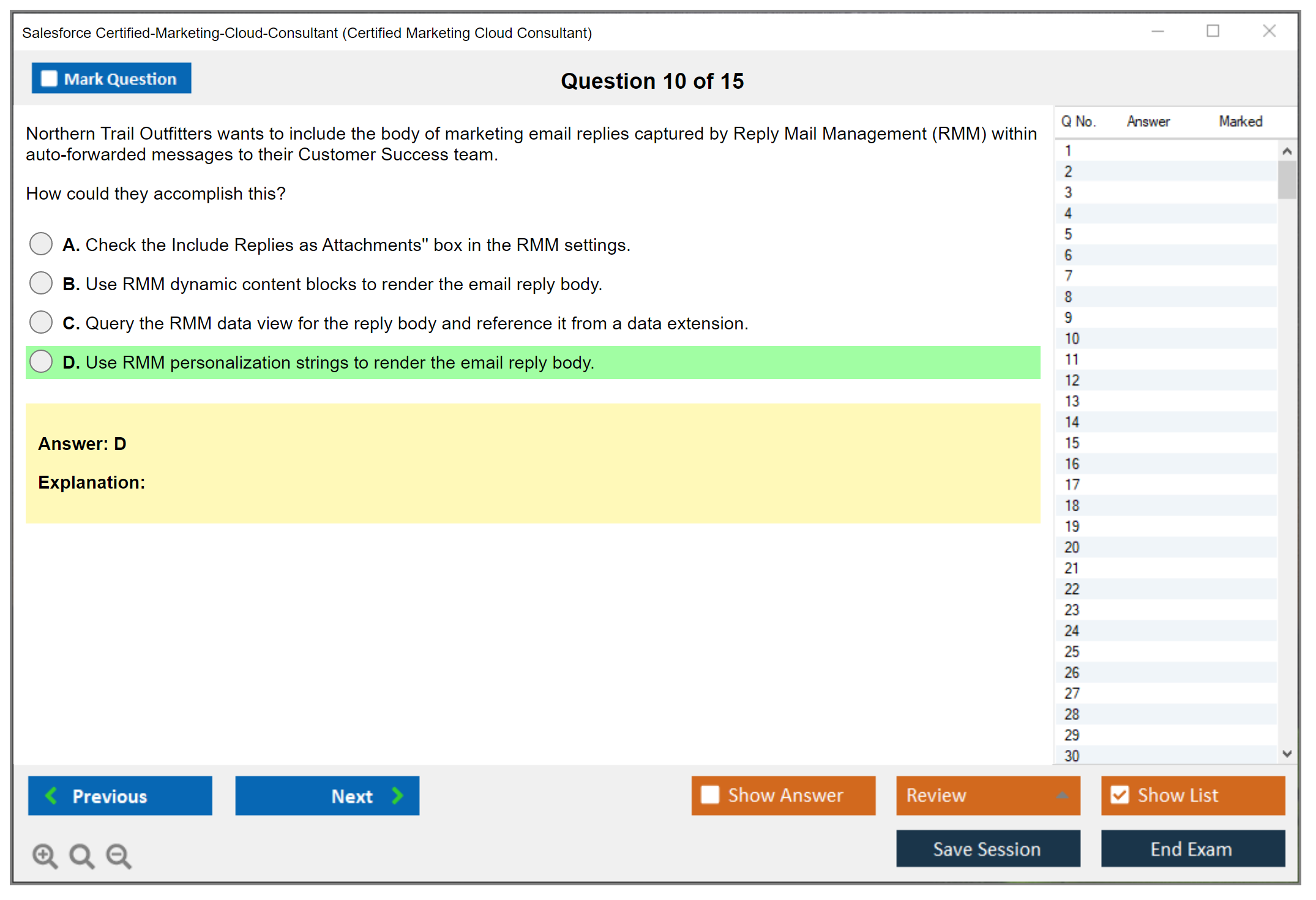 I found DumpsBoss’s Certified-Marketing-Cloud-Consultant questions to be outstanding. They offer clear, detailed practice that mirrors the actual exam—ideal for anyone serious about passing!