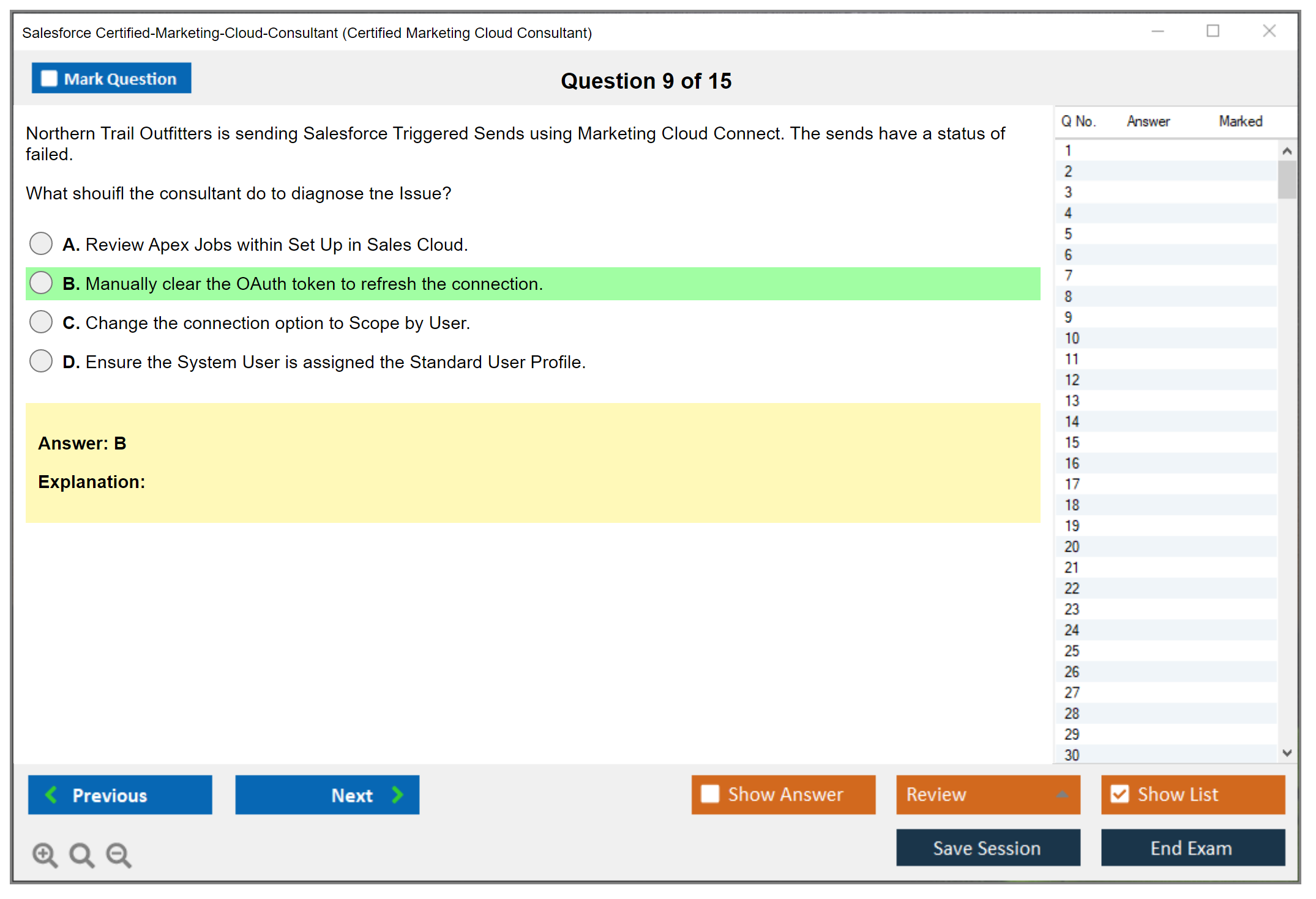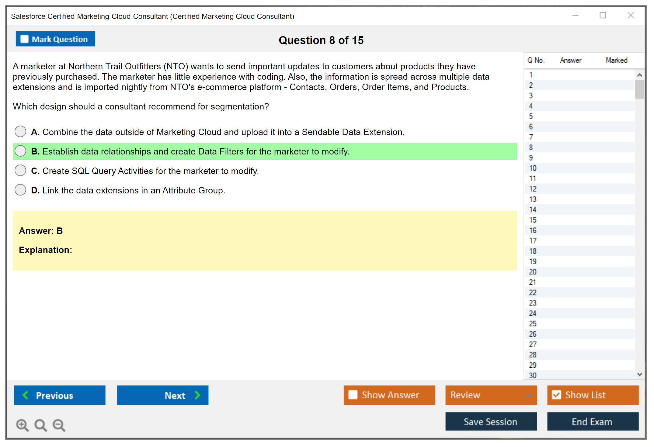 The Certified Marketing Cloud Consultant practice test from DumpsBoss is excellent! It provided a thorough review with accurate questions, helping me feel confident and prepared. Highly recommended for passing with ease!