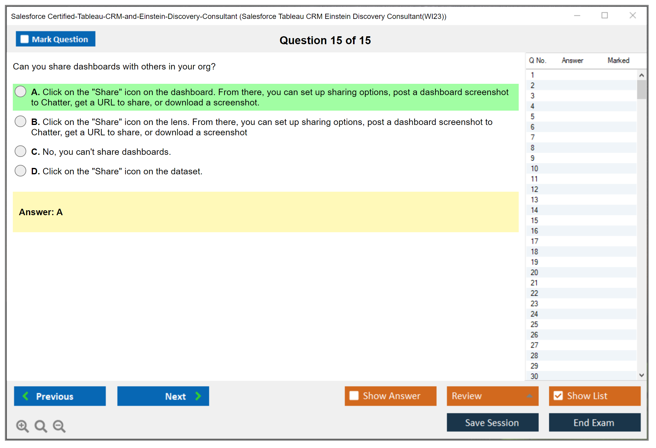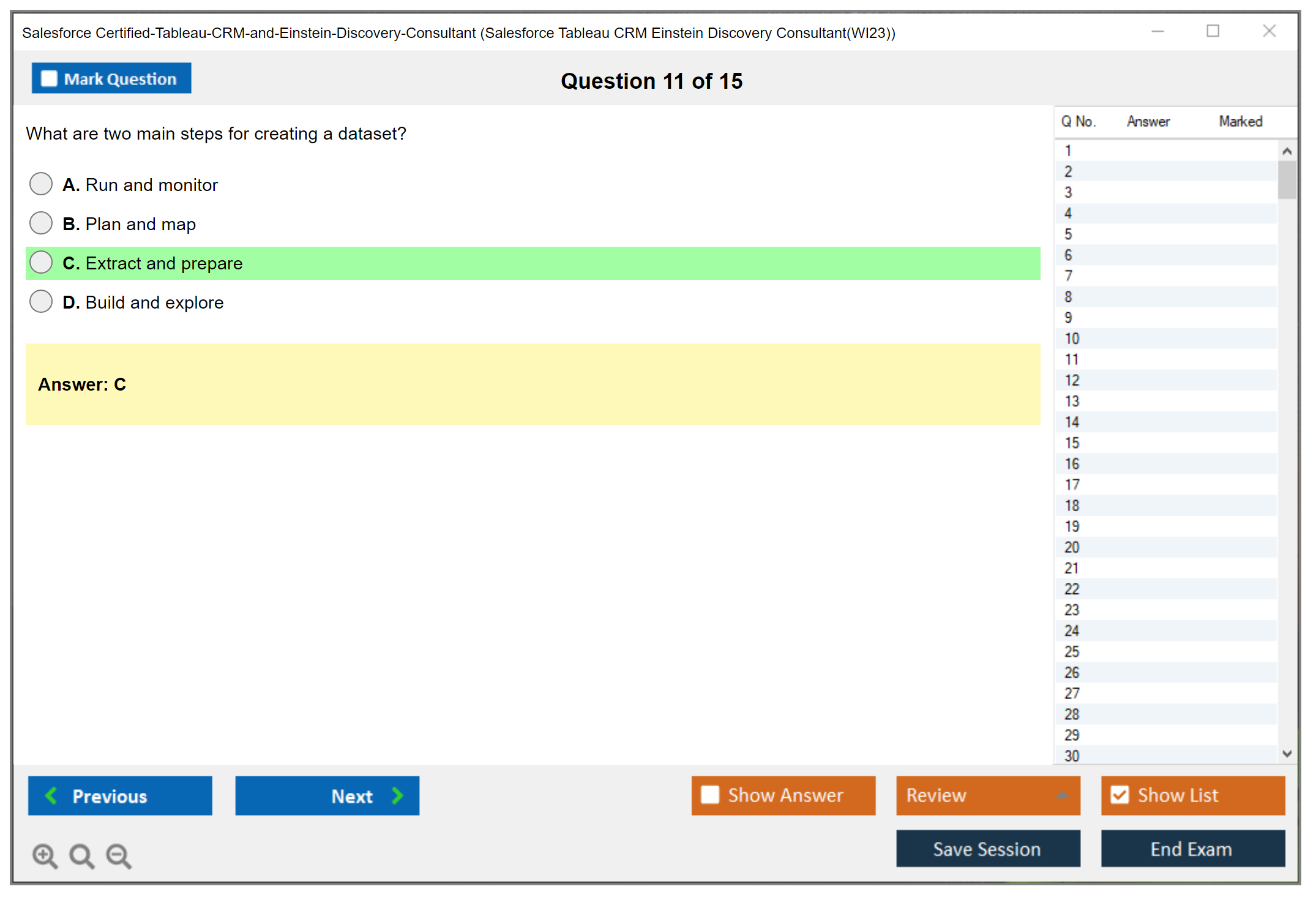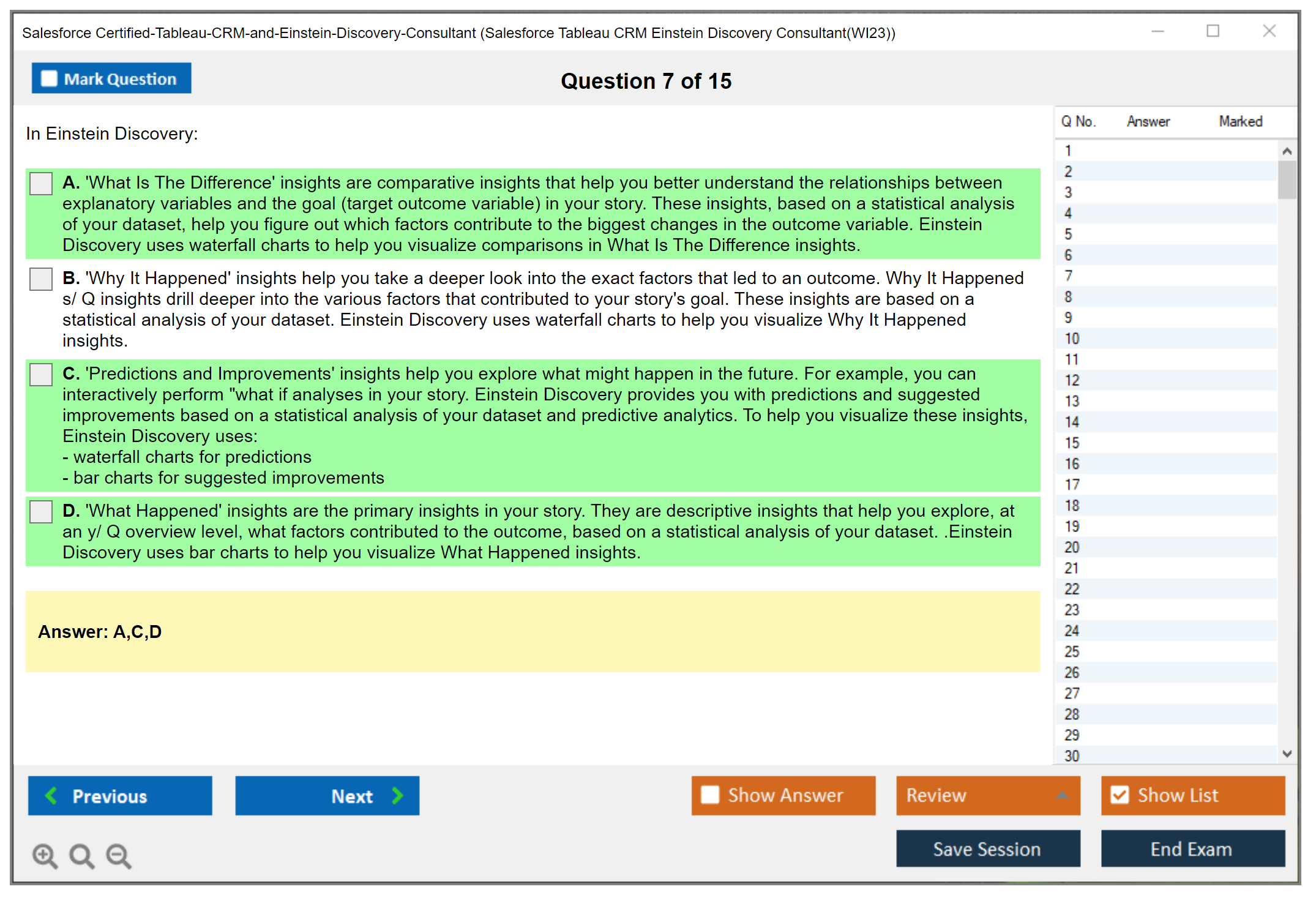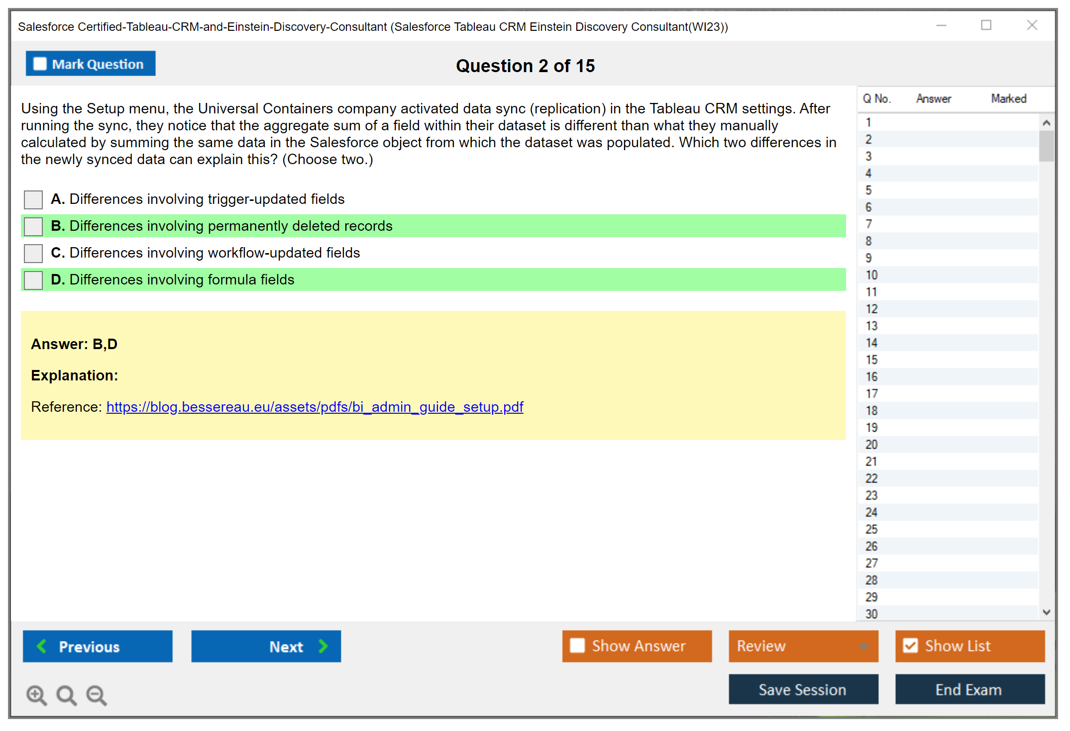 The Salesforce Certified Tableau CRM and Einstein Discovery Consultant exam is designed for individuals who have experience implementing and consulting on analytics solutions within the Salesforce ecosystem. This certification validates the knowledge and skills necessary to design, build, and support applications for Tableau CRM and Einstein Discovery.