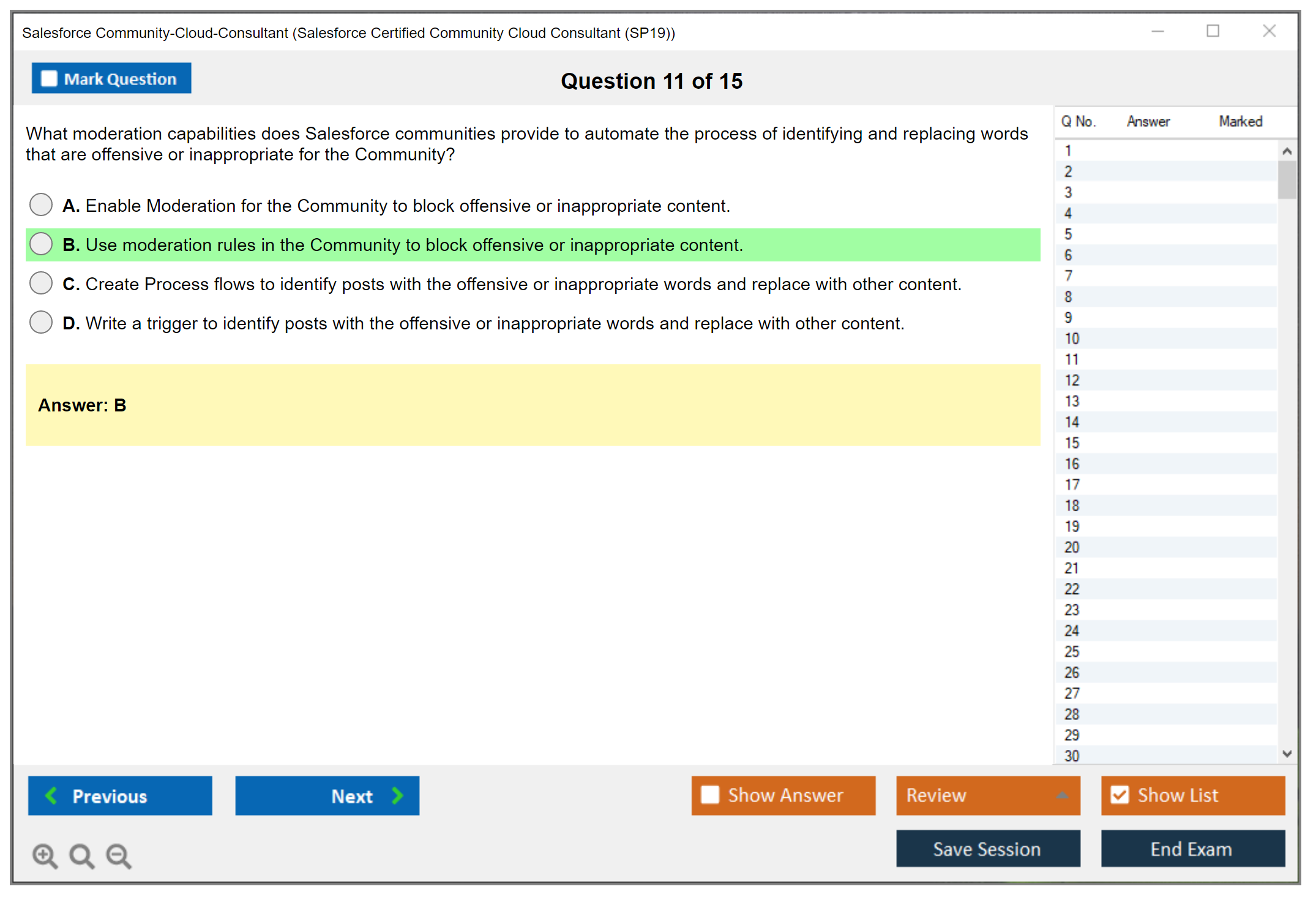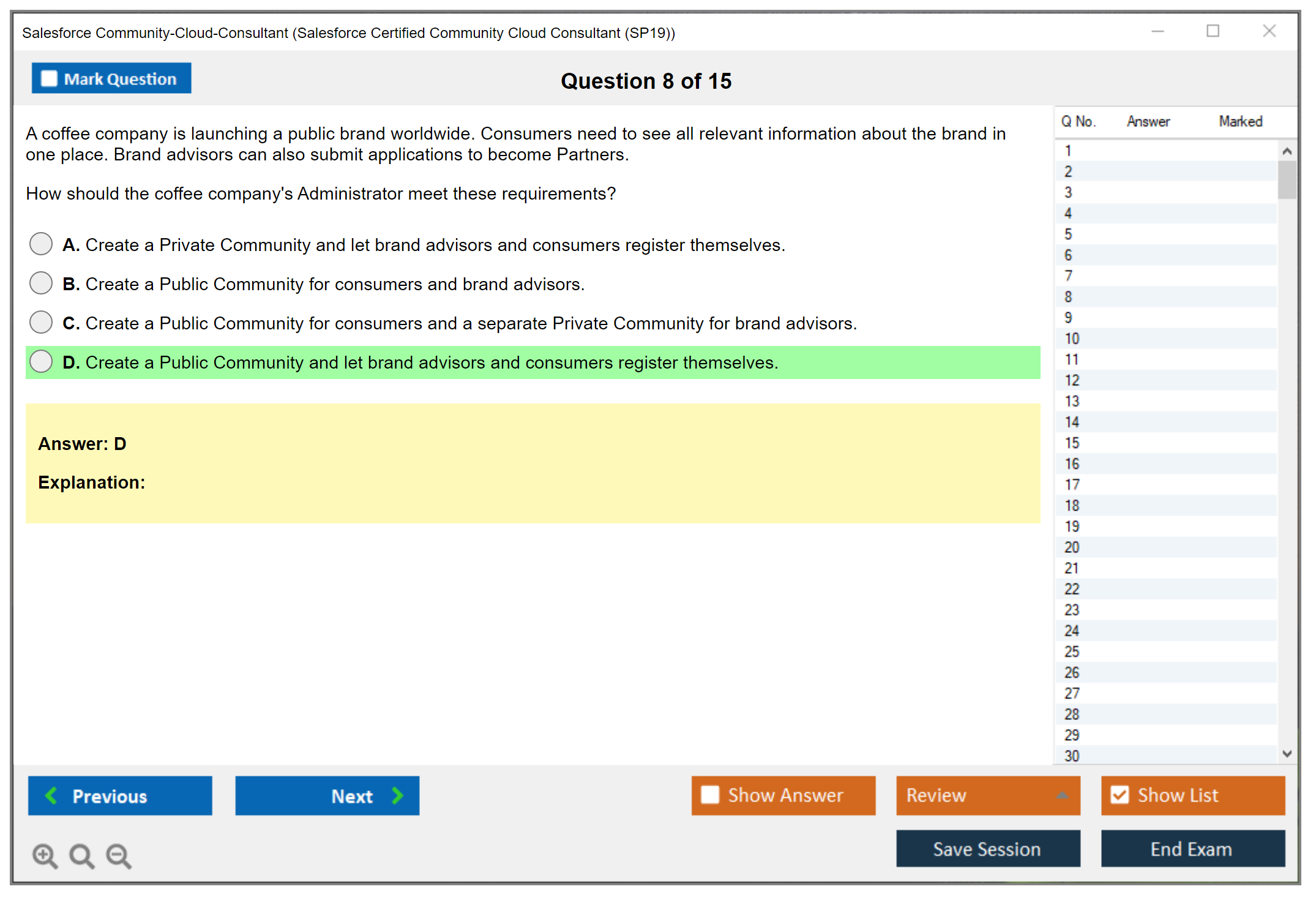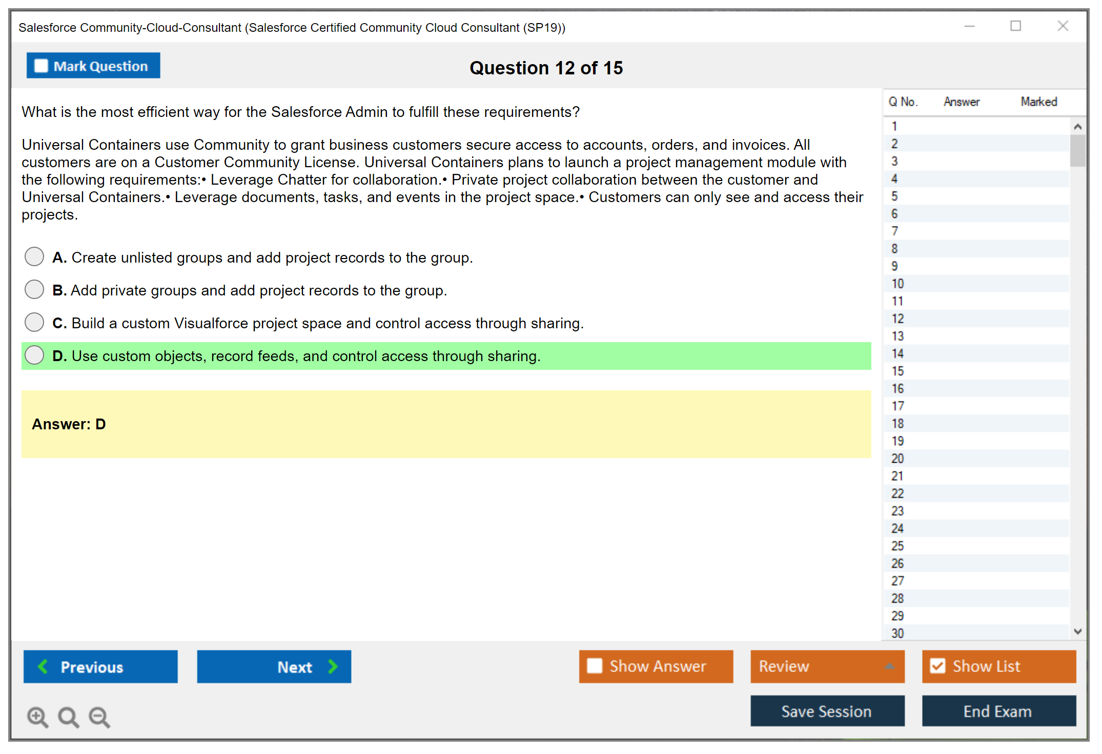DumpsBoss Salesforce Community Cloud Consultant dumps were a lifesaver! The realistic practice questions and detailed explanations helped me solidify my understanding. Highly recommend!