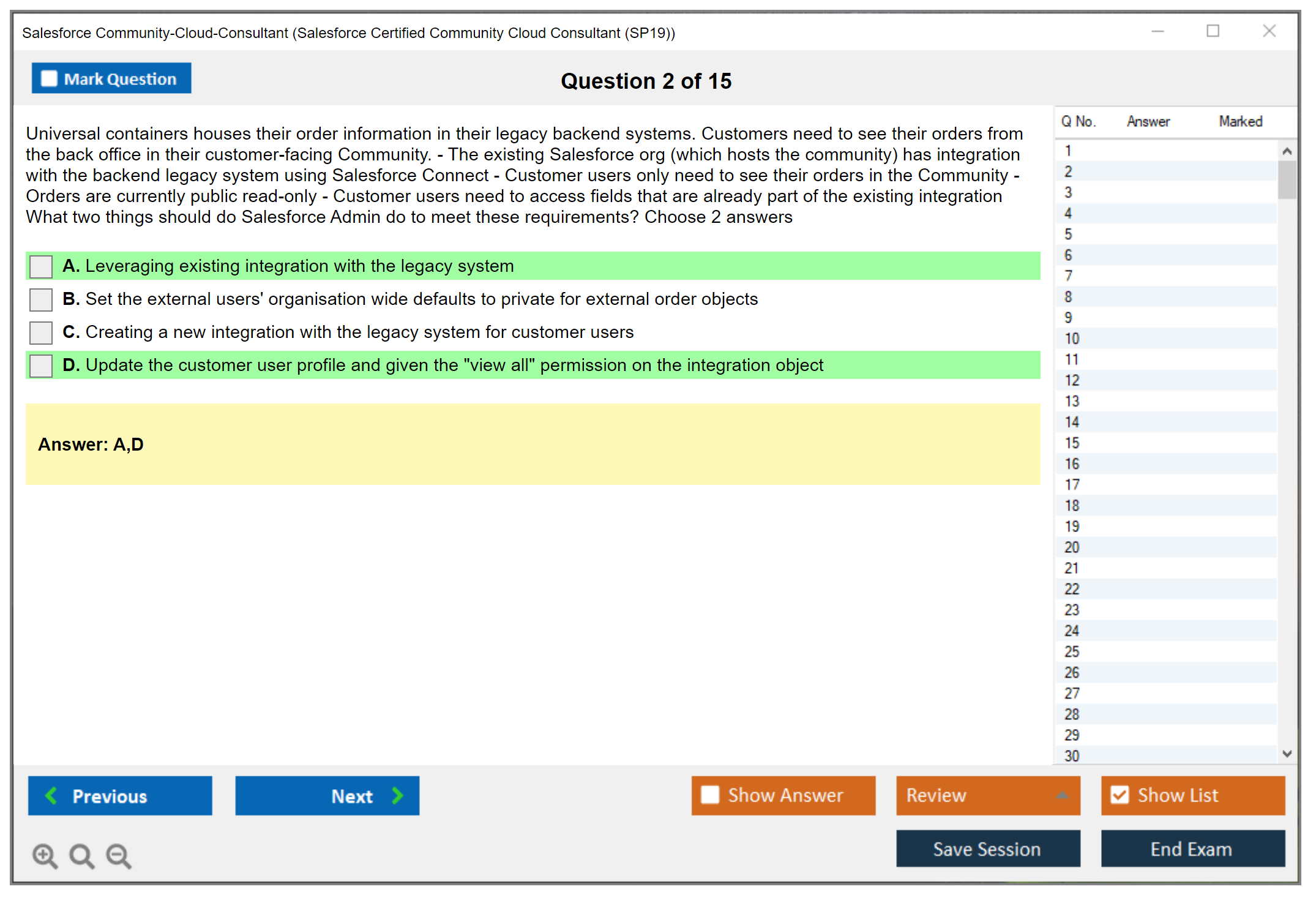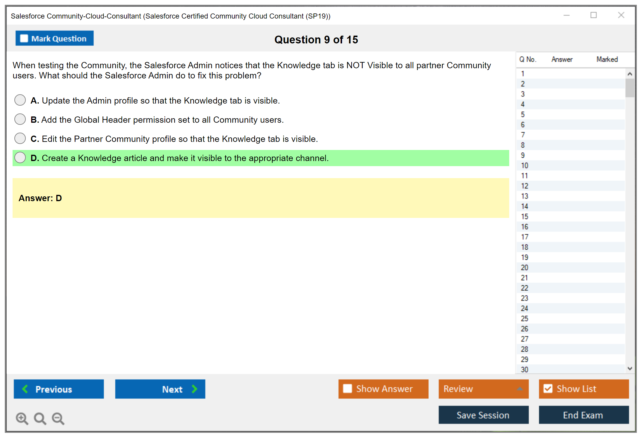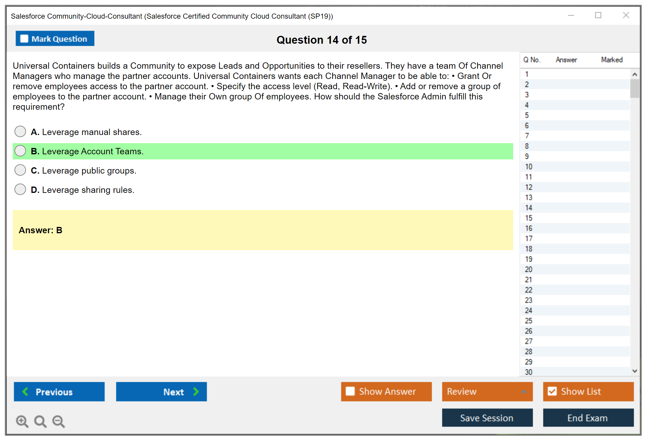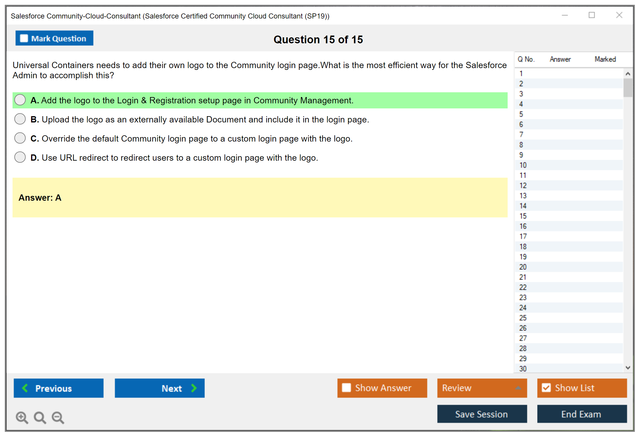 DumpsBoss Salesforce Community Cloud Consultant dumps were a lifesaver! The realistic practice questions and detailed explanations helped me solidify my understanding. Highly recommend!