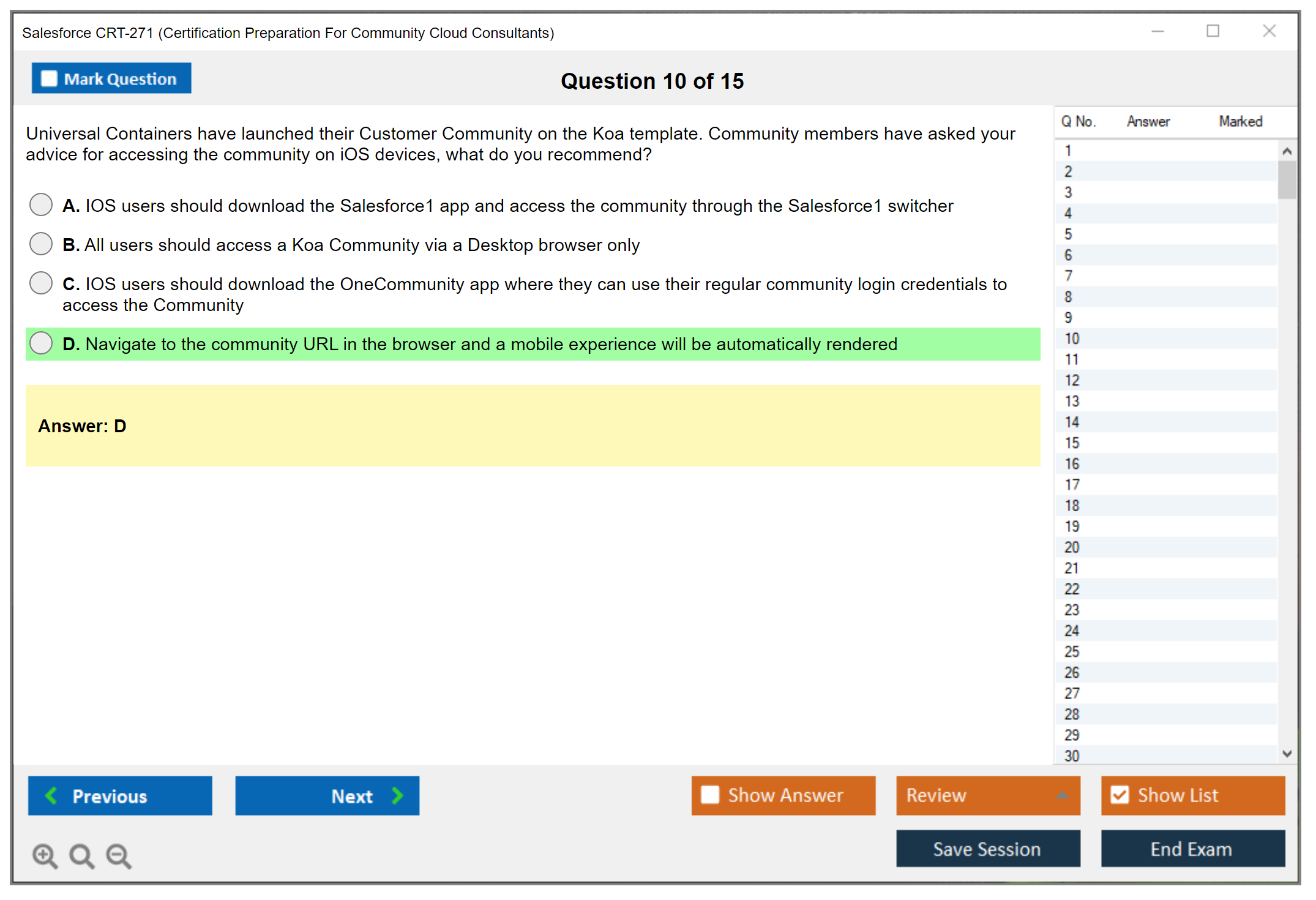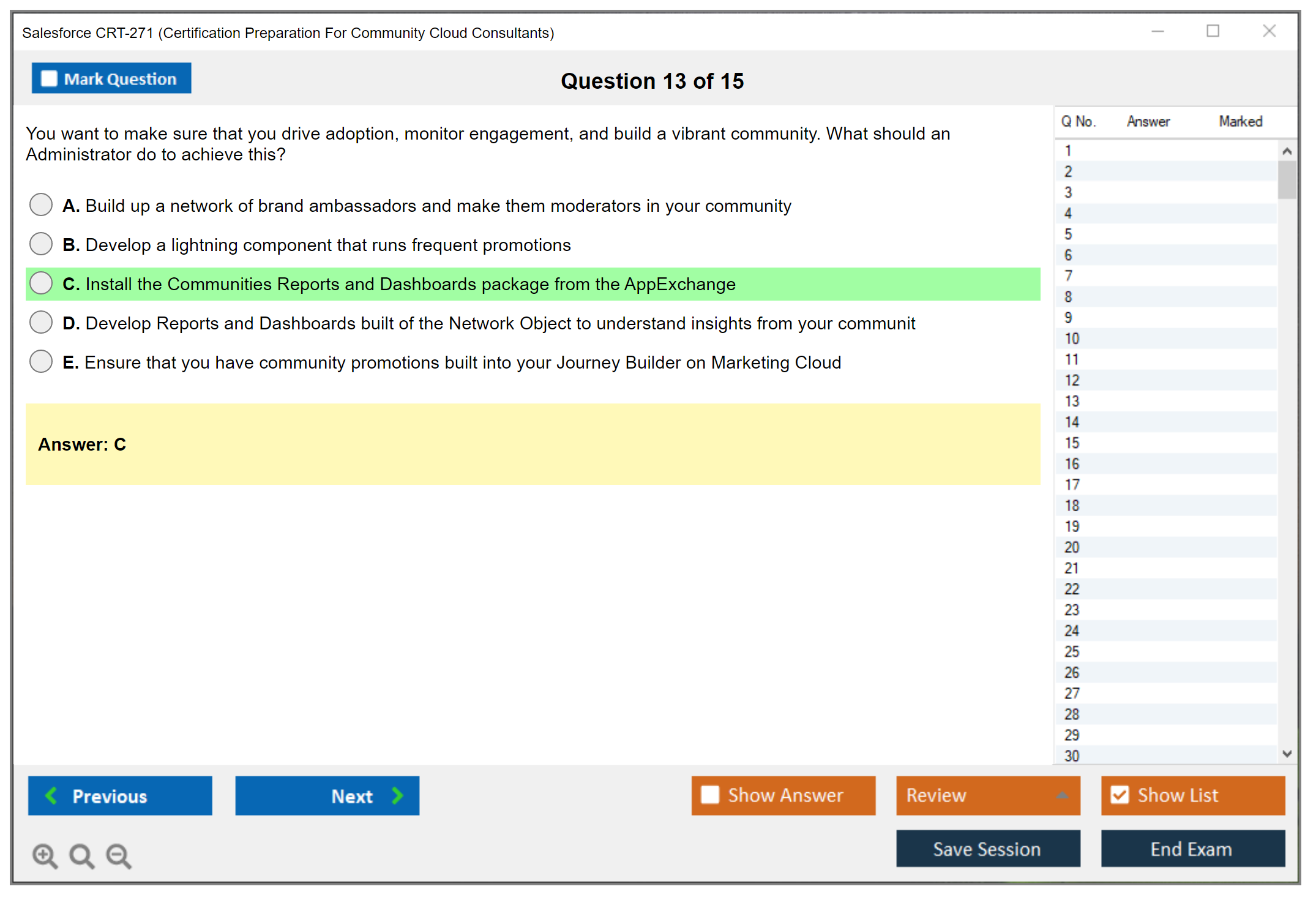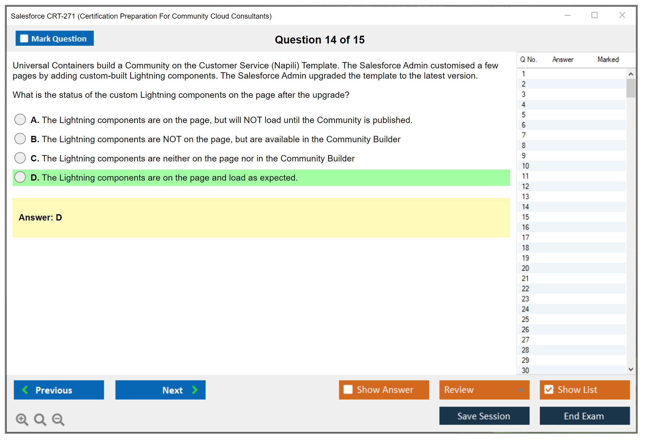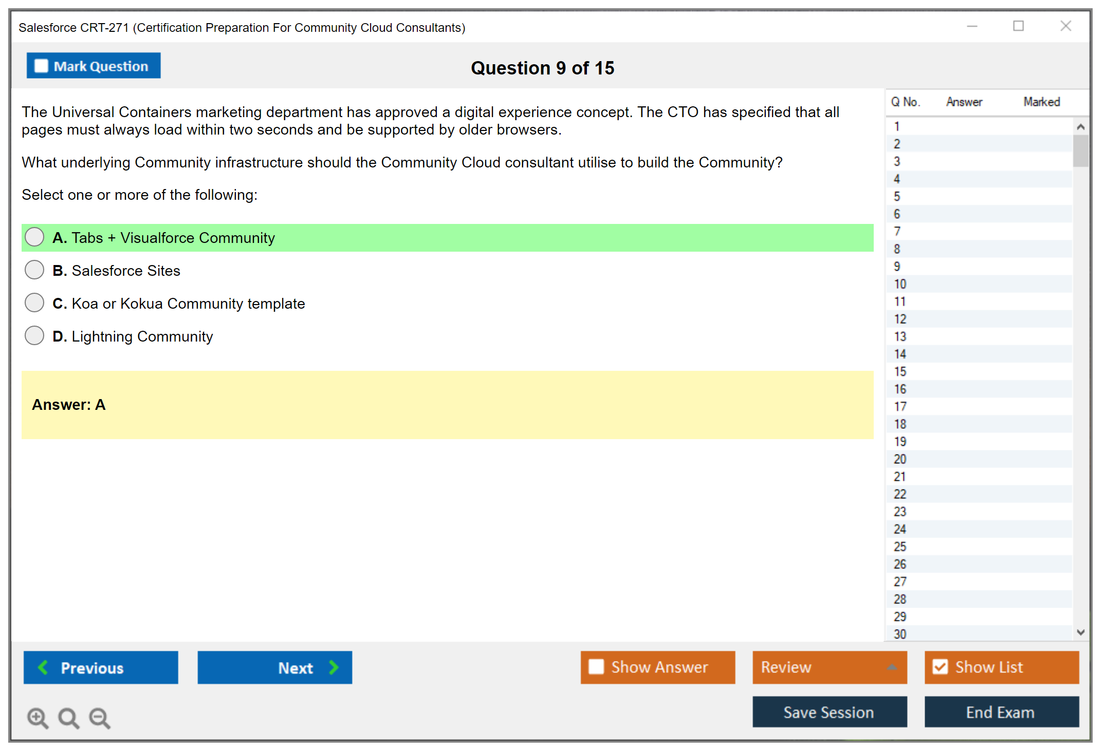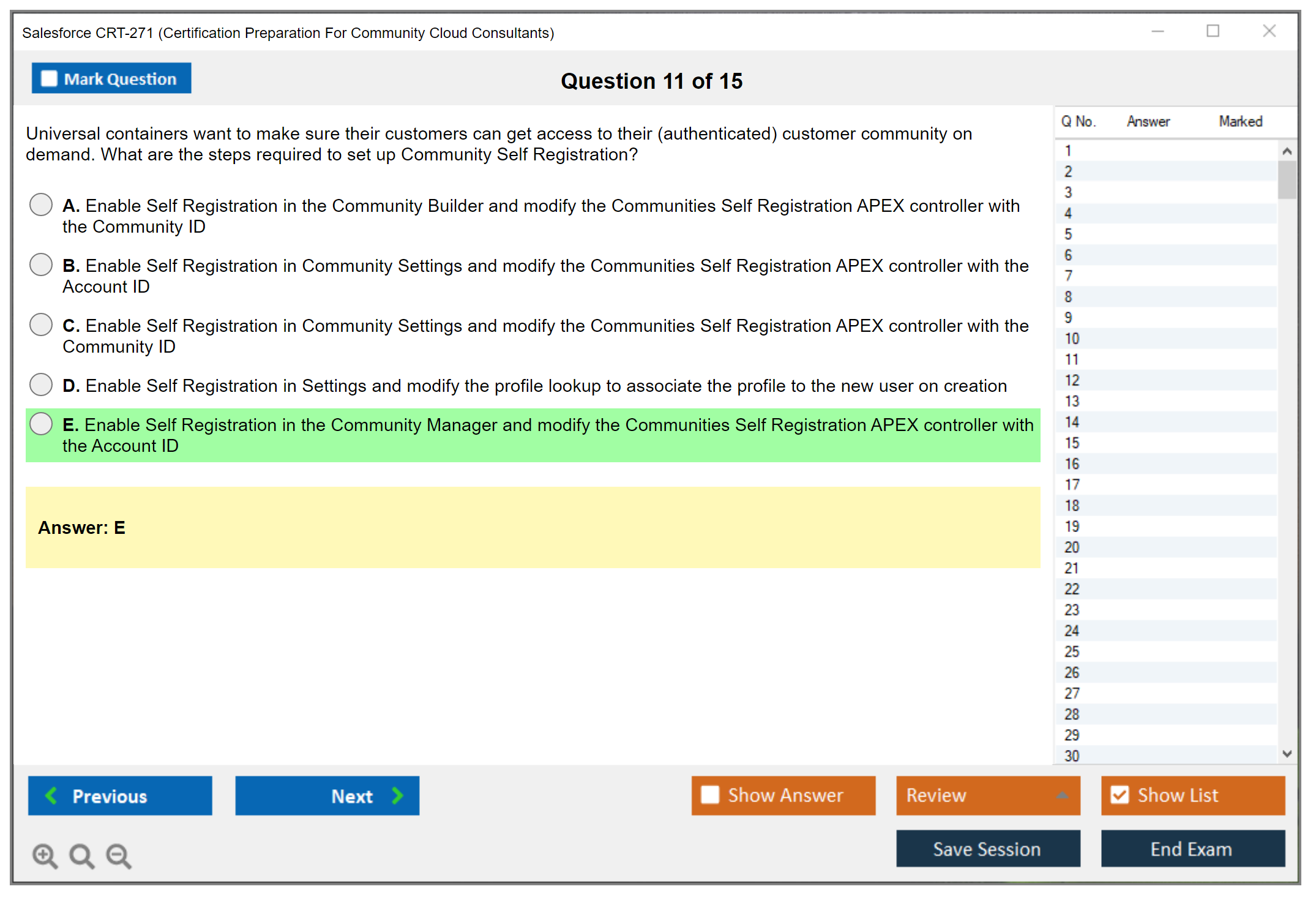 The Salesforce CRT-271 exam, also known as the Certification Preparation For Community Cloud Consultants, is designed to evaluate a candidate's knowledge and skills in implementing, configuring, and managing Salesforce Community Cloud applications.