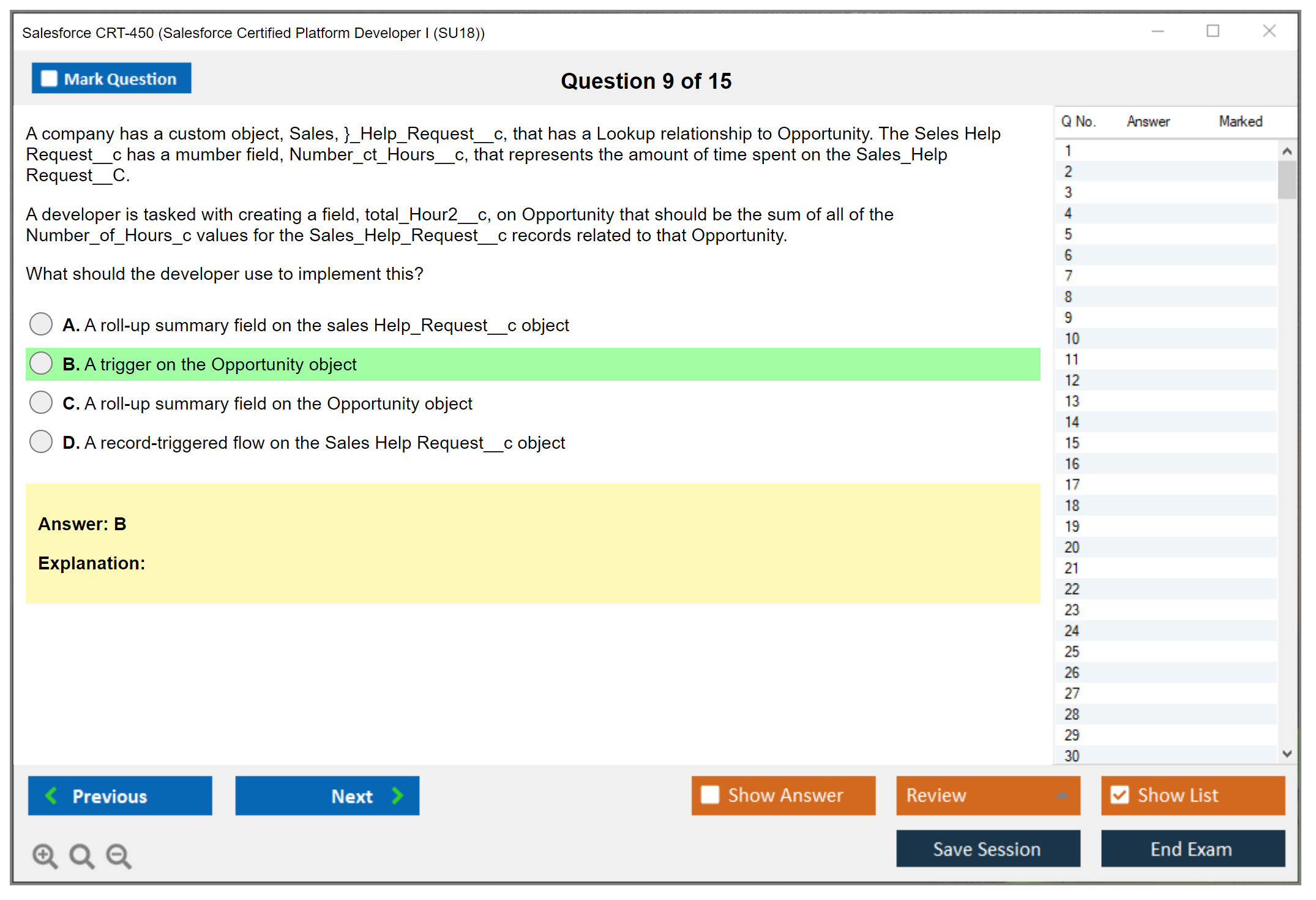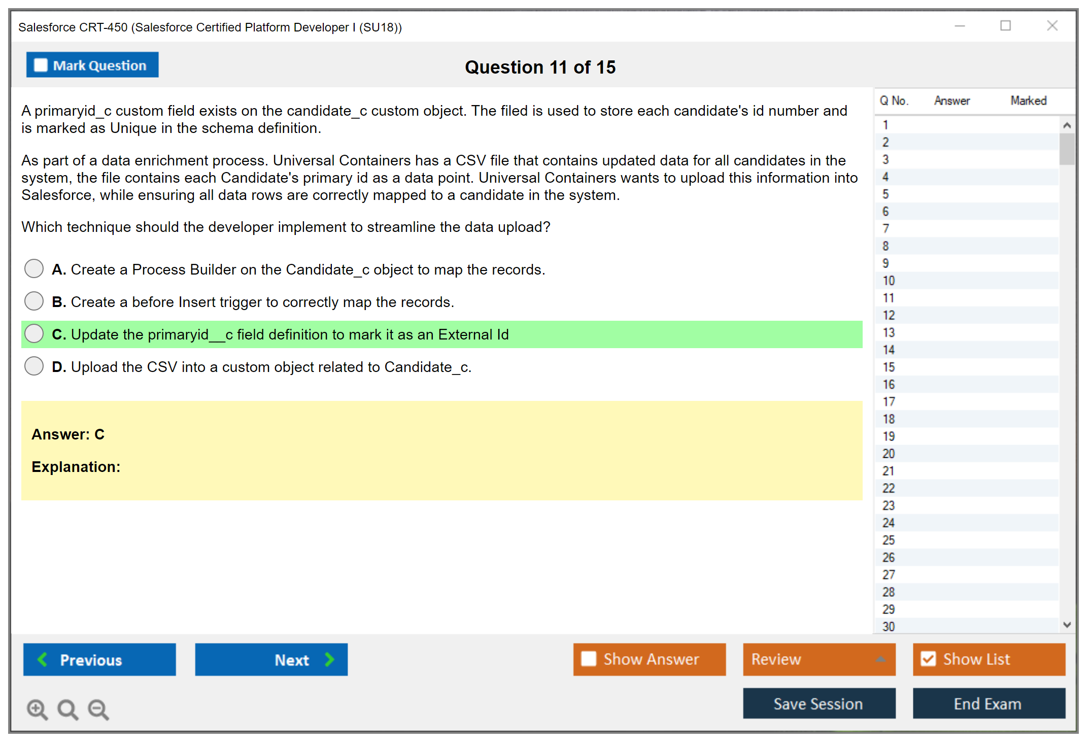 The Salesforce CRT-450 Exam is a comprehensive test that covers all aspects of Salesforce development. The study materials provided are thorough and well-organized, ensuring that you are well-prepared for the exam. I highly recommend it for anyone looking to validate their Salesforce skills.