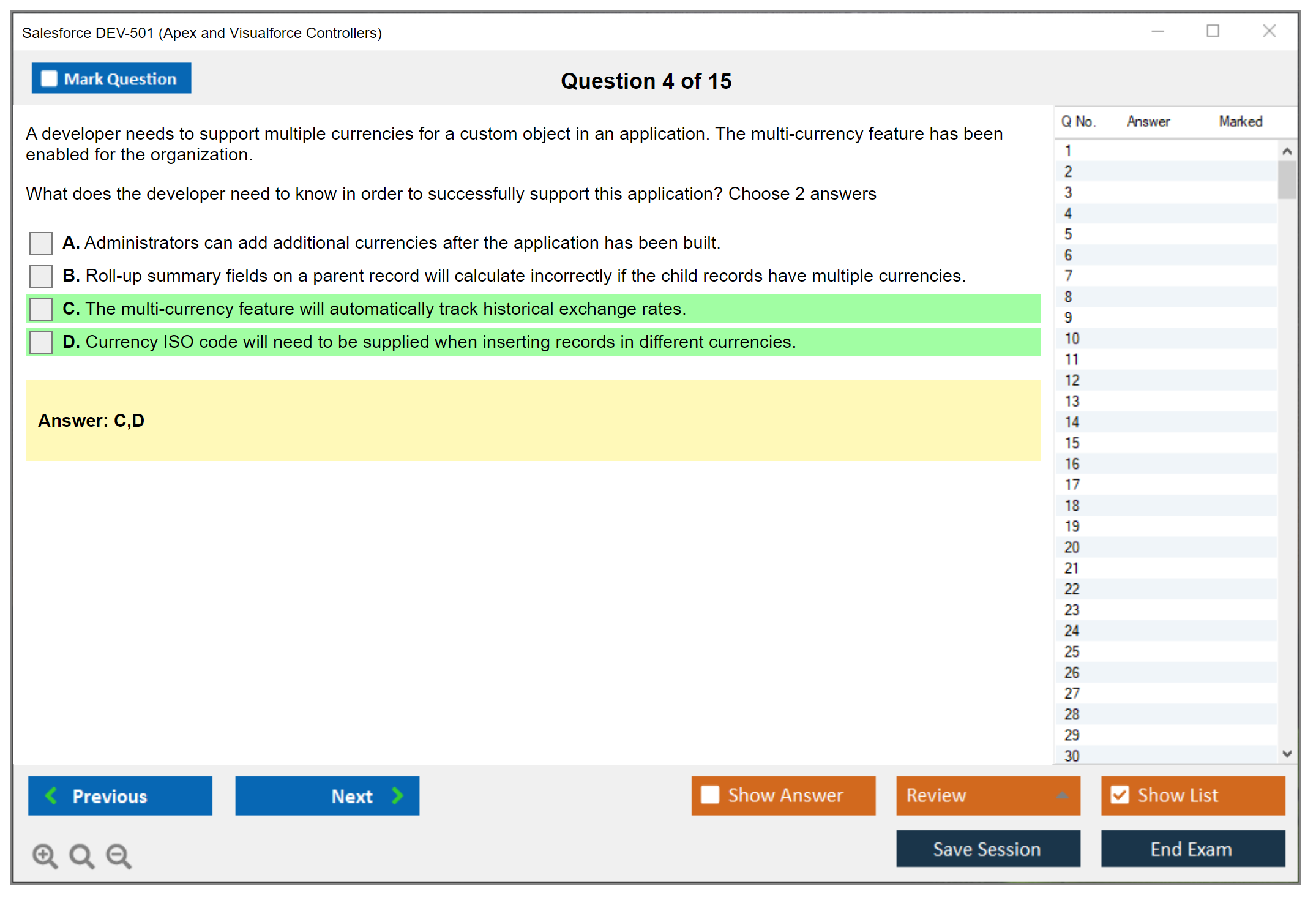 The question format of the Salesforce DEV-501 Exam includes multiple-choice and multiple-select questions.
