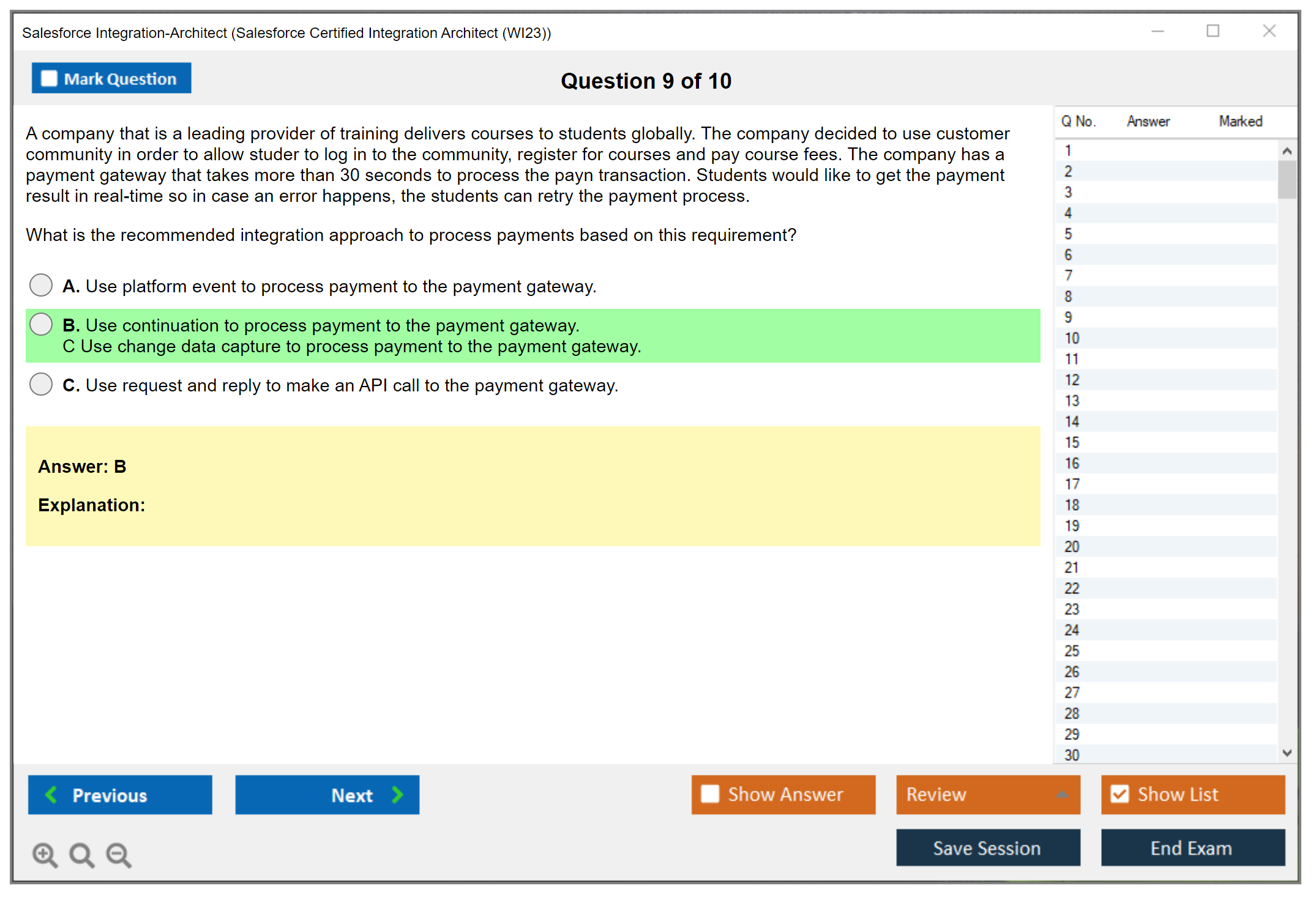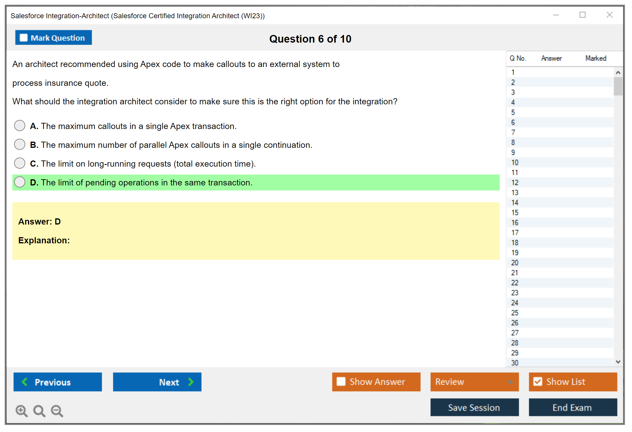 DumpsBoss hits the bullseye with their Salesforce Integration-Architect! A seamless integration powerhouse that transforms complexities into simplicities. Elevate your business game and synchronize effortlessly with this top-tier tool.
