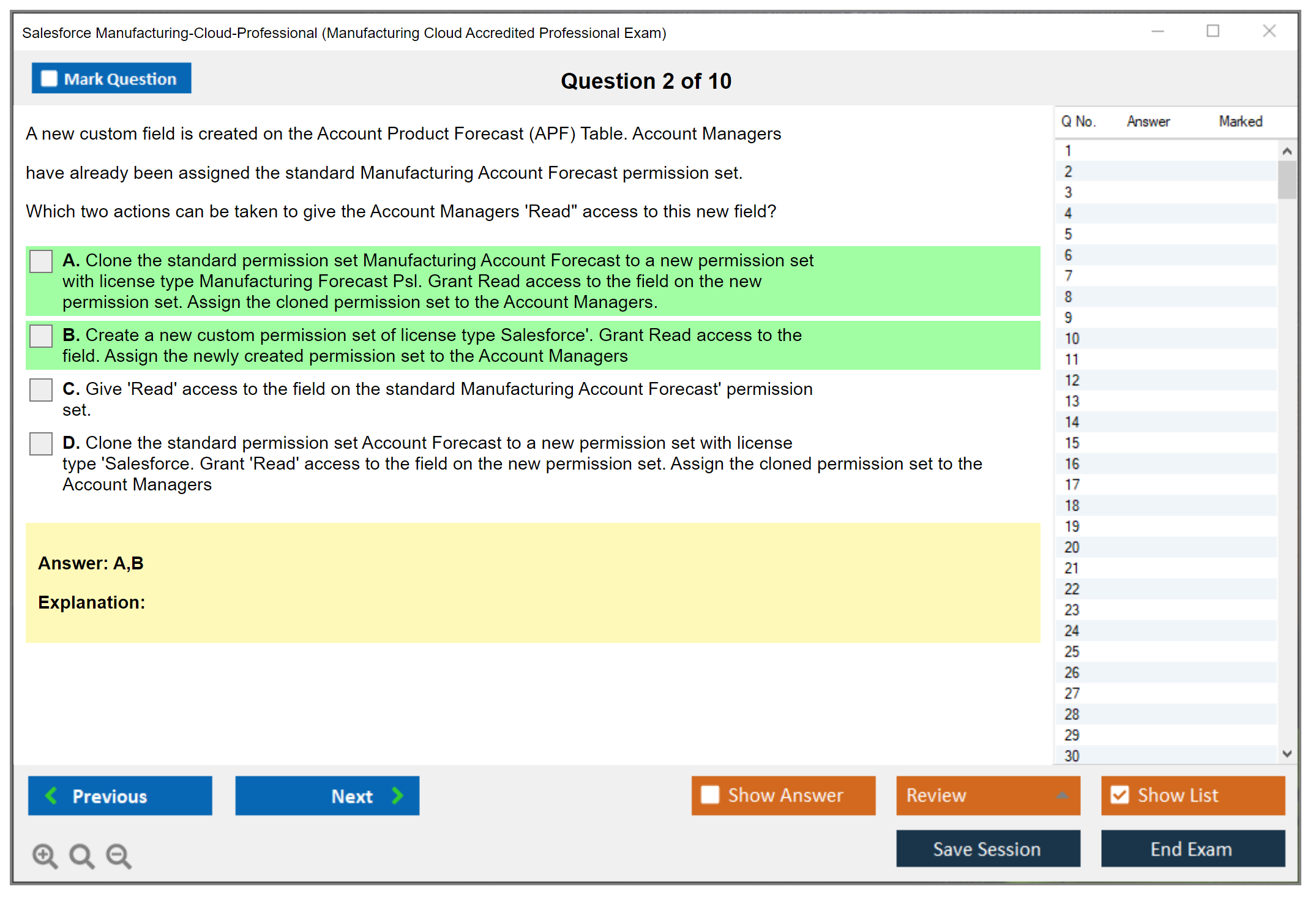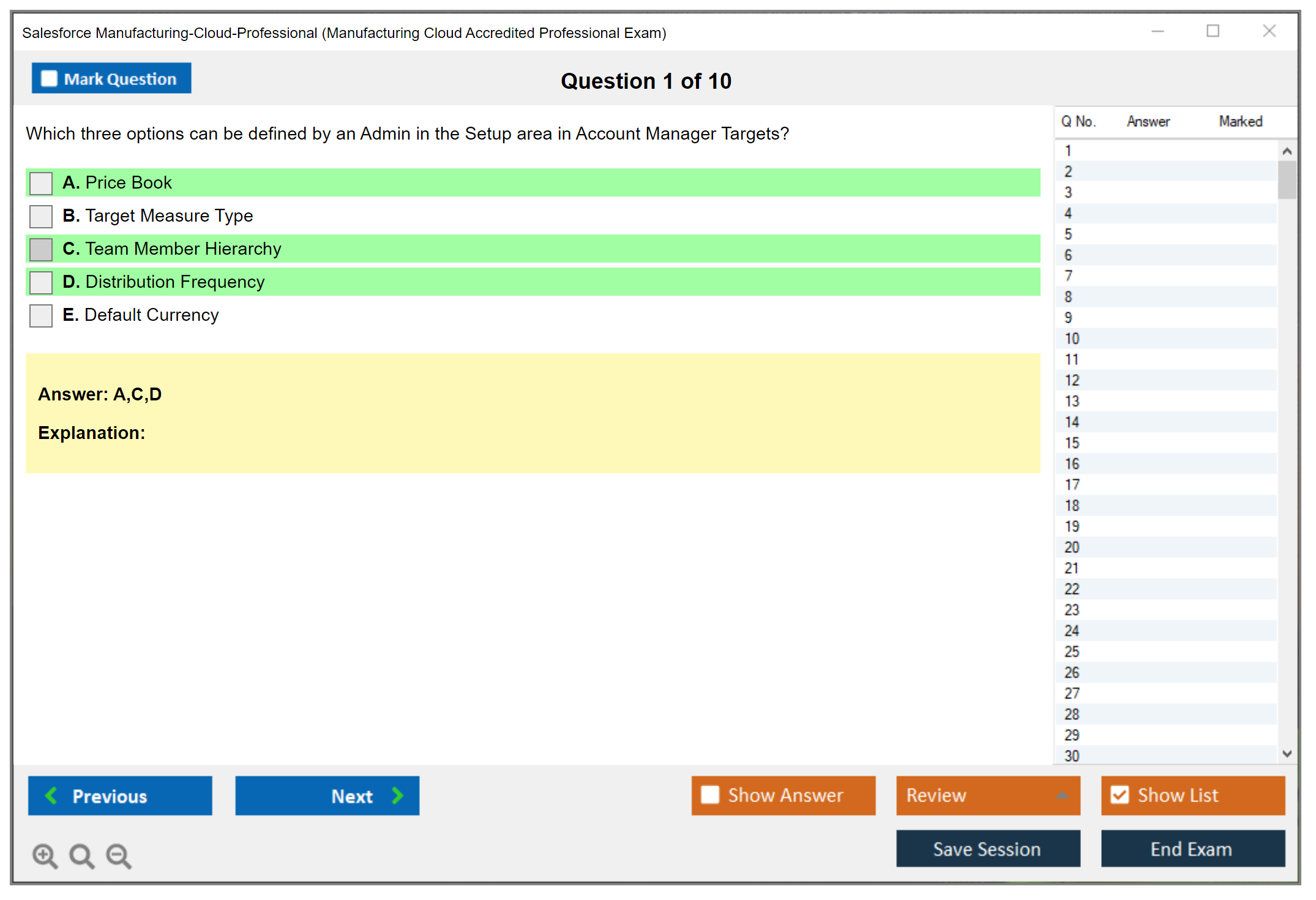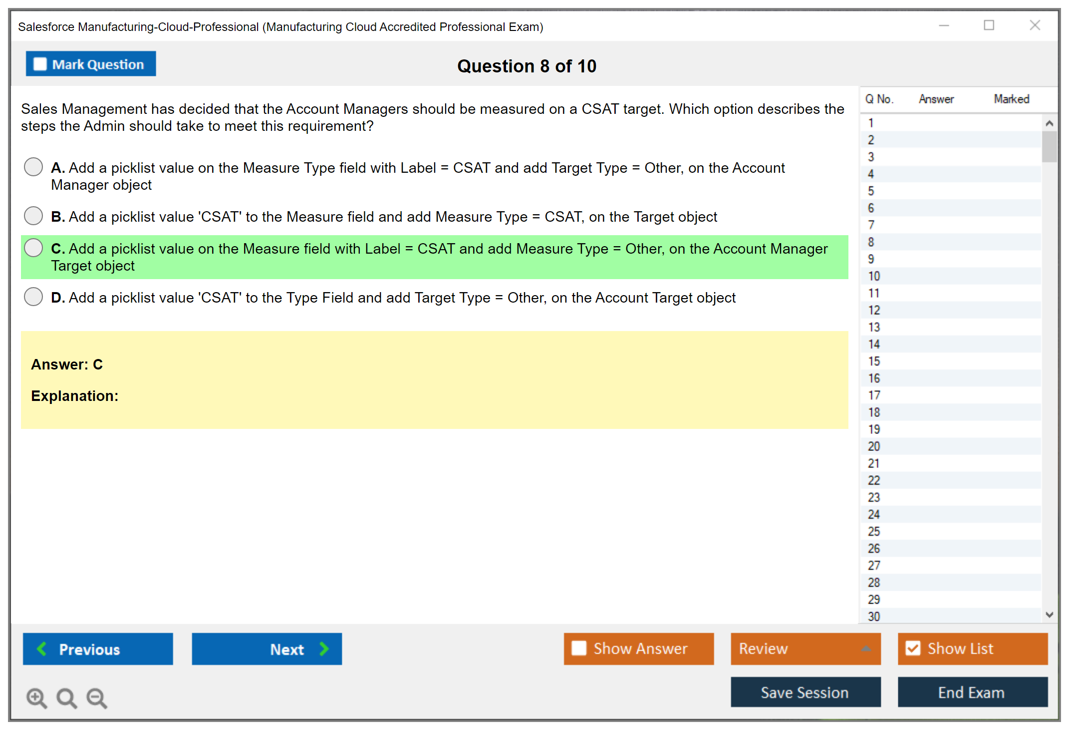 What are the Sample Questions of Salesforce Manufacturing-Cloud-Professional Exam?