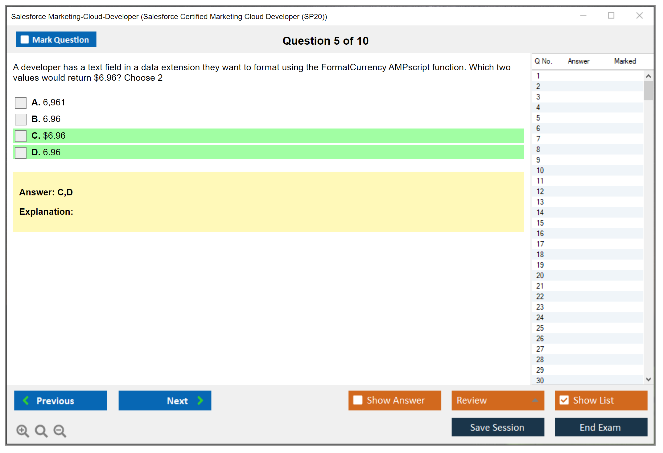 What is the Question Format of Salesforce Marketing-Cloud-Developer Exam?