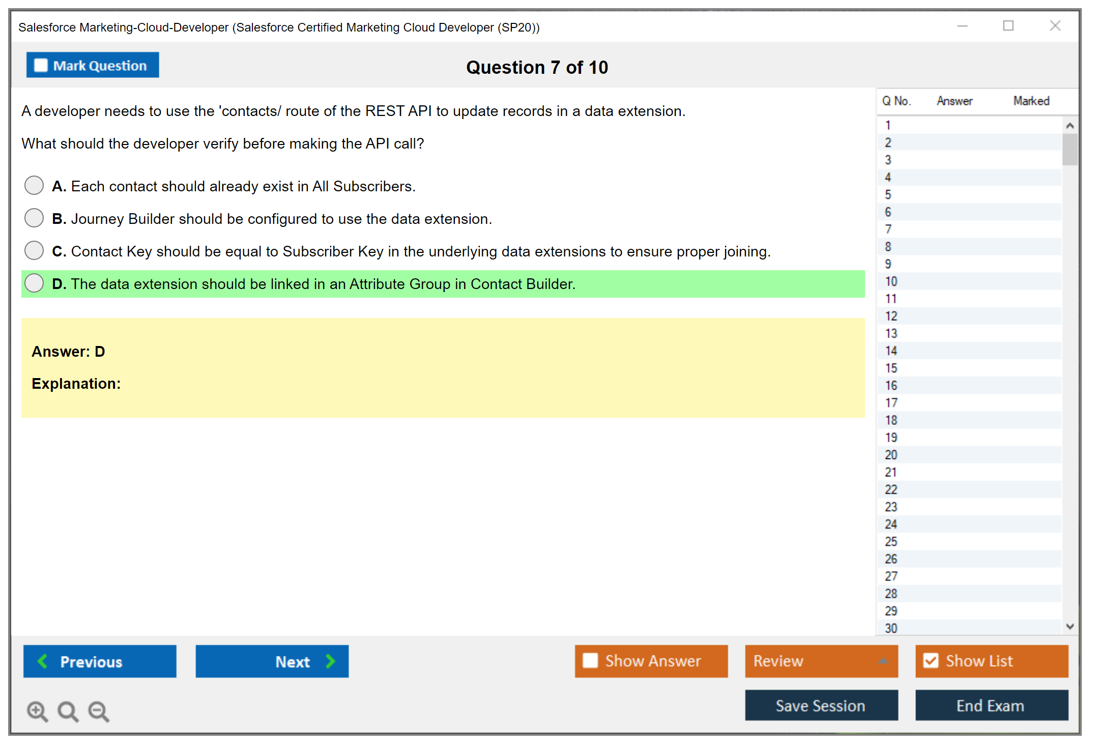 Sample questions for the Salesforce Marketing-Cloud-Developer exam can be found on the official Salesforce certification website or through various online training resources.