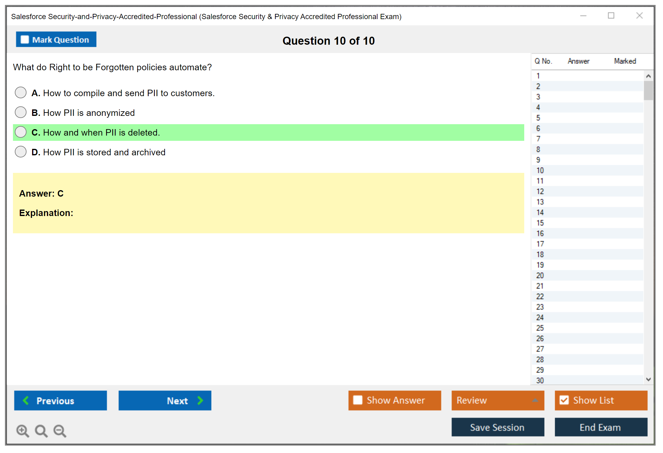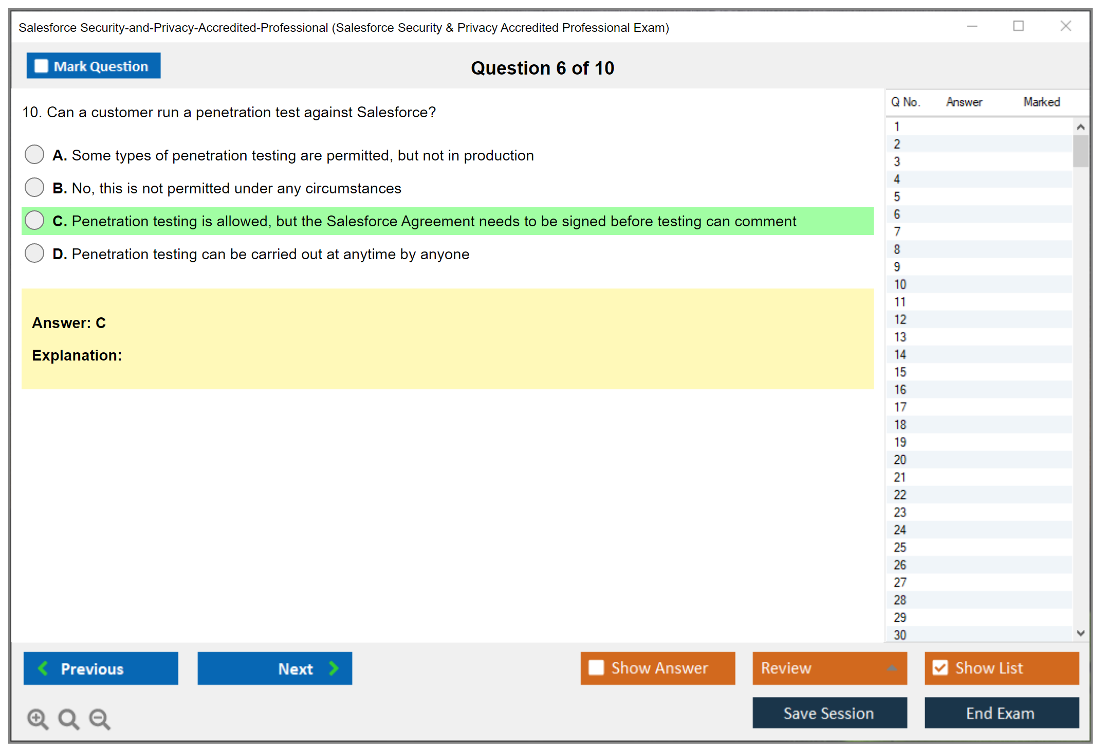 Shoutout to DumpsBoss for their fantastic resources for the Salesforce Security-and-Privacy-Accredited-Professional Exam. The study guide was user-friendly, and the practice exams on their website were essential for my success.