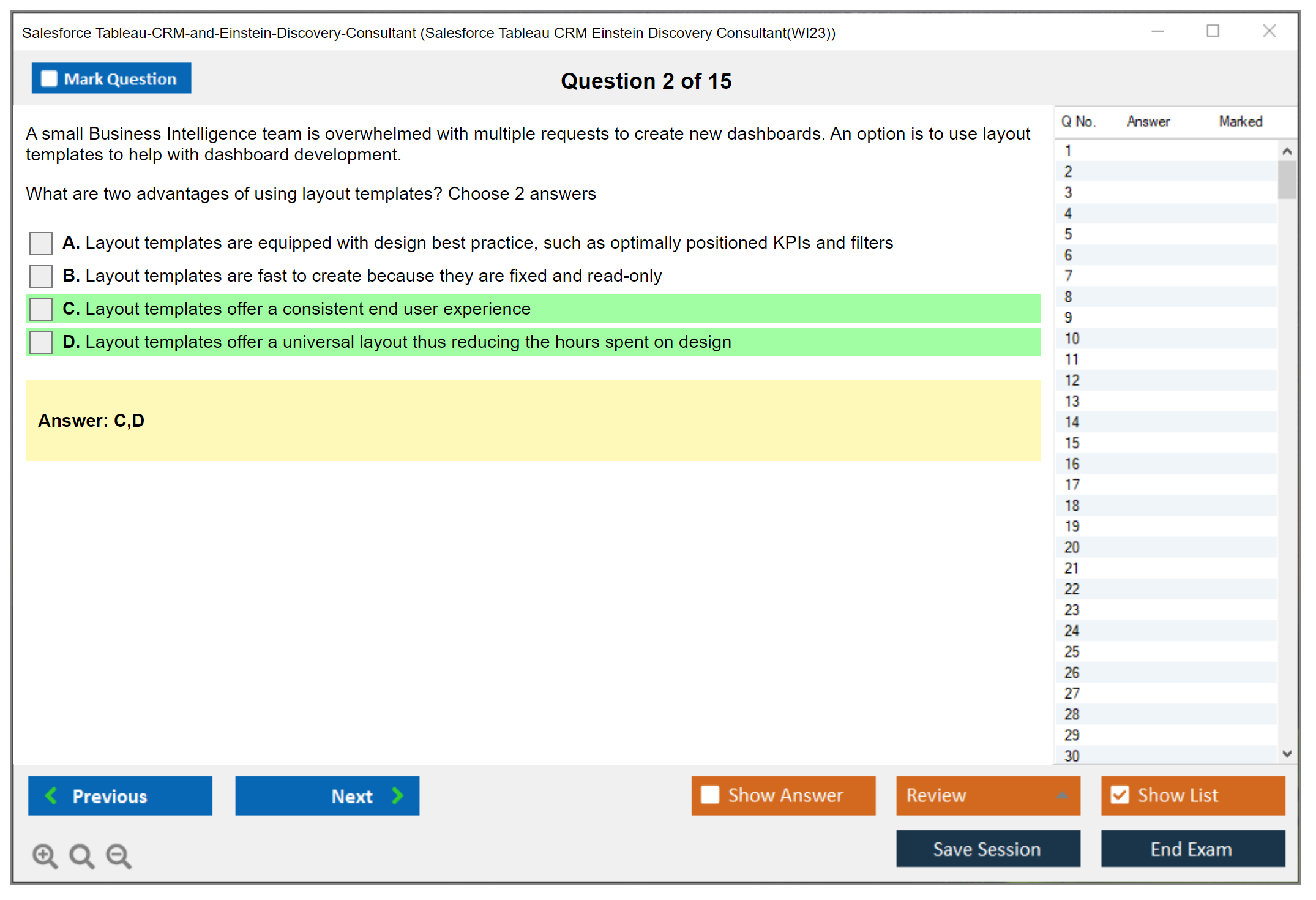 The question format of the Salesforce Tableau CRM and Einstein Discovery Consultant exam includes multiple-choice and multiple-select questions.
