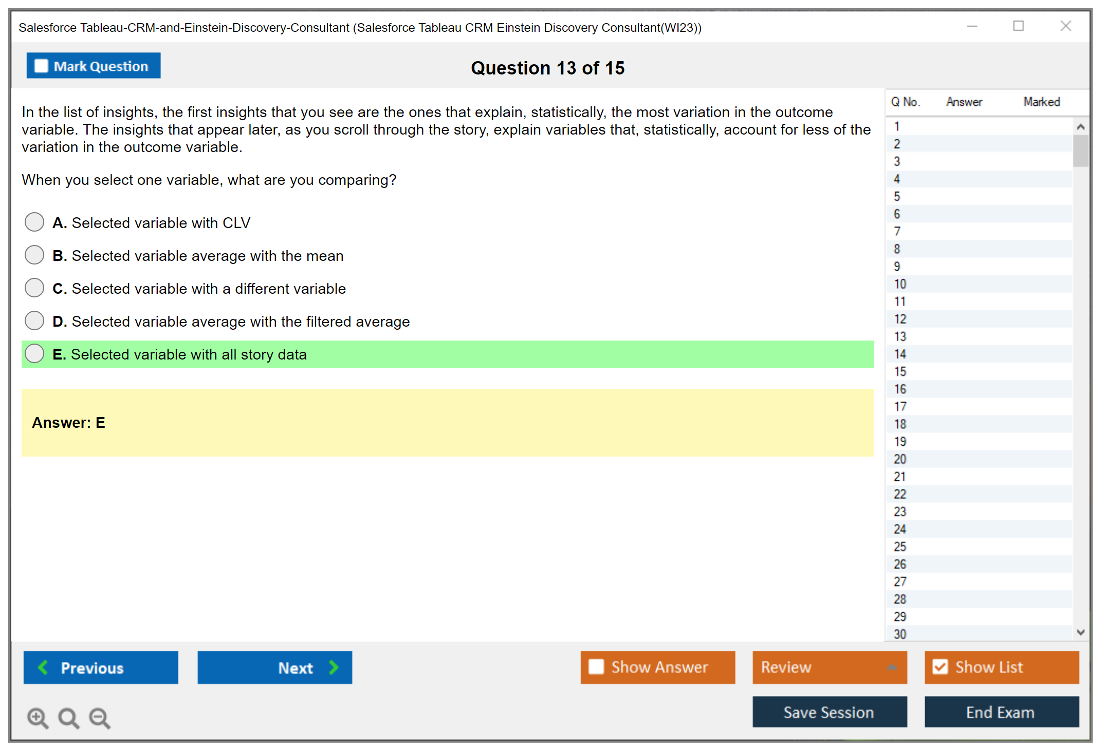 What are the Sample Questions of Salesforce Tableau-CRM-and-Einstein-Discovery-Consultant Exam?