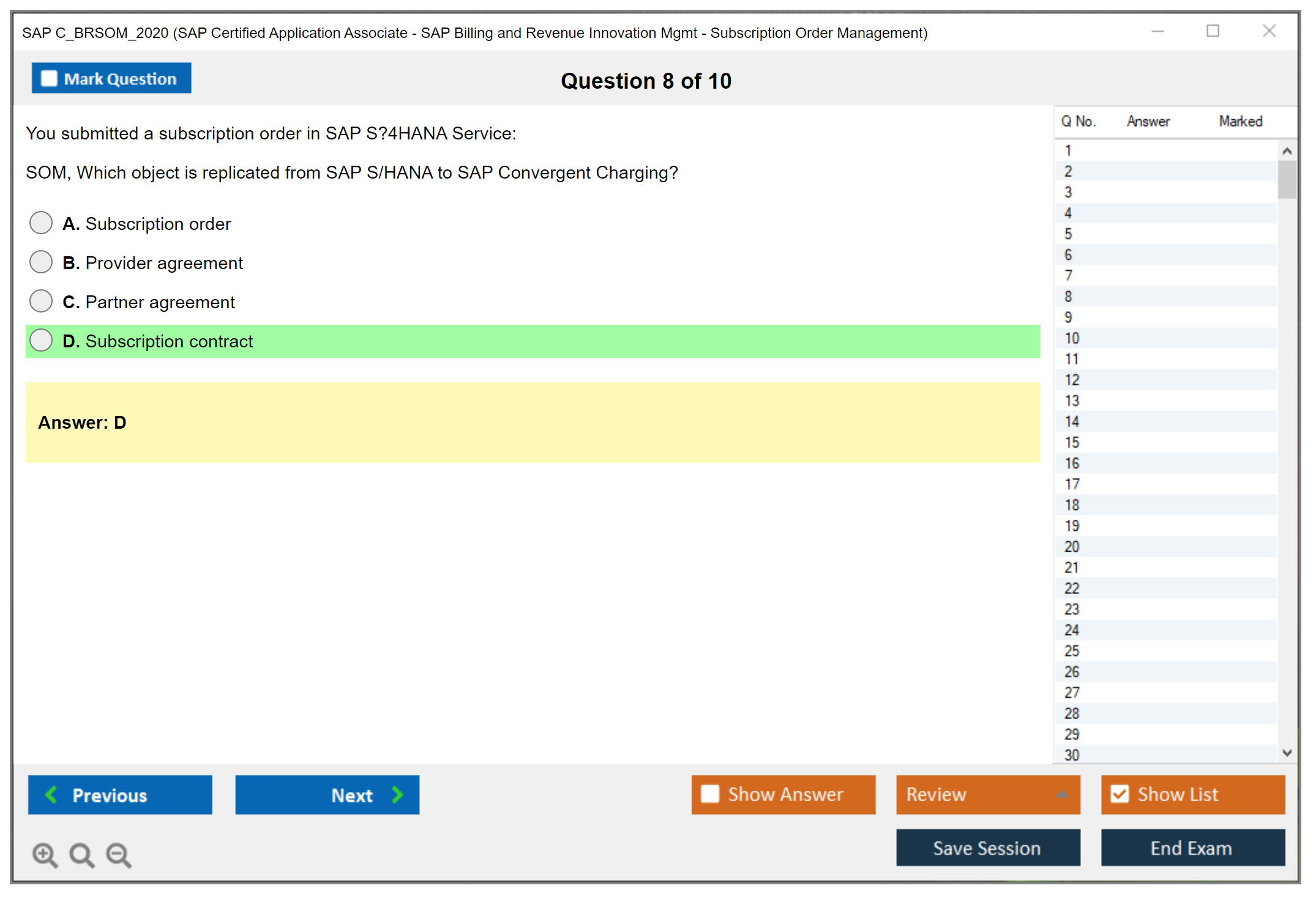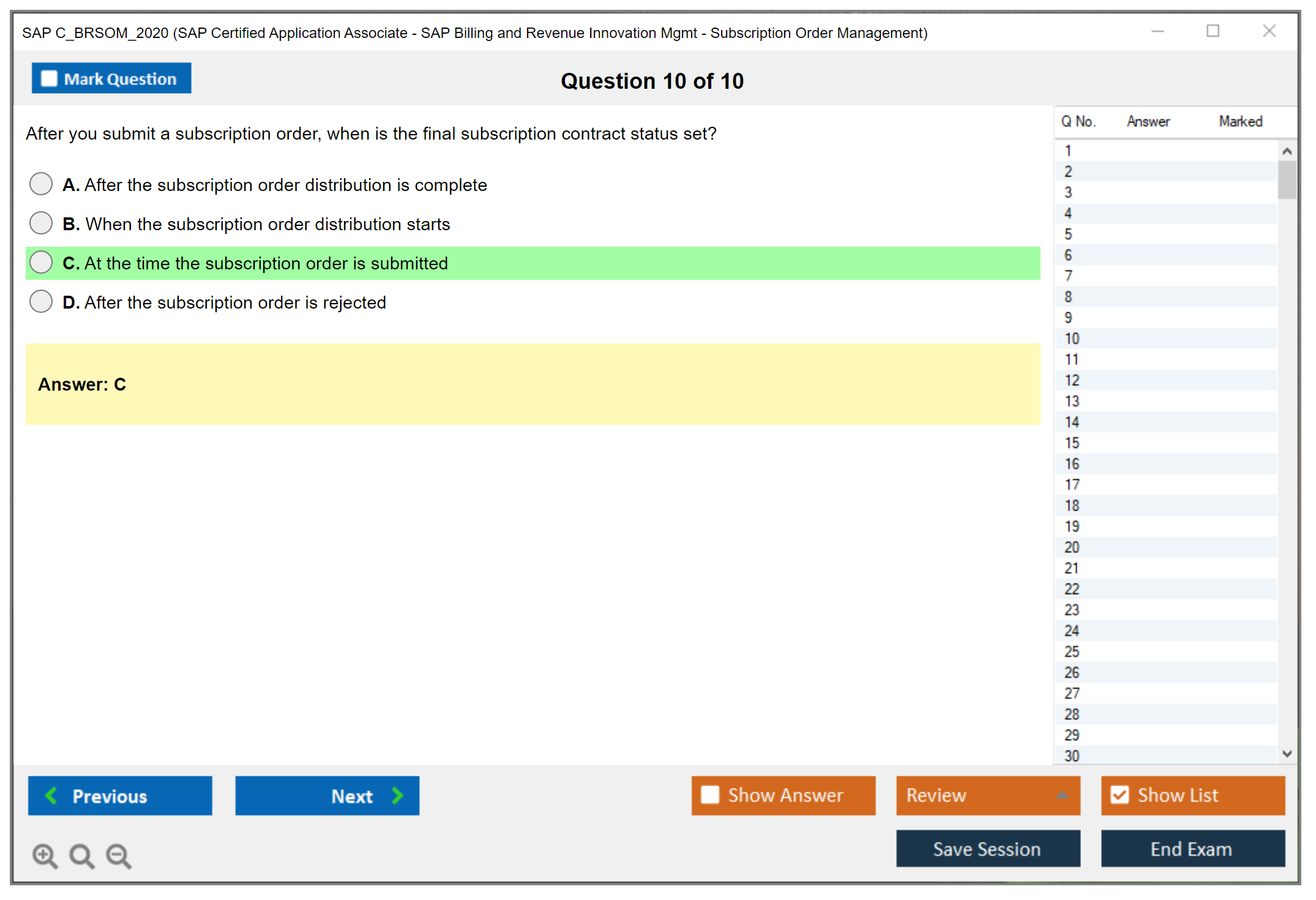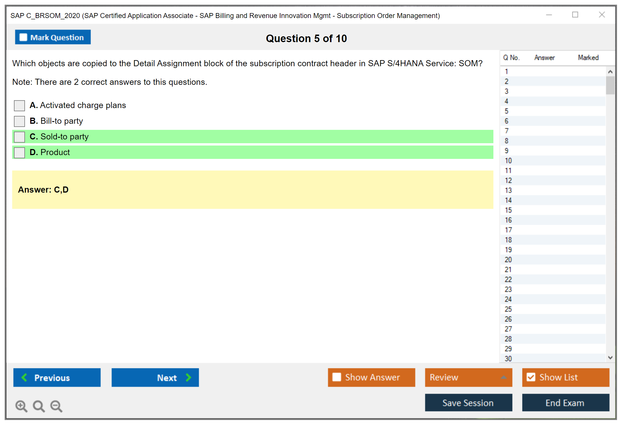 The SAP C_BRSOM_2020 exam is designed for individuals who want to validate their skills and knowledge in SAP Billing and Revenue Innovation Management - Subscription Order Management. This certification proves that the candidate has a foundational understanding and skills to implement and manage subscription order management processes using SAP solutions.