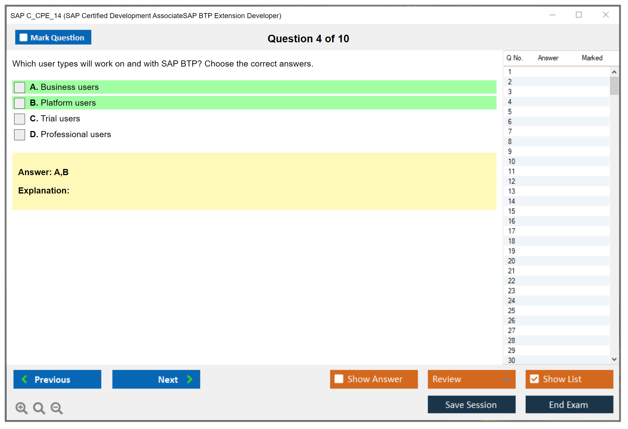 The SAP C_CPE_14 material by DumpsBoss is exceptional! An indispensable resource simplifying SAP Cloud Platform complexities. Whether new or experienced, this guide is a must-have!