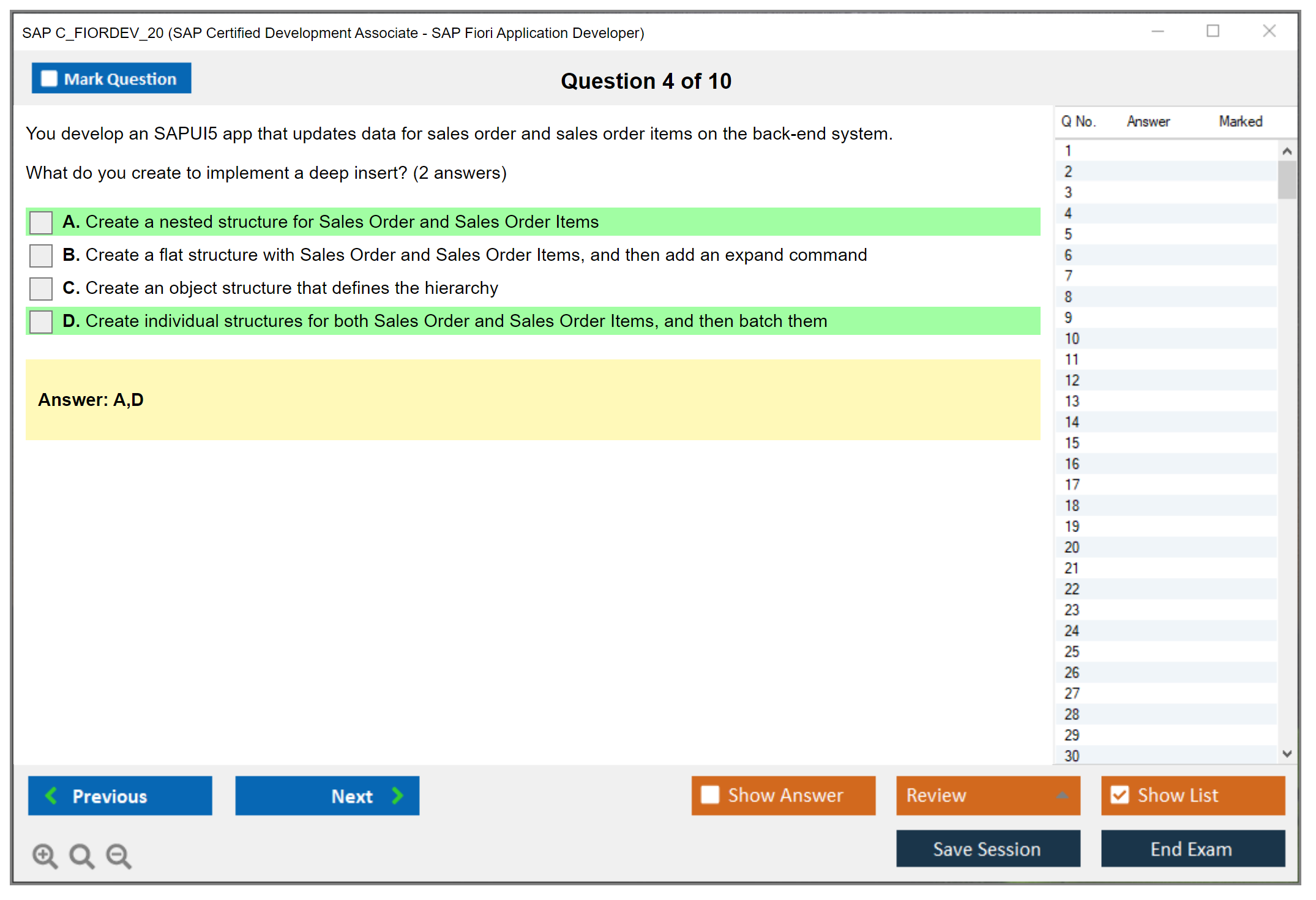 The question format of the SAP C_FIORDEV_20 Exam includes multiple-choice and multiple-response questions.
