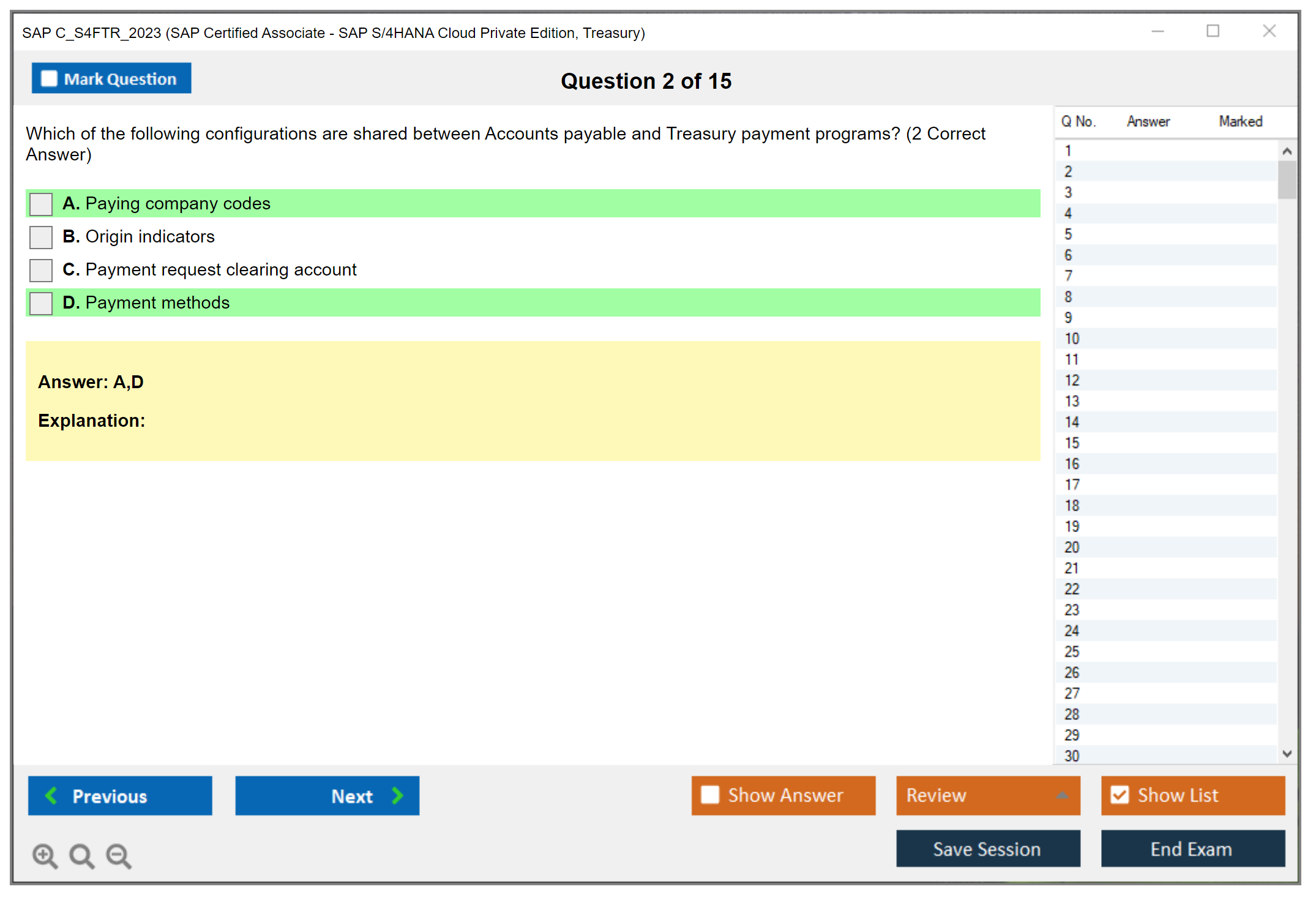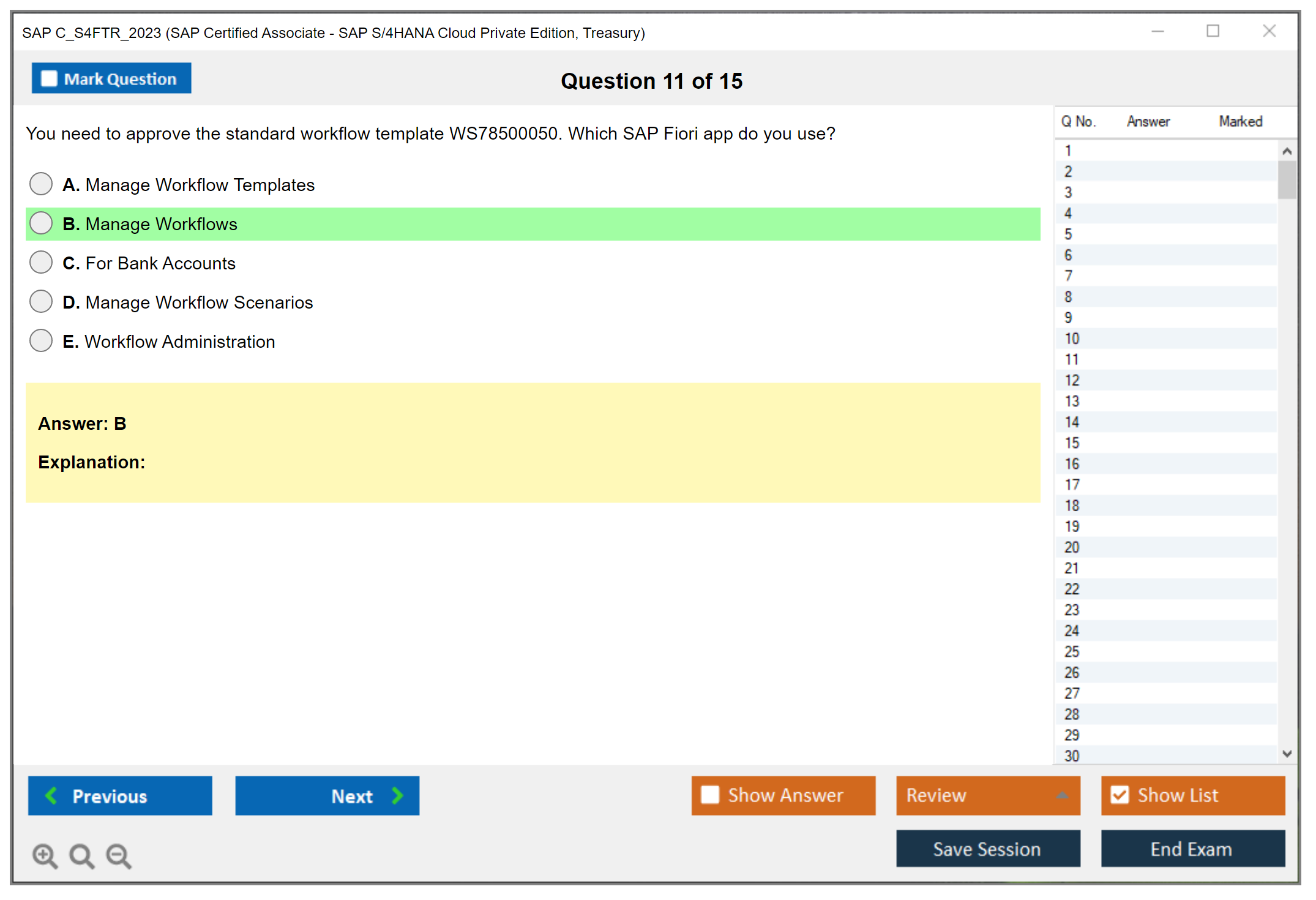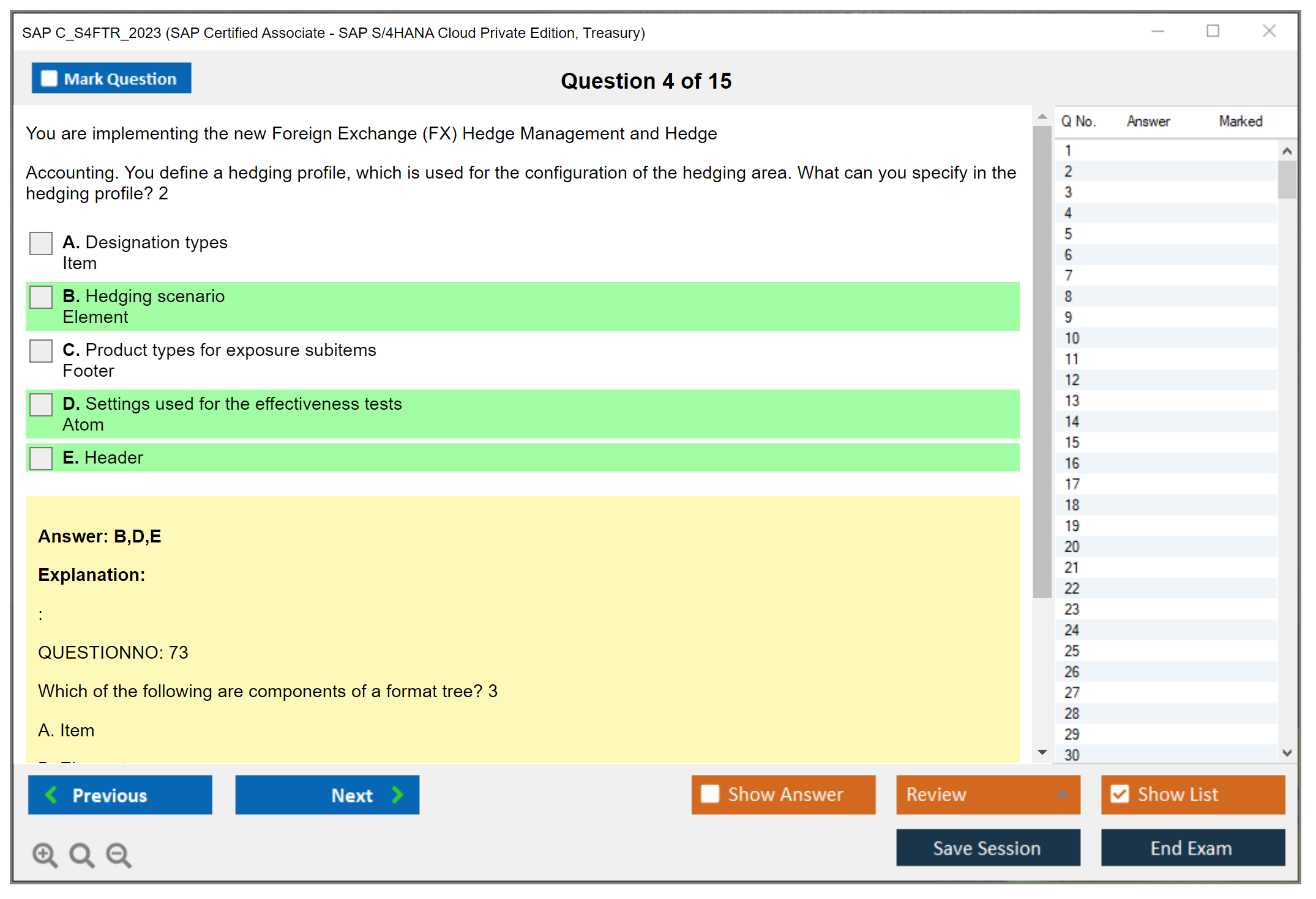 The SAP C_S4FTR_2023 exam is a certification test for the SAP S/4HANA Cloud Private Edition, Treasury module. It assesses the candidate's ability to apply their knowledge in practical scenarios and ensures they are proficient in using SAP's treasury functionalities.