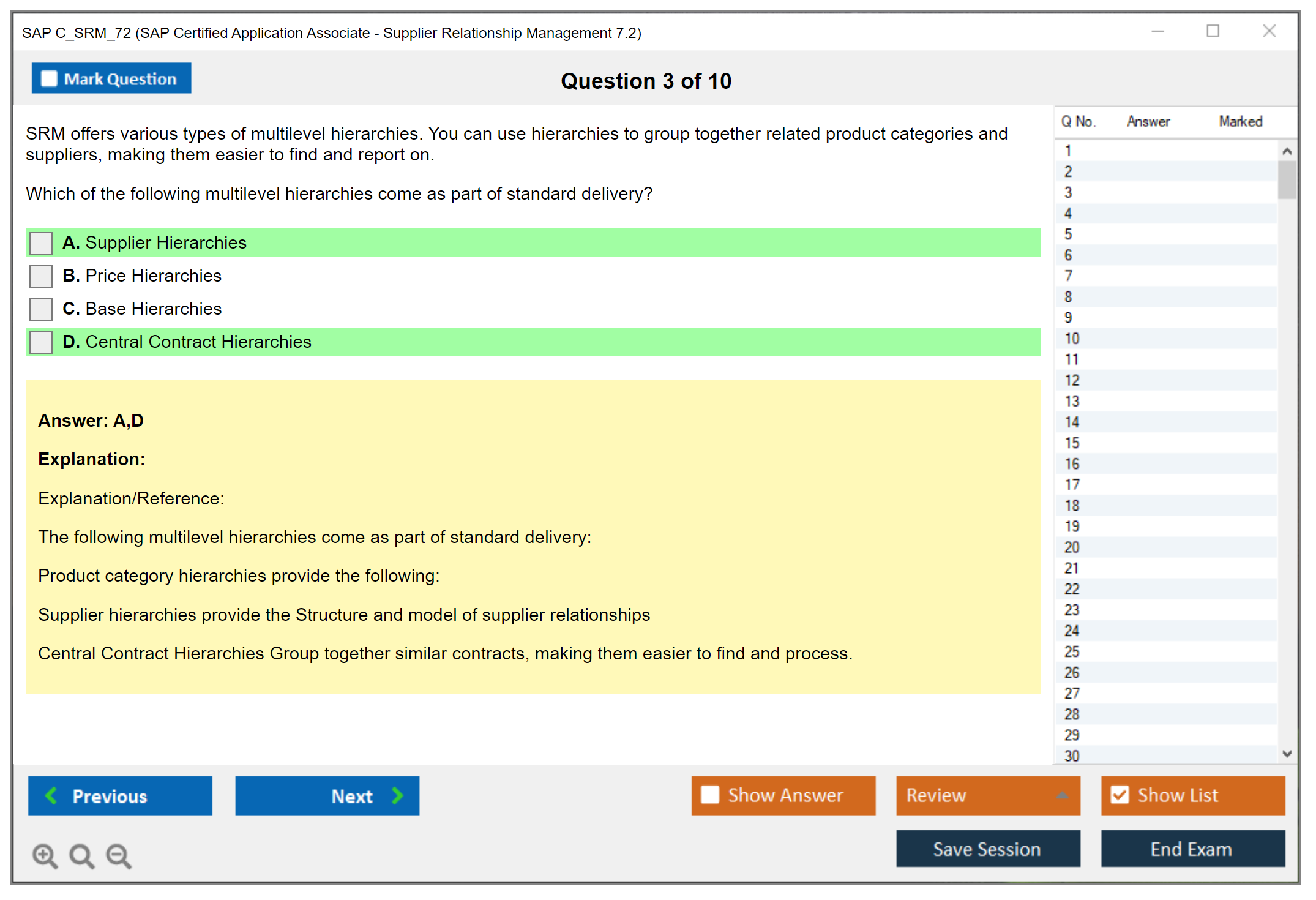 The SAP C_SRM_72 (SAP Certified Application Associate - Supplier Relationship Management 7.2) exam validates that the candidate possesses the fundamental and core knowledge required of the SAP SRM Consultant profile. This certification proves that the candidate has an overall understanding and in-depth technical skills to participate as a member of a project team in a mentored role.