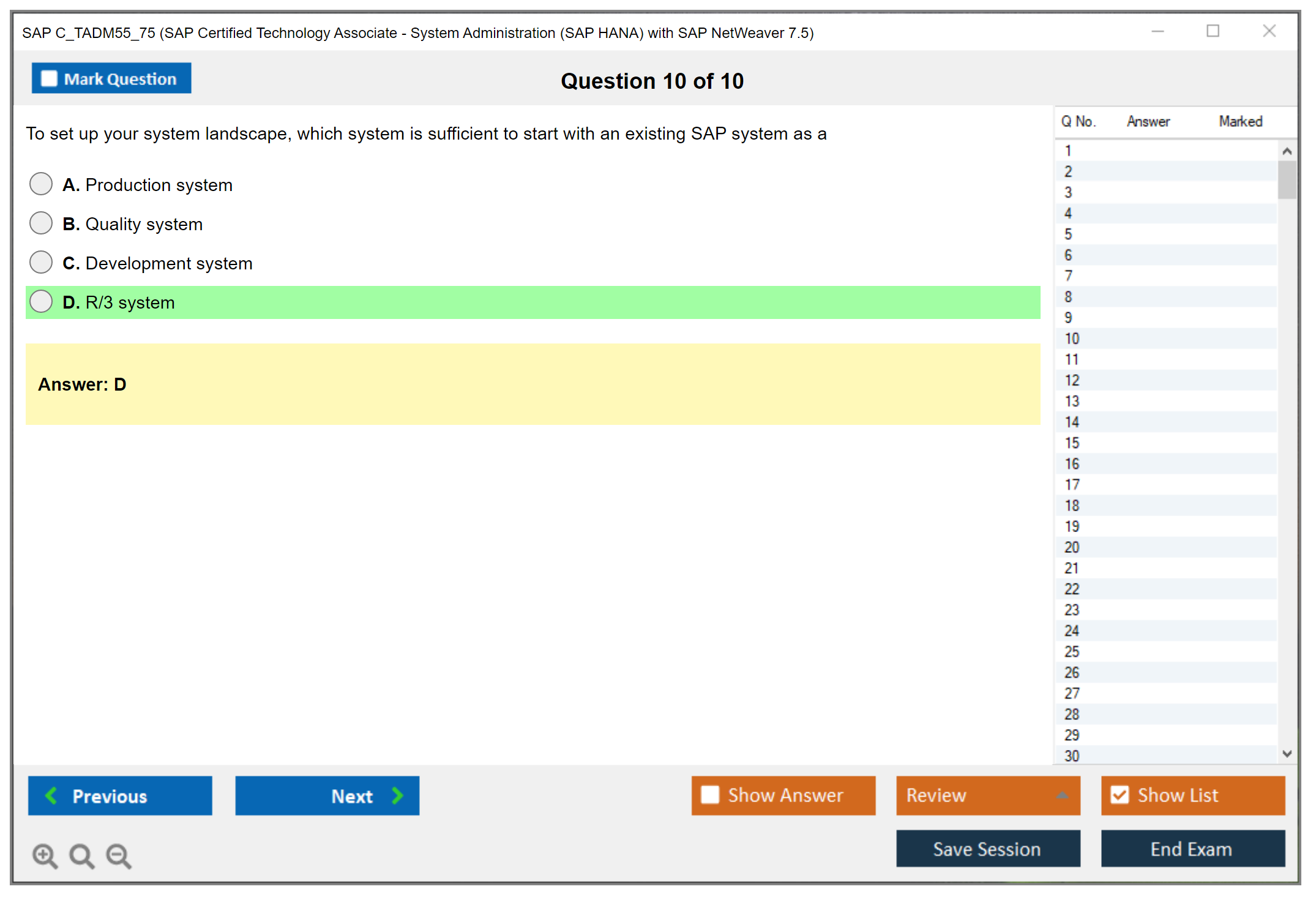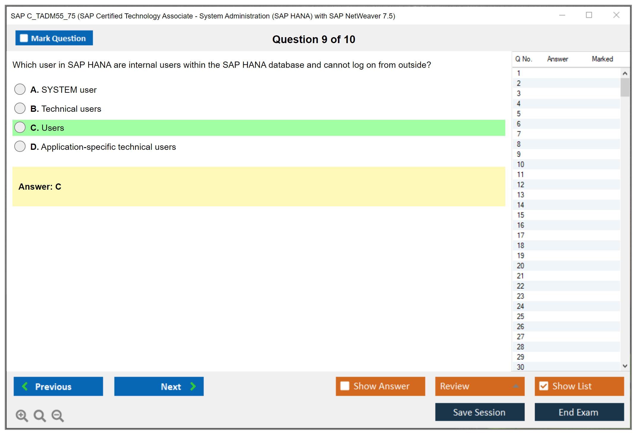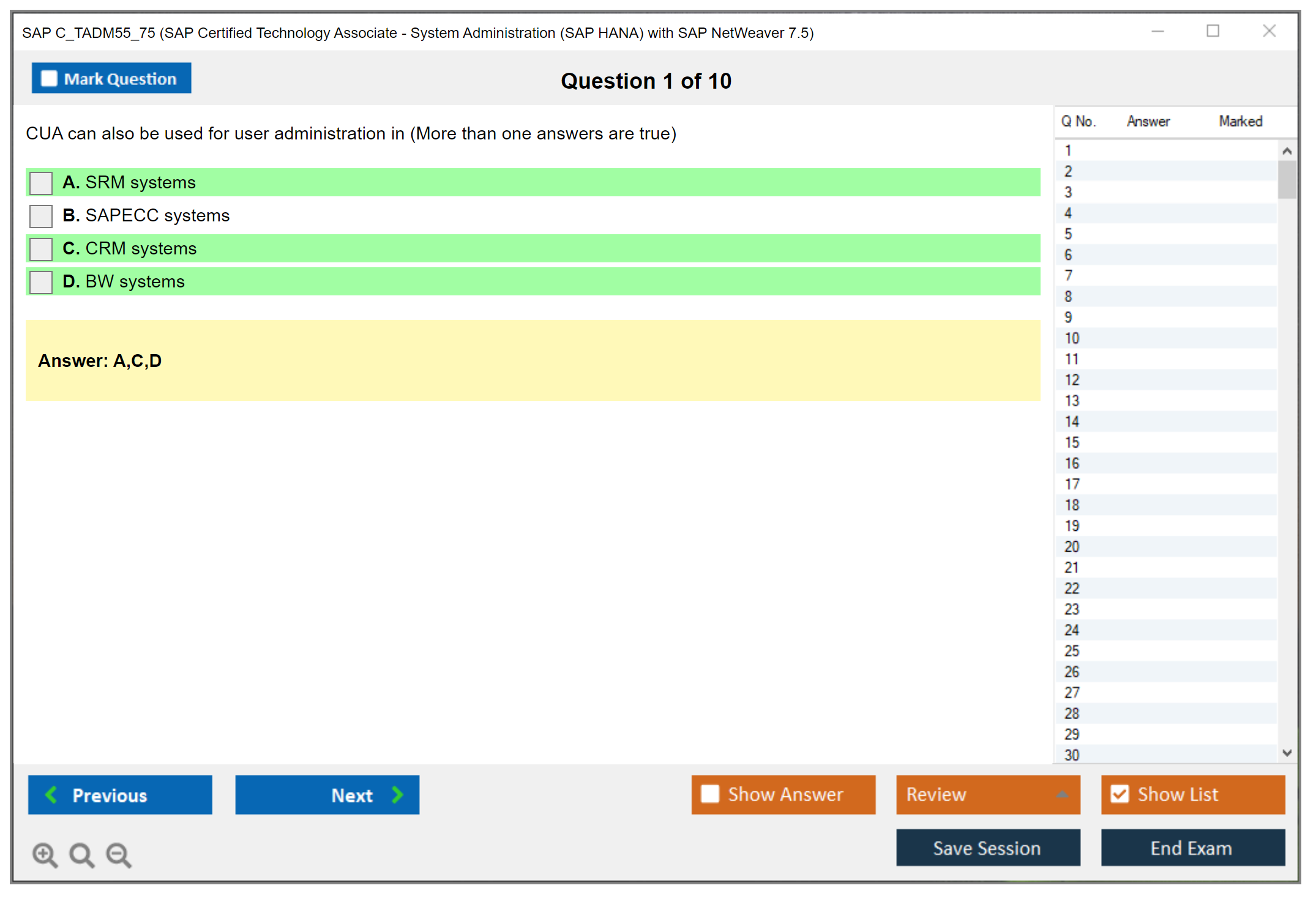 Note: SAP C_TADM55_75 (SAP Certified Technology Associate - System Administration (SAP HANA) with SAP NetWeaver 7.5) will not receive any new updates.