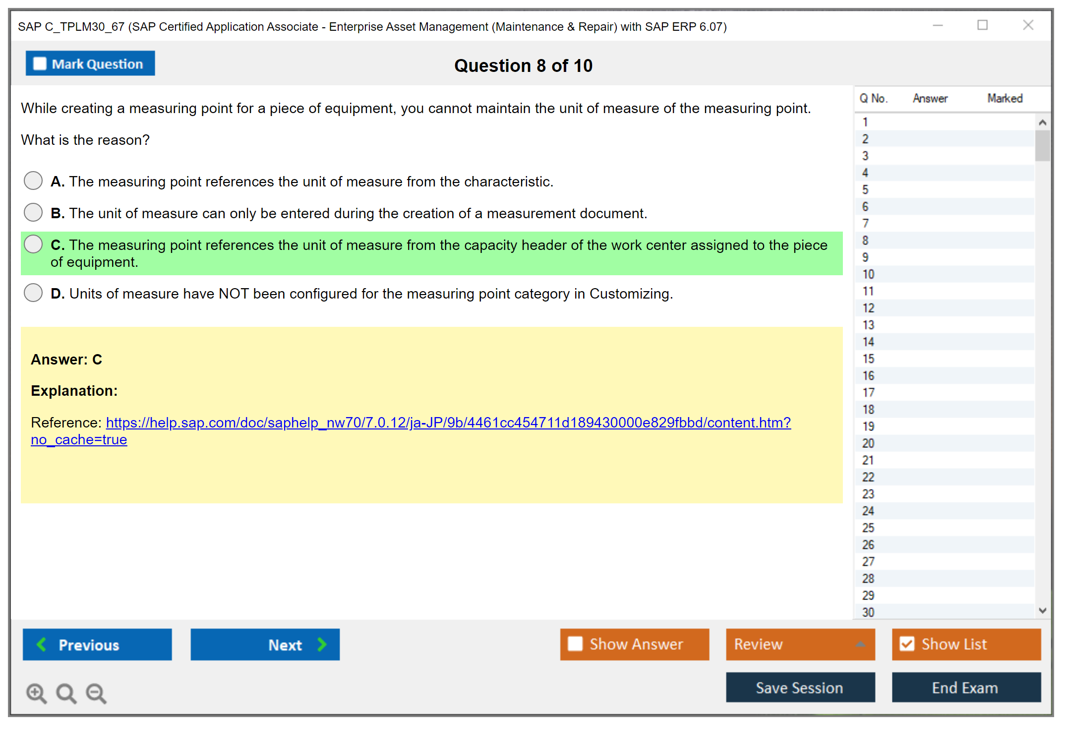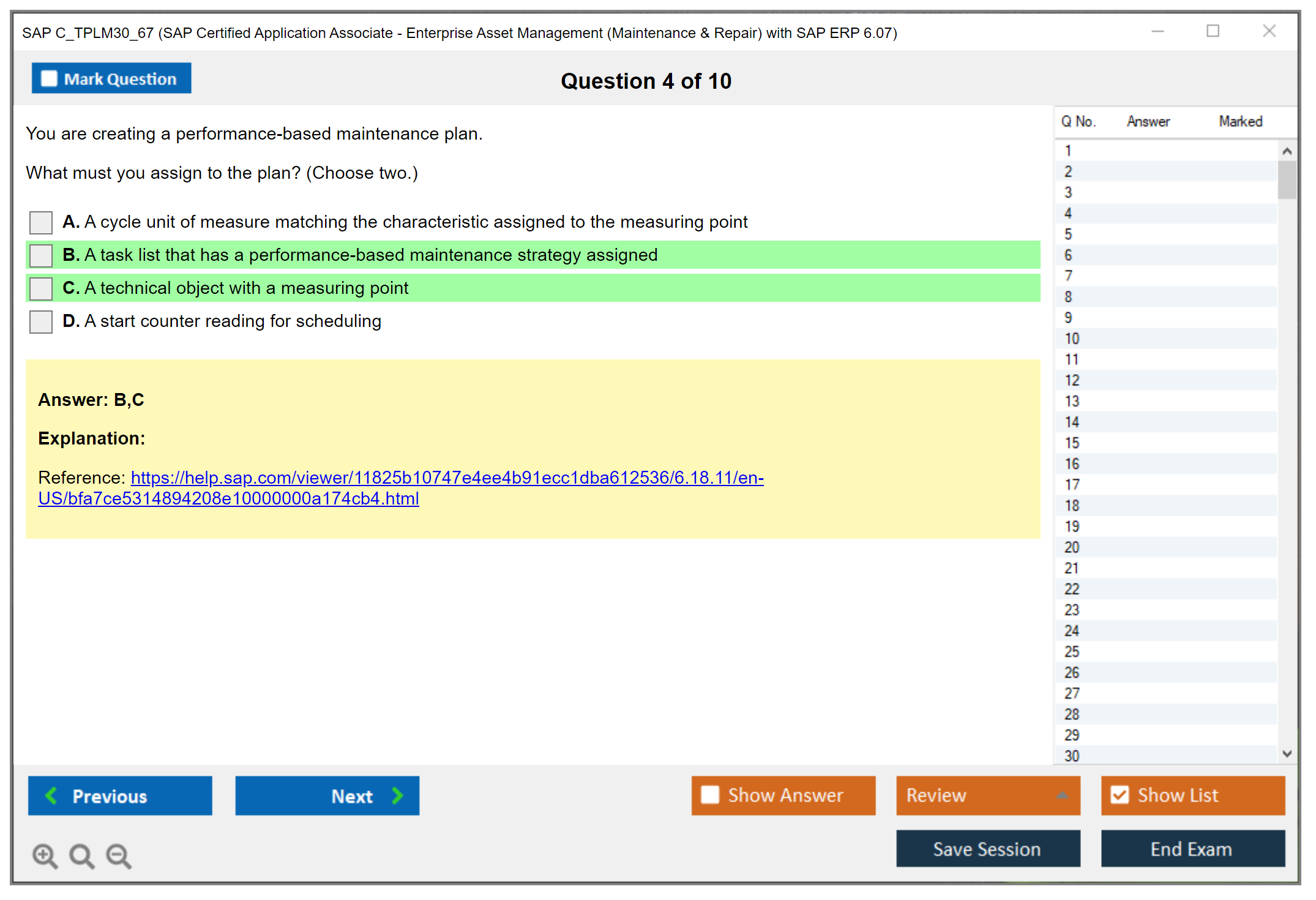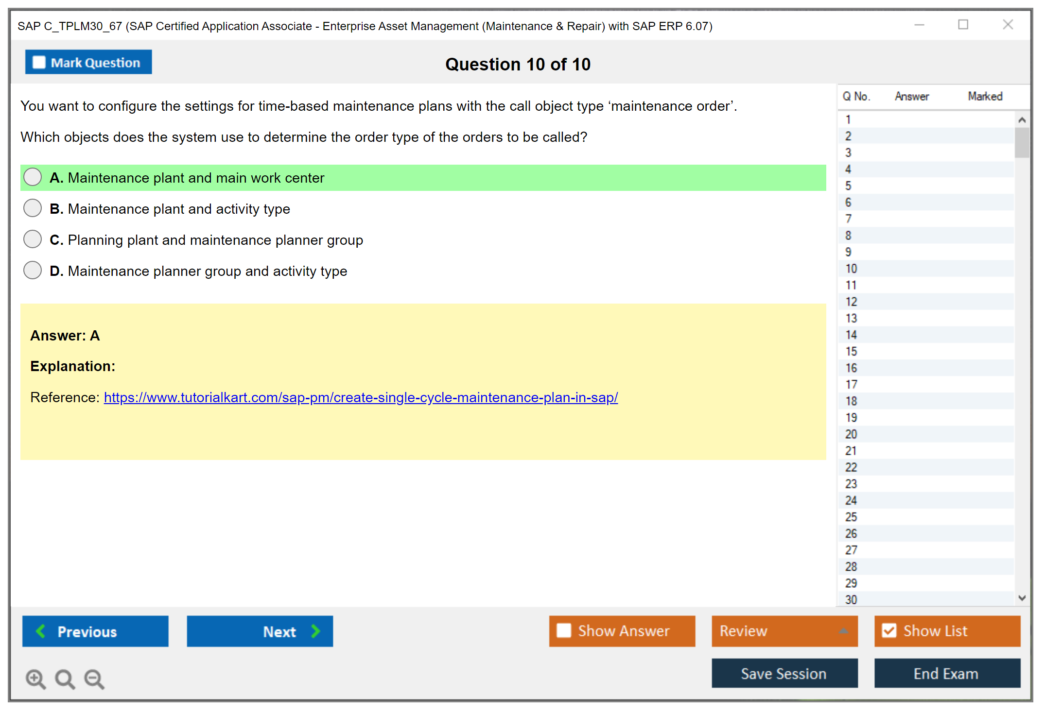 C_TPLM30_67 (SAP Certified Associate - SAP Maintenance & Repair with ERP 6.0 EHP7) PDF + Test Engine