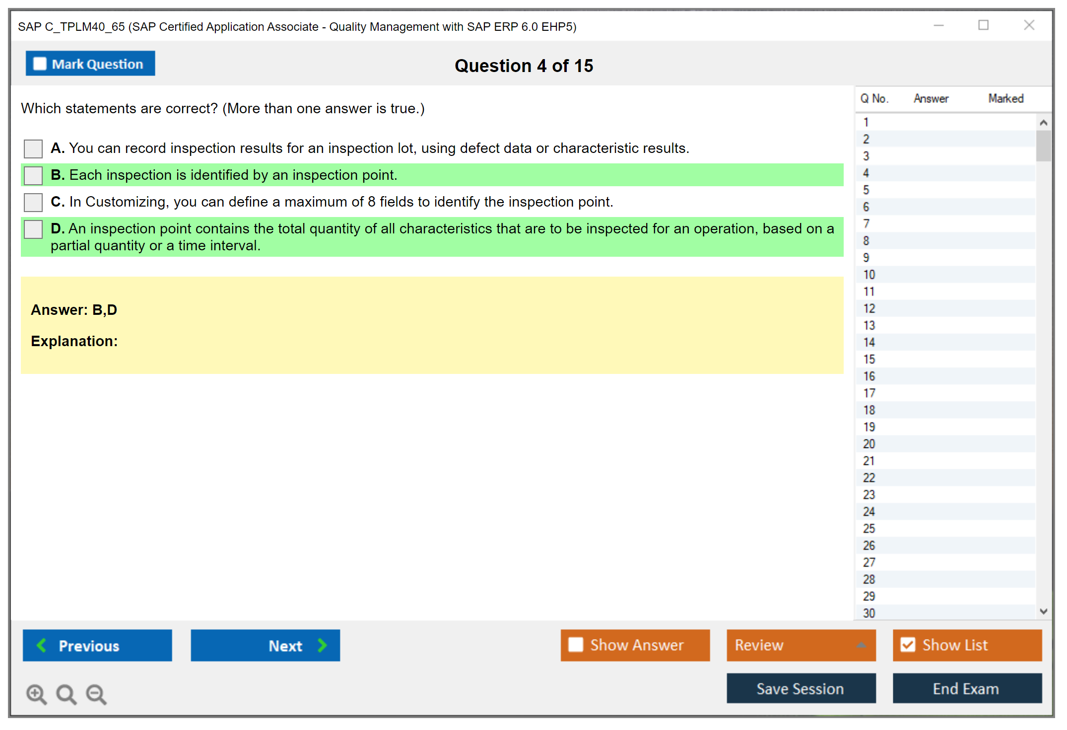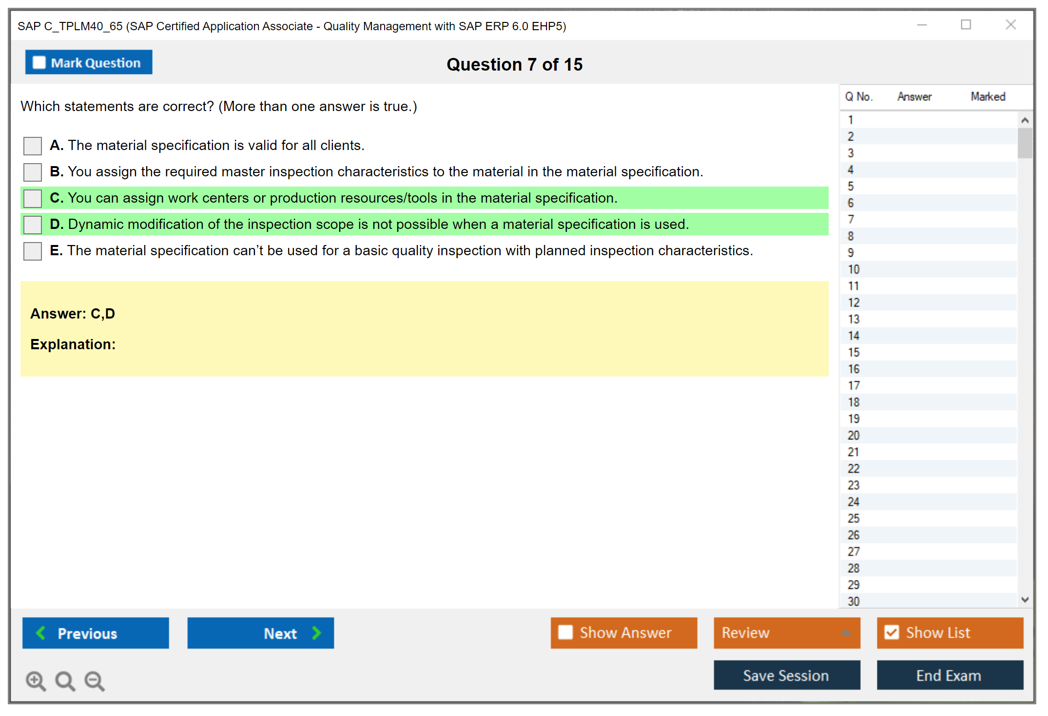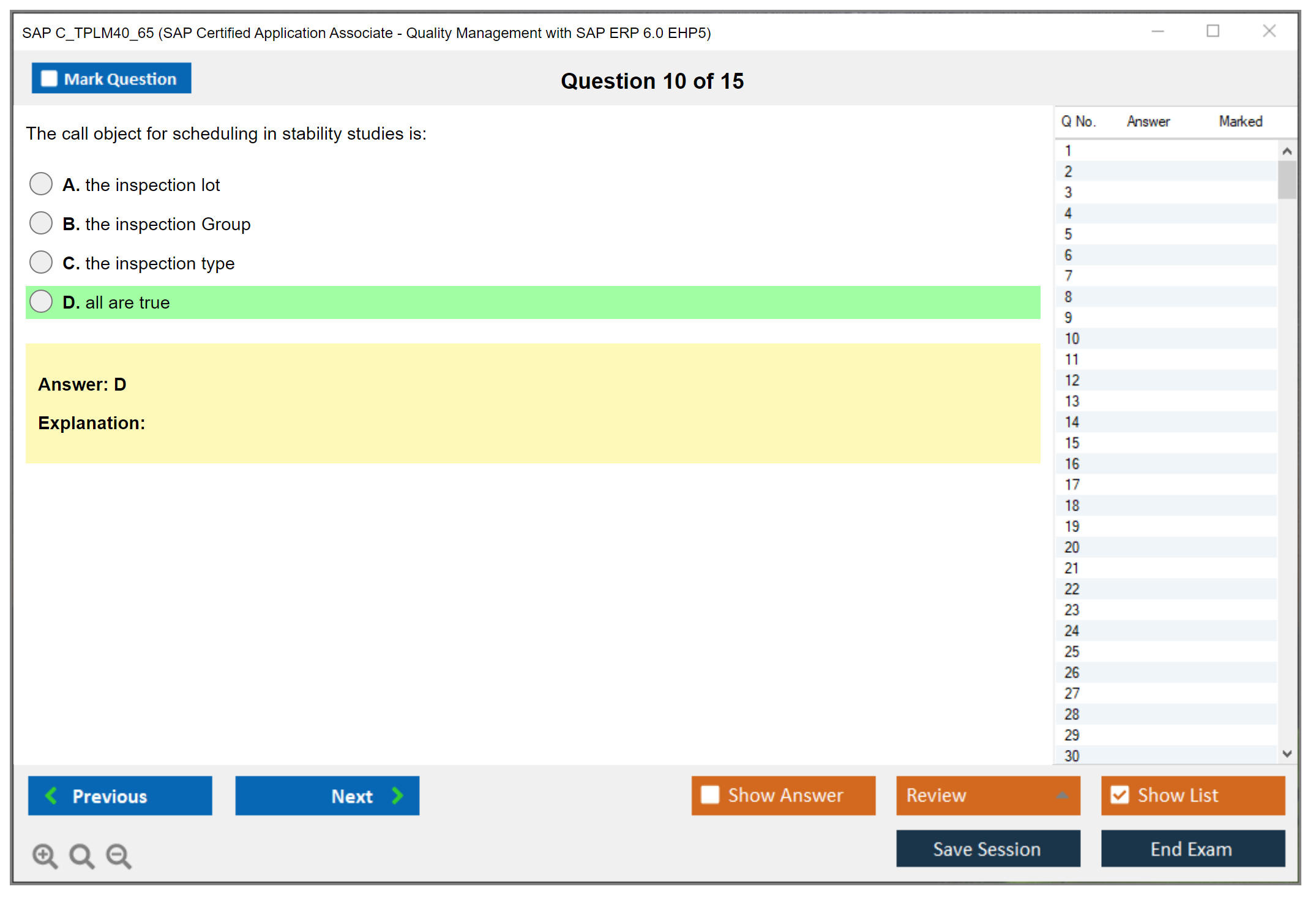 The SAP C_TPLM40_65 exam is designed to validate the knowledge and skills of individuals in the area of Quality Management with SAP ERP 6.0 EHP5. It is aimed at those who have gained experience through hands-on use and have a fundamental understanding of the subject matter.