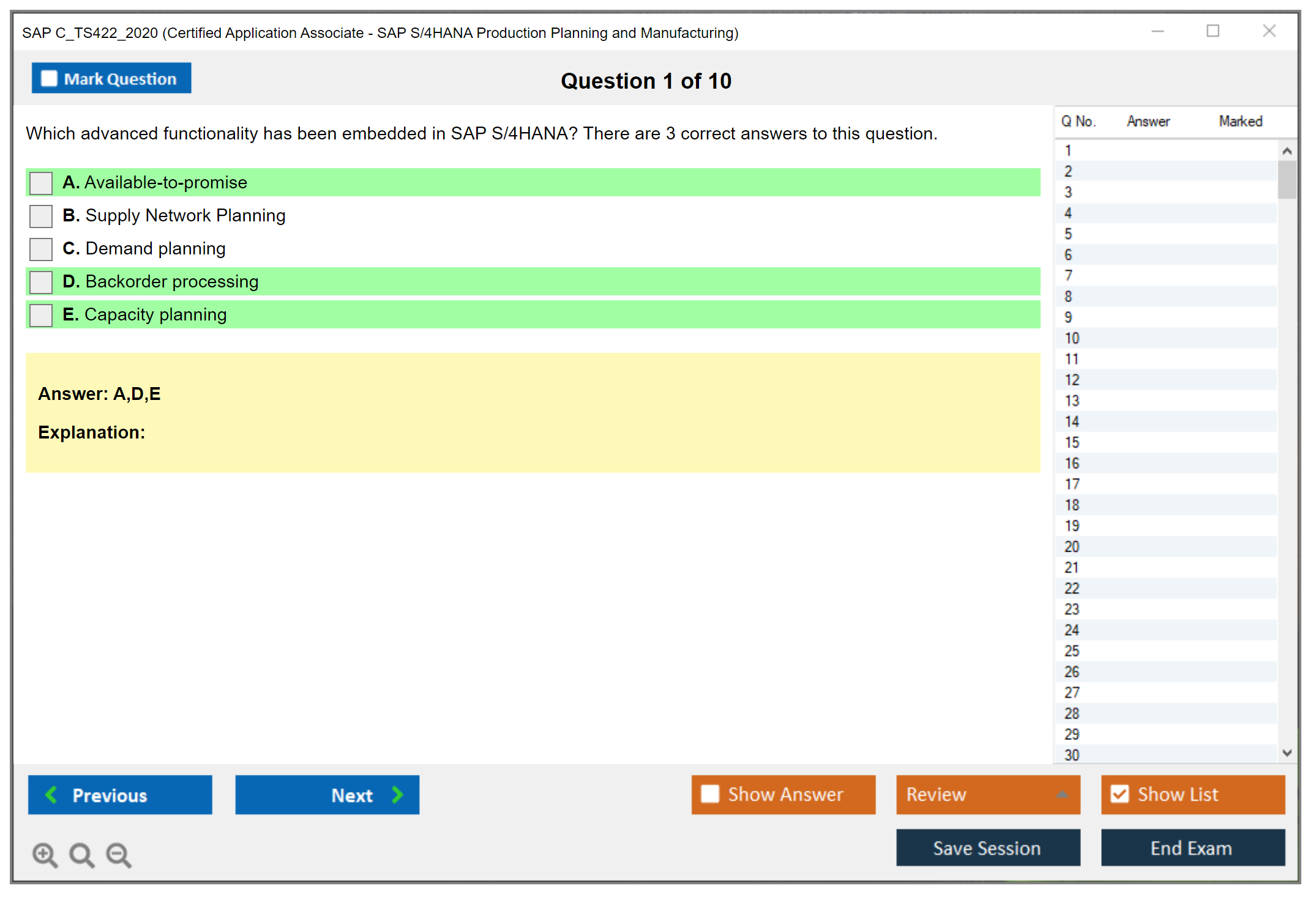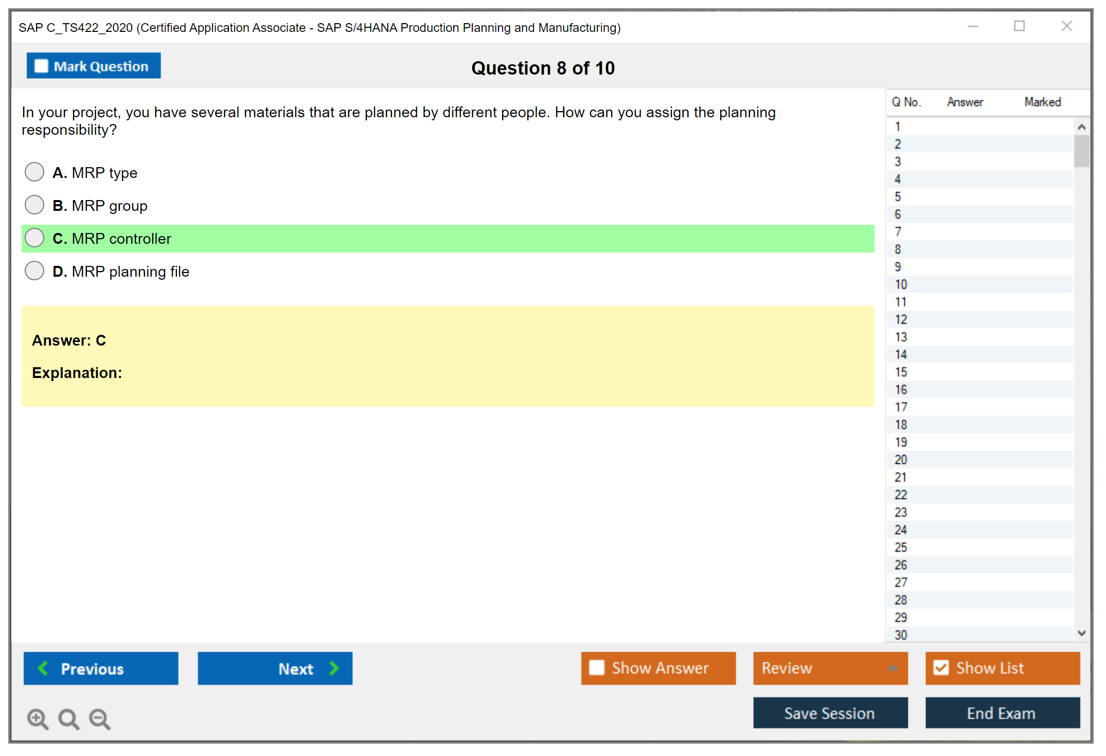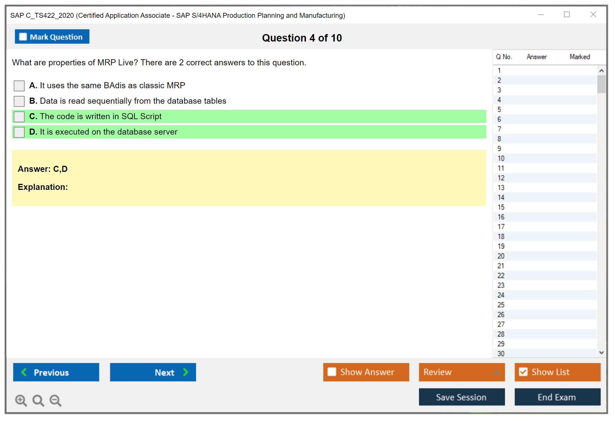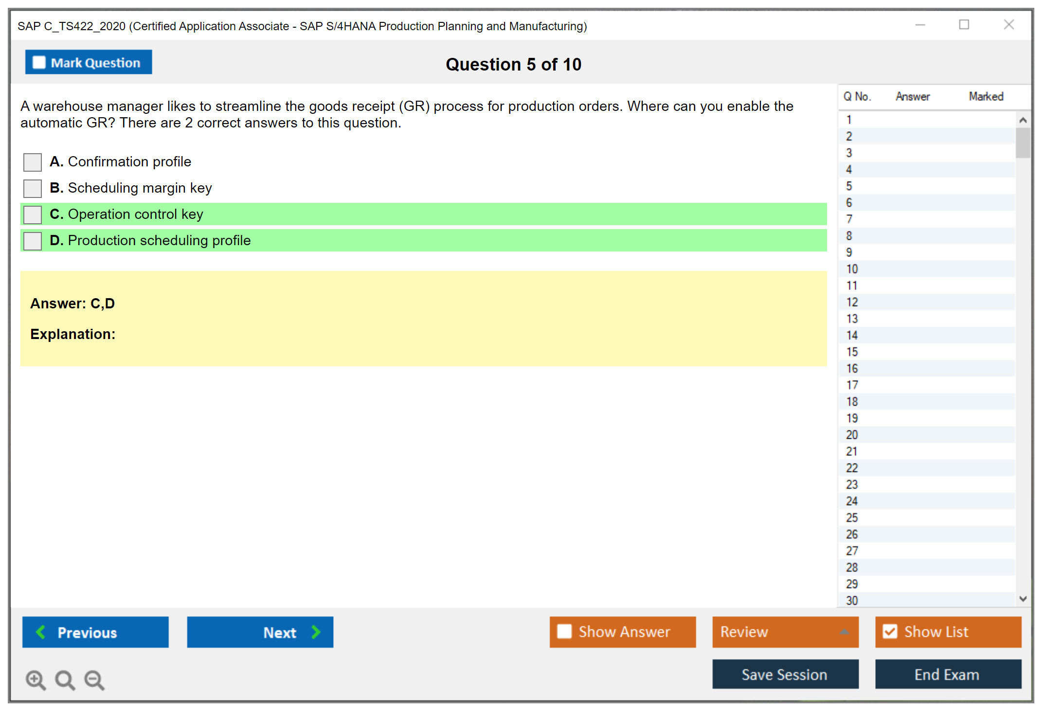 C_TS422_2020 (Certified Application Associate - SAP S/4HANA Production Planning and Manufacturing) PDF + Test Engine