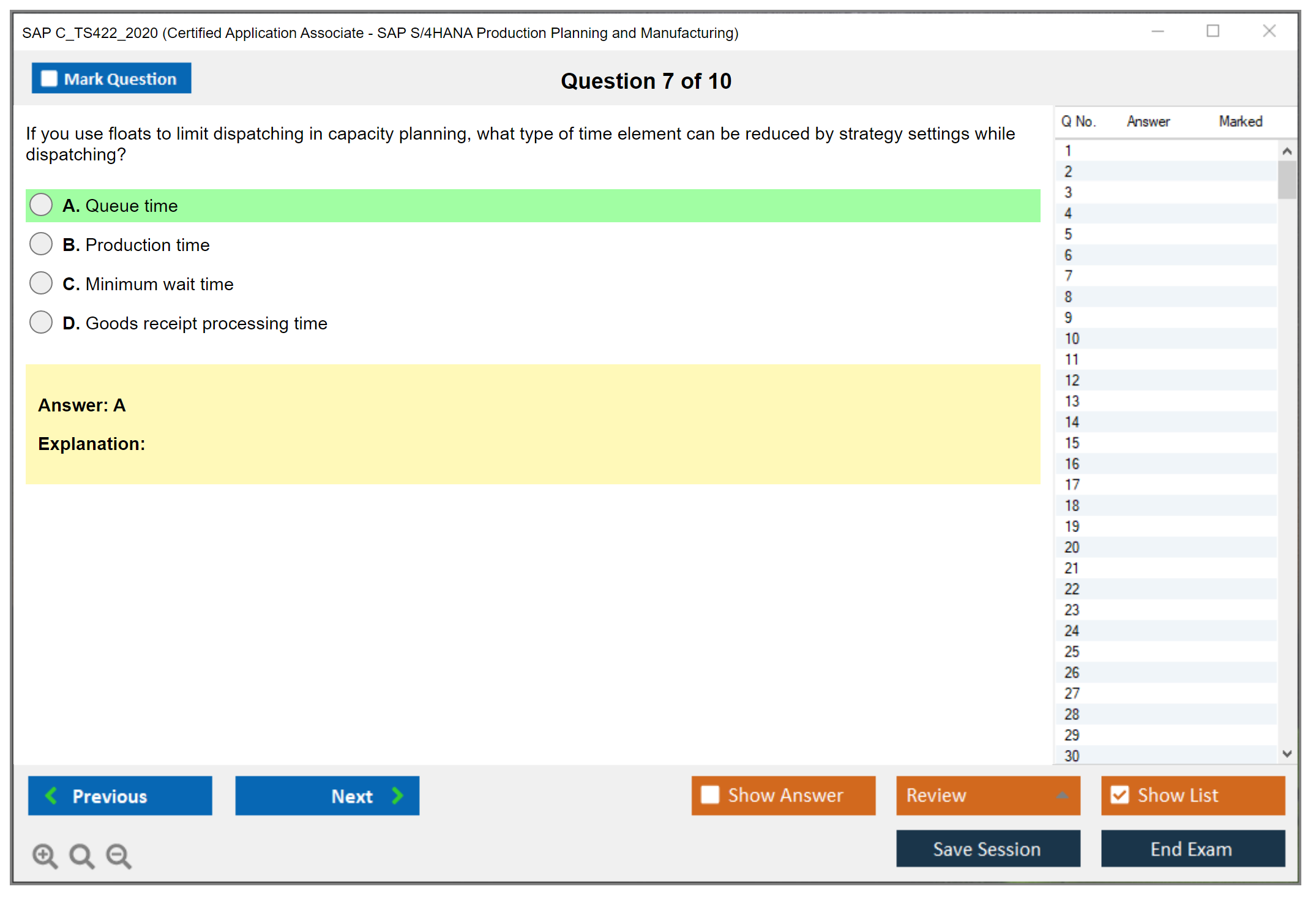 SAP C_TS422_2020 (Certified Application Associate - SAP S/4HANA Production Planning and Manufacturing) is a certification exam that verifies the candidate's knowledge in the area of SAP S/4HANA Production Planning and Manufacturing. This certification validates that the candidate has a fundamental understanding and proven skills in SAP S/4HANA Production Planning and Manufacturing.