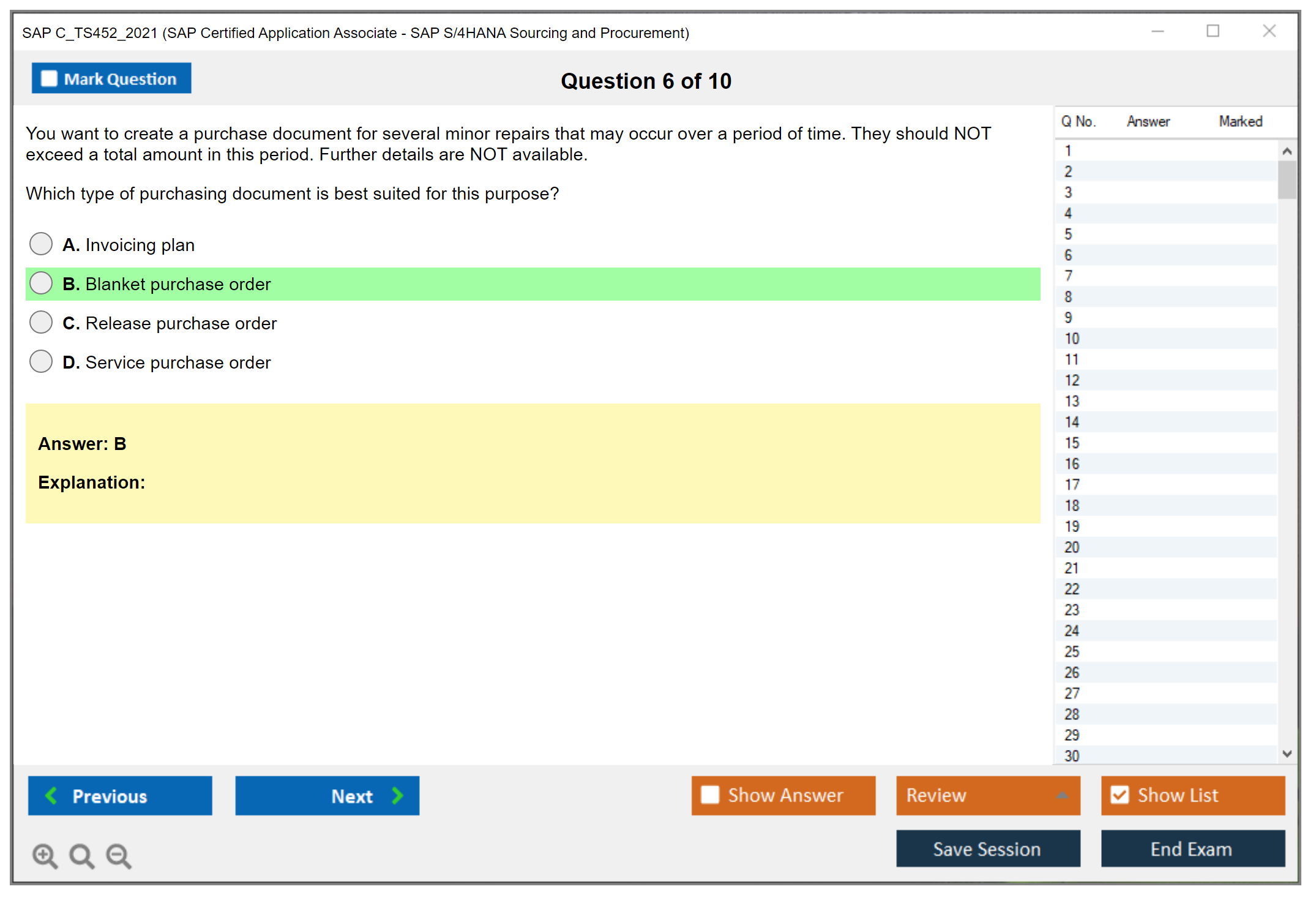 The SAP C_TS452_2021 exam is intended to certify that the candidate has the fundamental and core knowledge required to work as an SAP S/4HANA Sourcing and Procurement consultant.