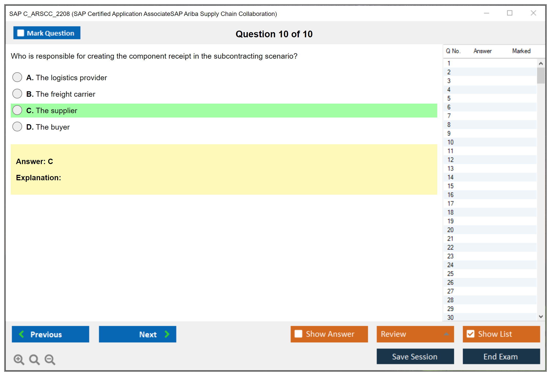 The SAP C_ARSCC_2208 exam is a certification test for SAP Ariba Supply Chain Collaboration. It assesses the candidate's understanding and skills in implementing and managing SAP Ariba solutions to facilitate supply chain collaboration.