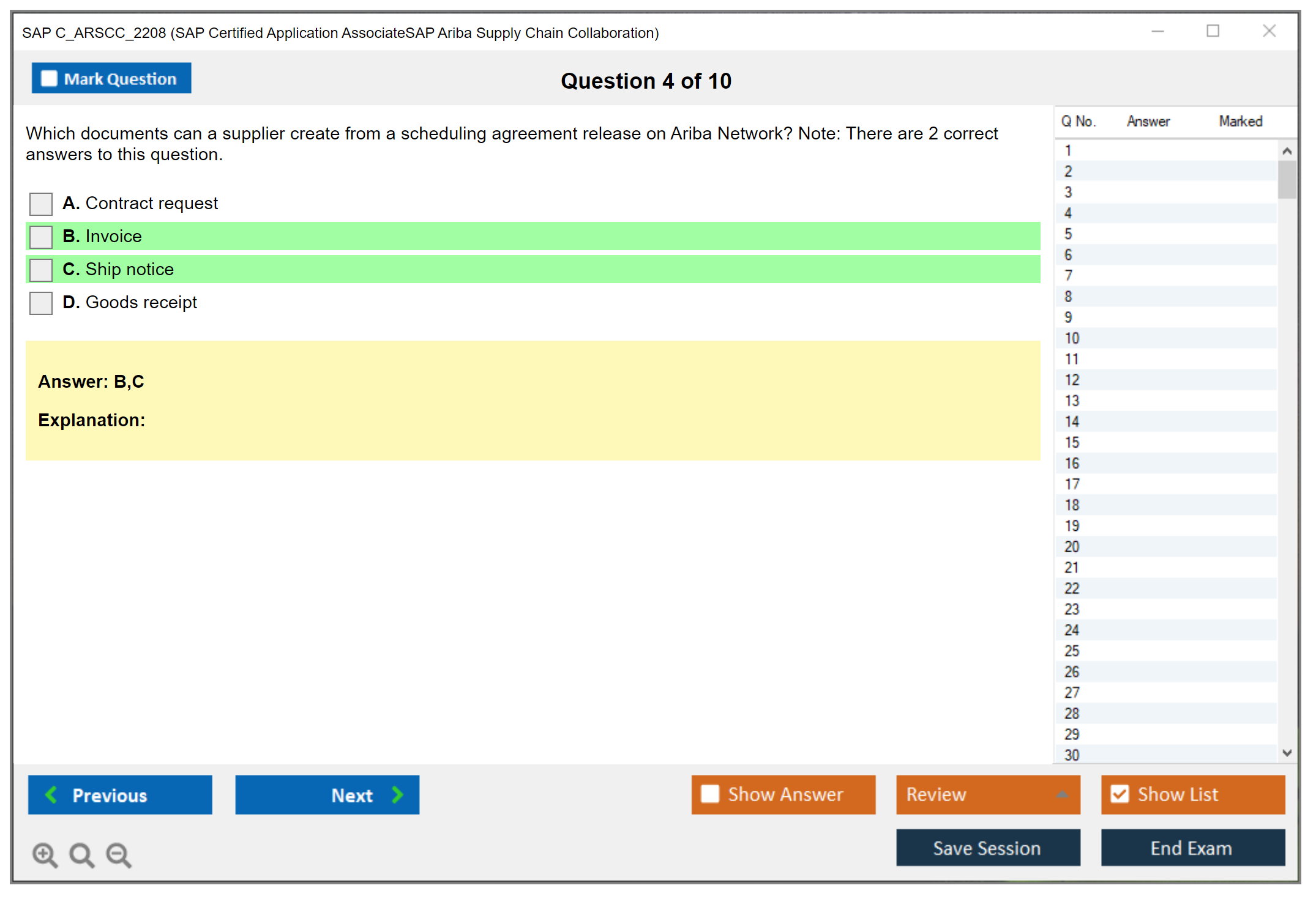 Note: SAP C_ARSCC_2208 (SAP Certified Application AssociateSAP Ariba Supply Chain Collaboration) will not receive any new updates.