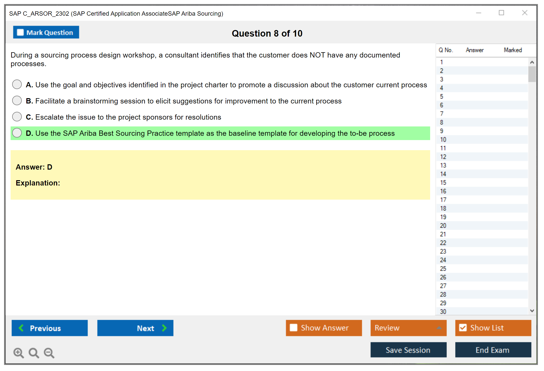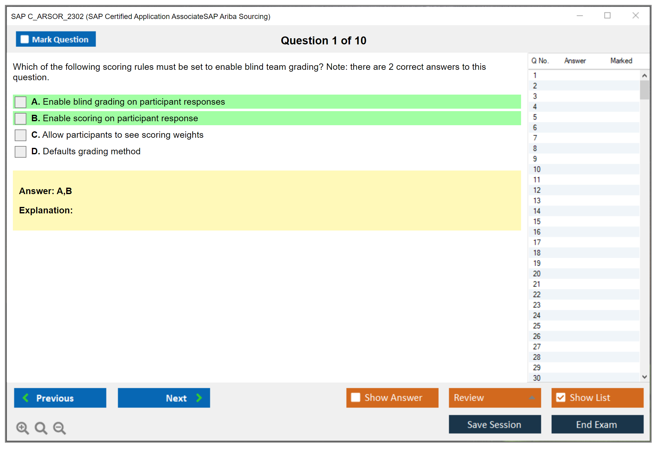 The SAP C_ARSOR_2302 exam is designed to test the knowledge and skills of candidates in the area of SAP Ariba Sourcing. It ensures that the candidate can contribute effectively to the implementation and management of SAP Ariba Sourcing solutions.