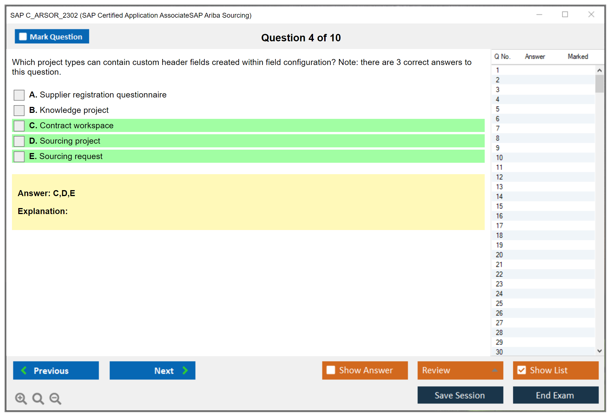 The SAP C_ARSOR_2302 (SAP Certified Application Associate - SAP Ariba Sourcing) exam validates that the candidate possesses the fundamental and core knowledge required of the SAP Ariba Sourcing Associate Application Consultant profile. This certification proves that the candidate has an overall understanding and in-depth technical skills to participate as a member of a project team in a mentored role.