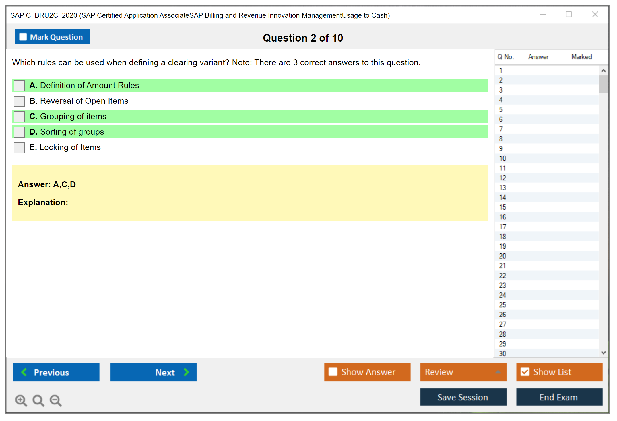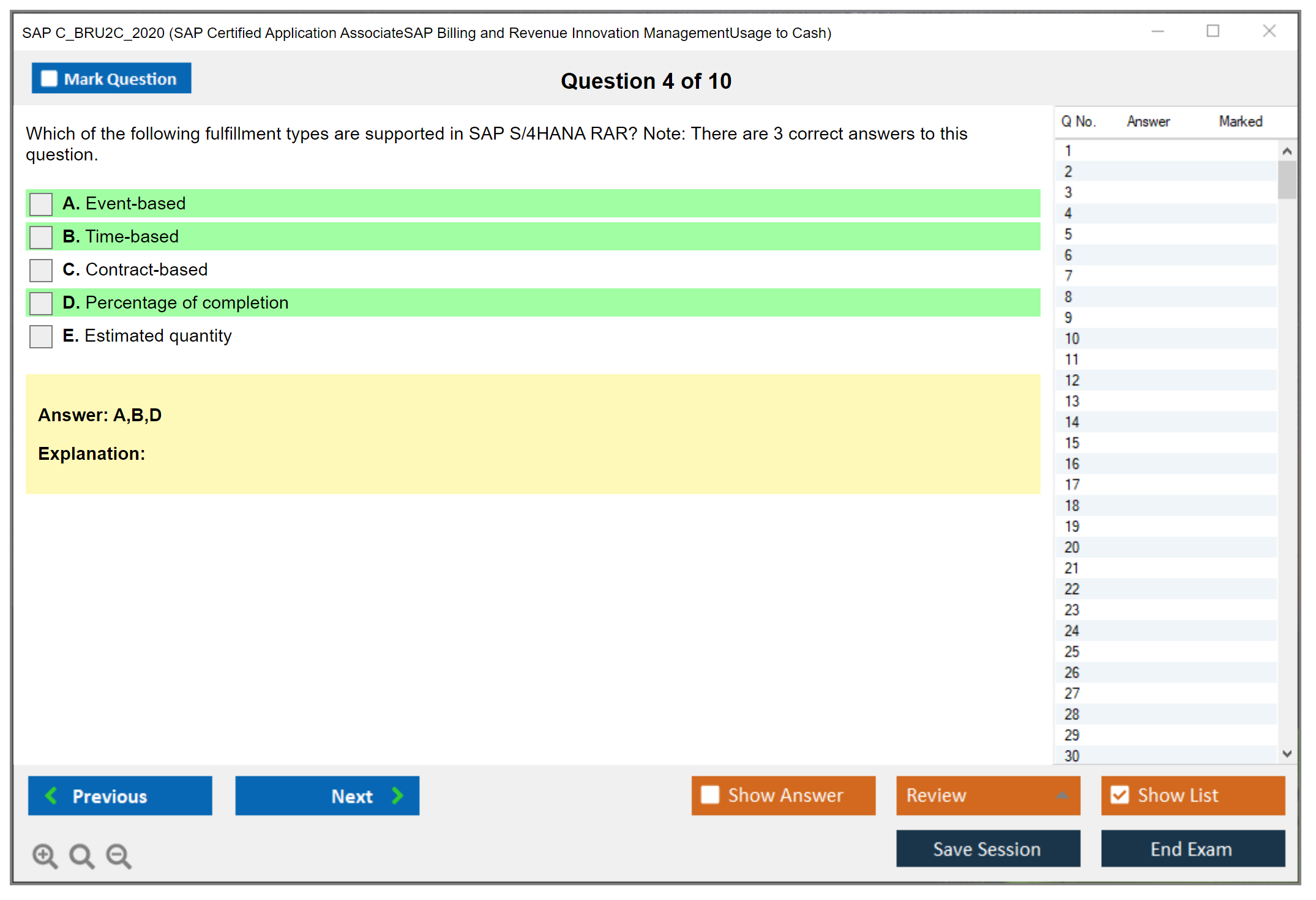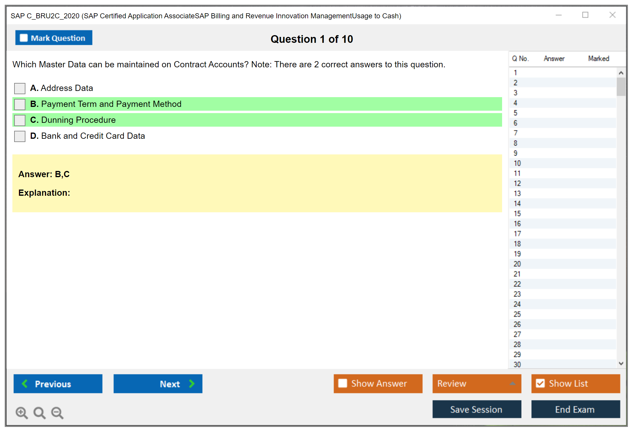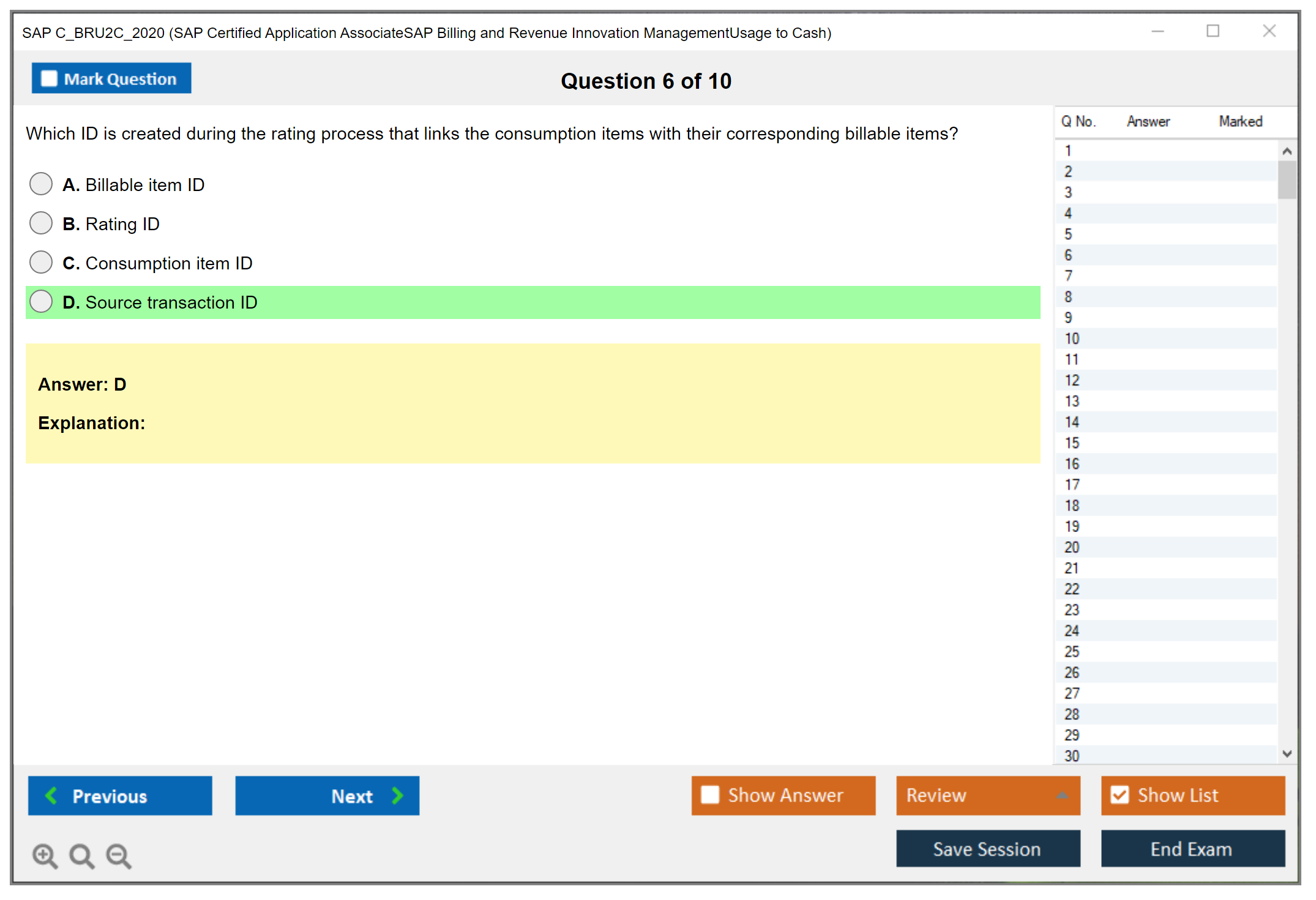 The SAP C_BRU2C_2020 exam is a certification exam for individuals seeking to demonstrate their expertise in SAP Billing and Revenue Innovation Management - Usage to Cash. It covers various aspects of the implementation, configuration, and management of SAP BRIM solutions.