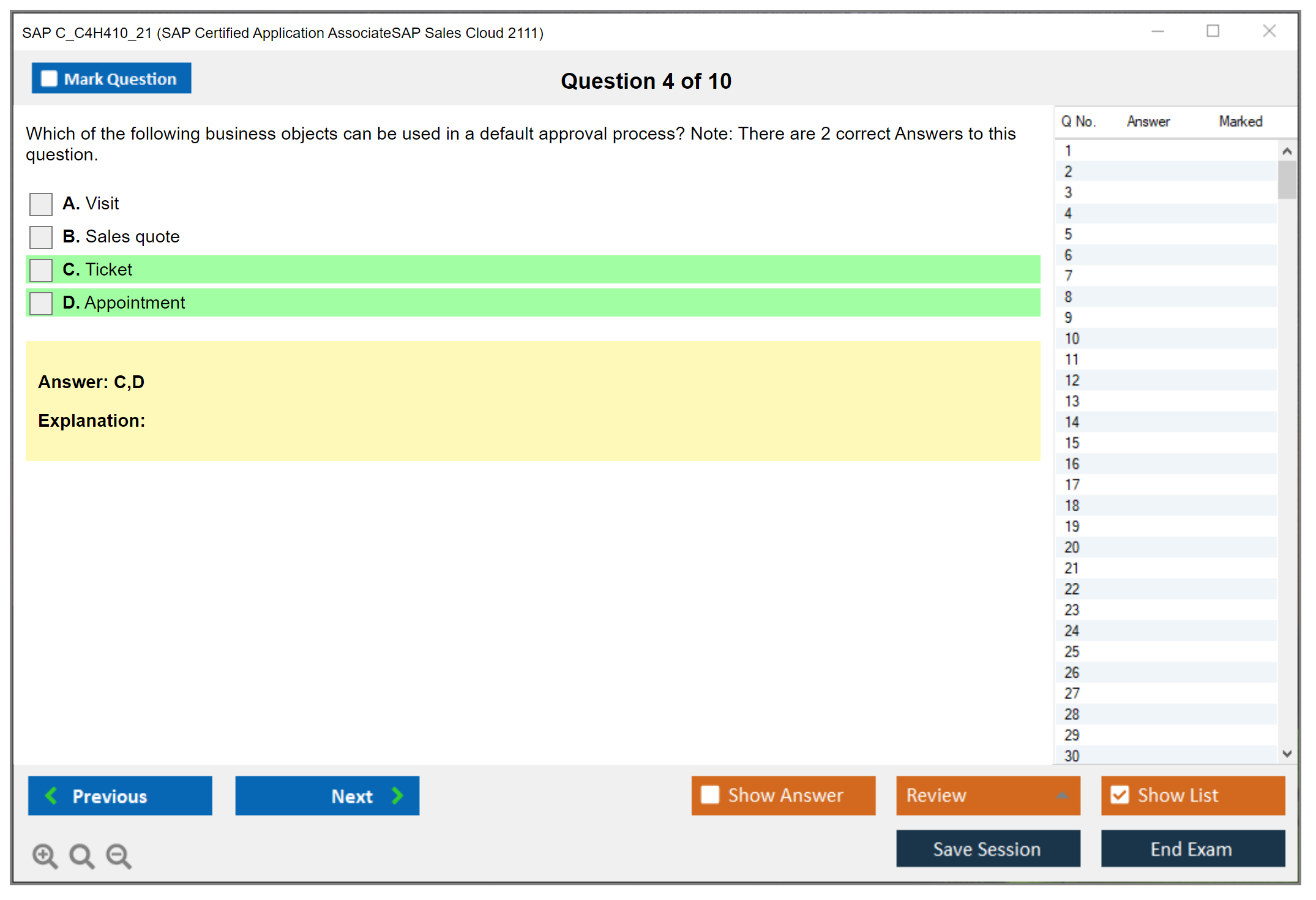 The SAP C_C4H410_21 exam is a certification test for individuals aiming to become certified implementation consultants for SAP Sales Cloud. It assesses the candidate's ability to apply their knowledge in practical scenarios.