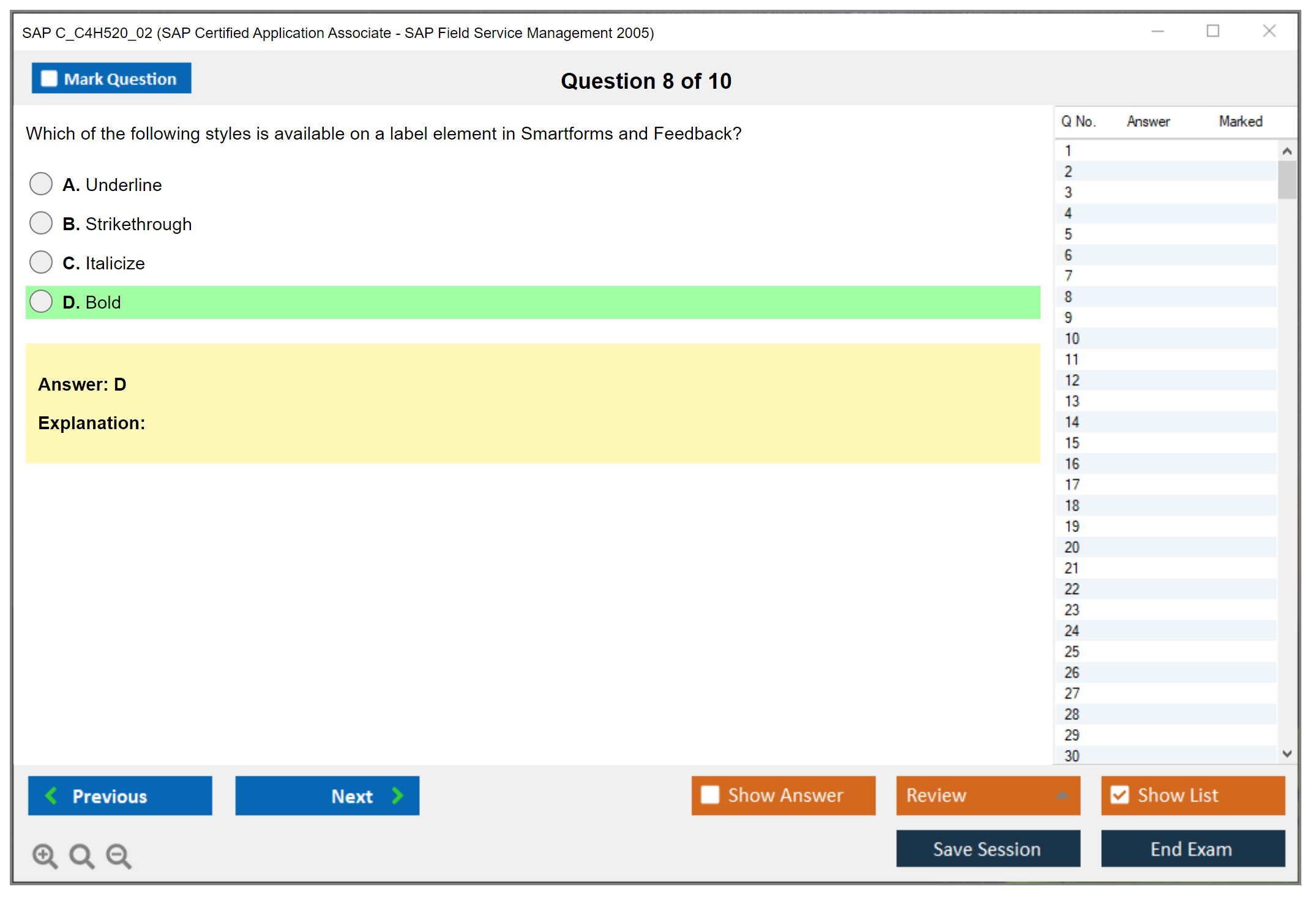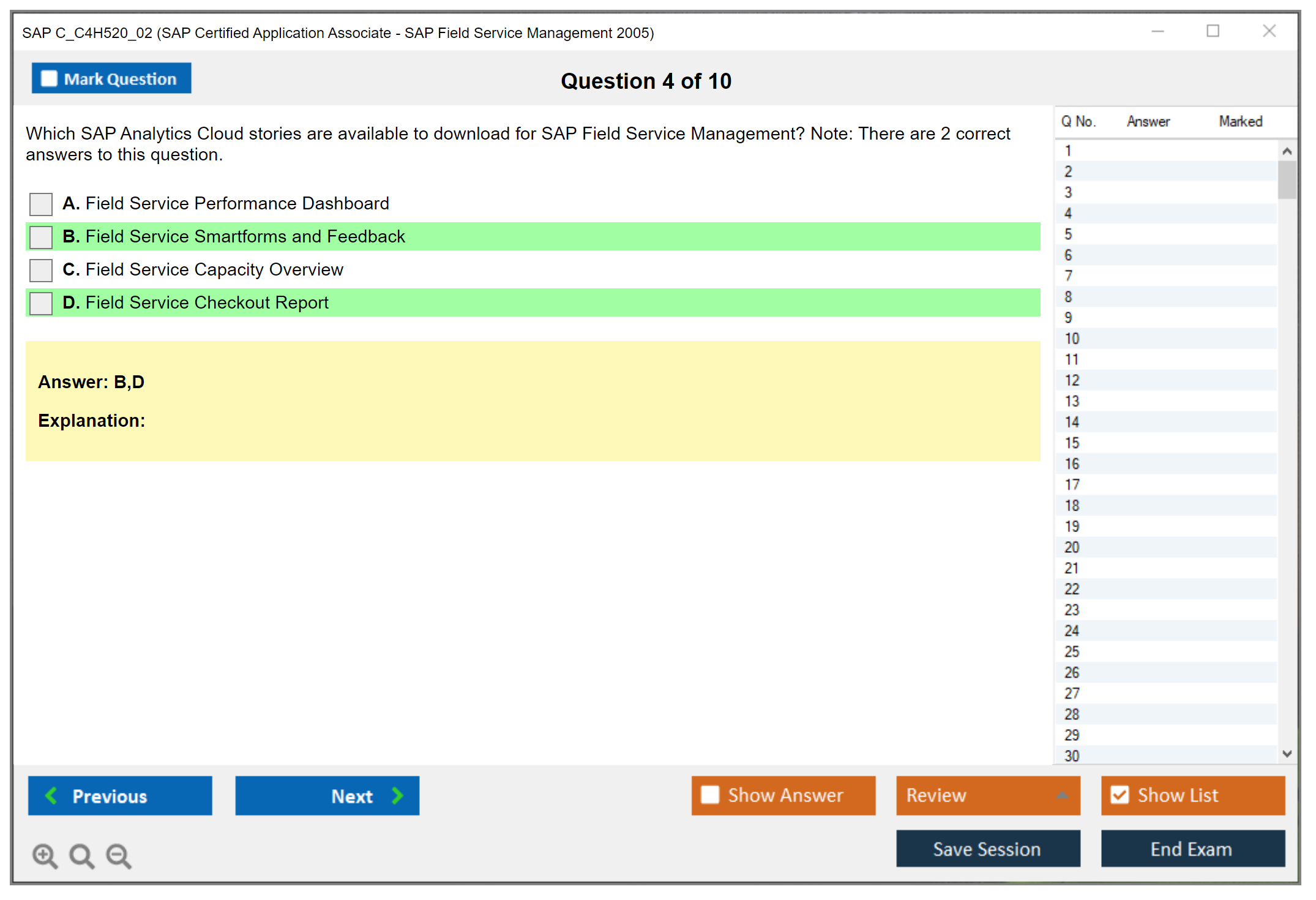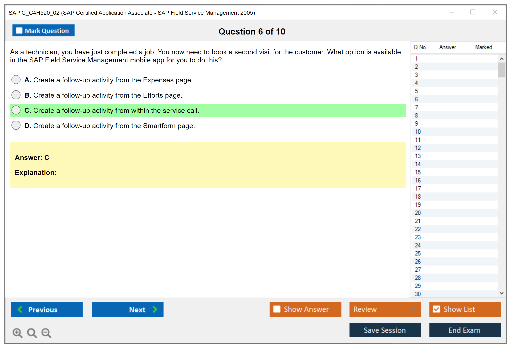 The SAP C_C4H520_02 (SAP Certified Associate - SAP Field Service Management 2005) exam is designed to validate the candidate's knowledge and skills in the area of SAP Field Service Management. This certification proves that the candidate has a fundamental understanding and proficiency in the SAP Field Service Management solution and can apply this knowledge practically in projects.
