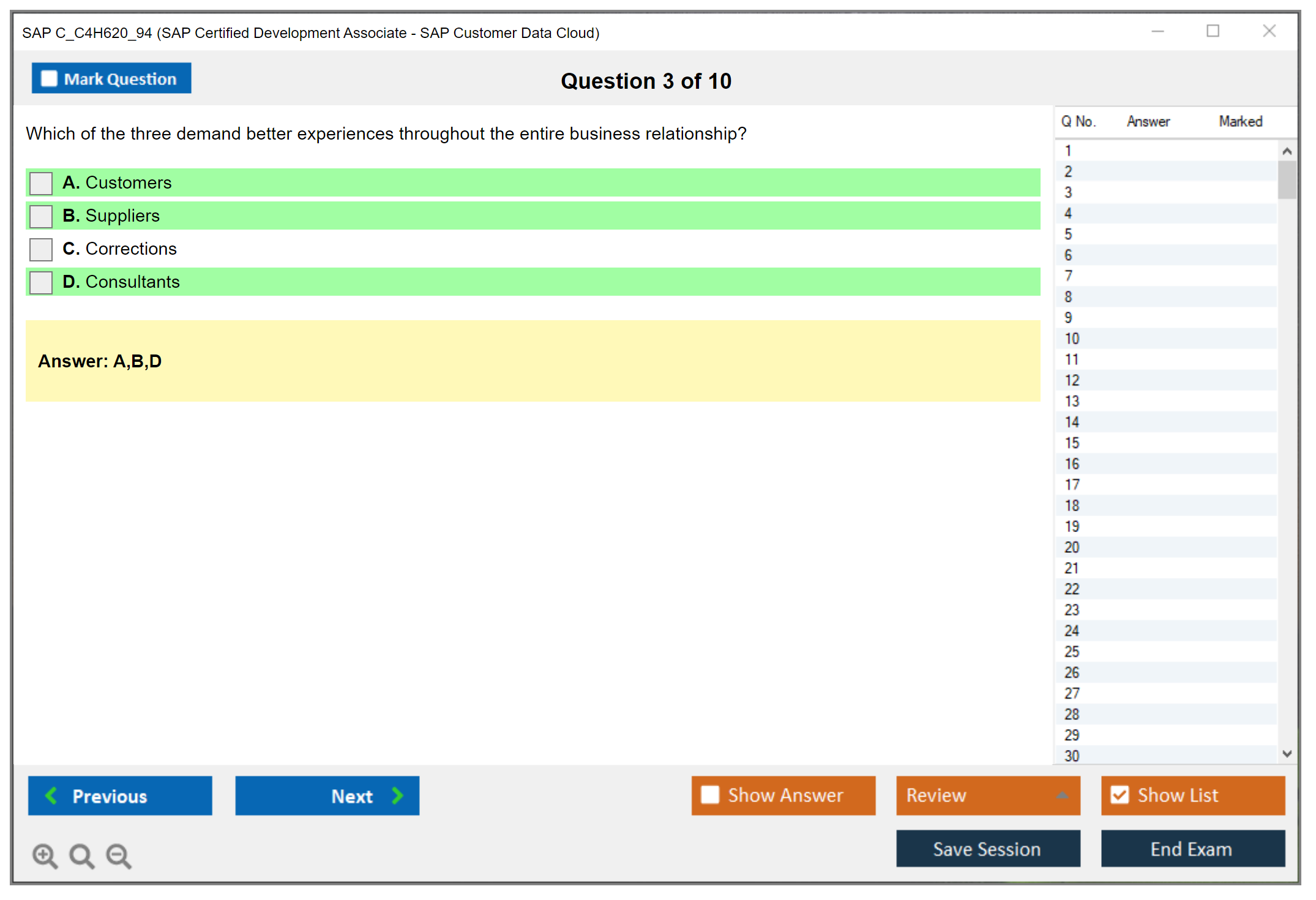 C_C4H620_94 (SAP Certified Development Associate - SAP Customer Data Cloud) PDF + Test Engine